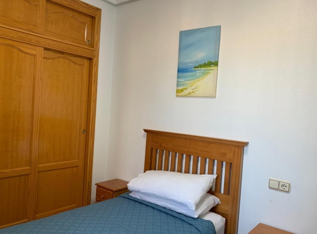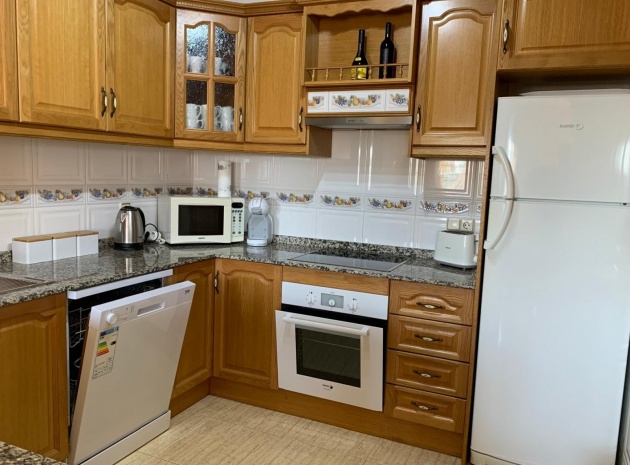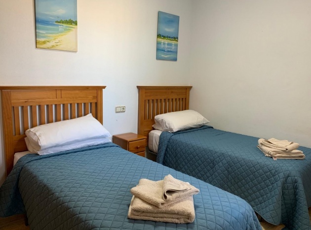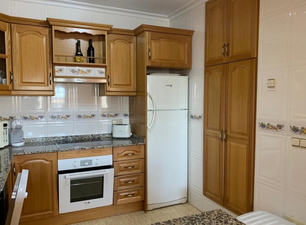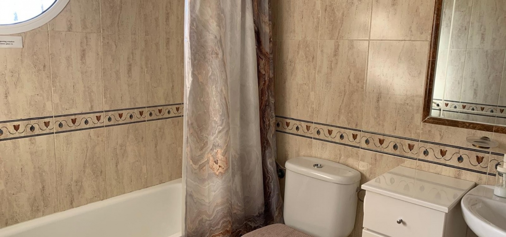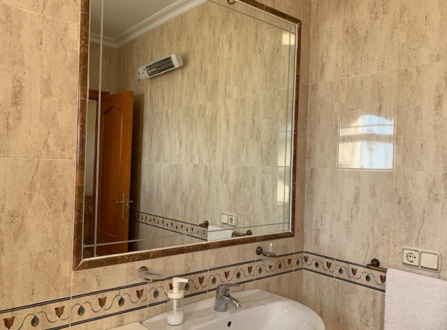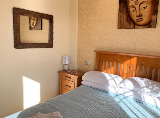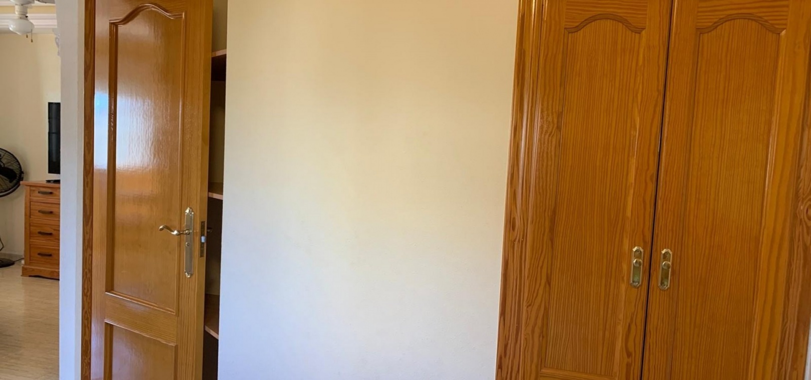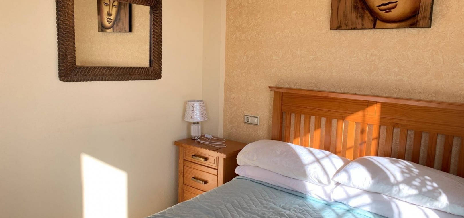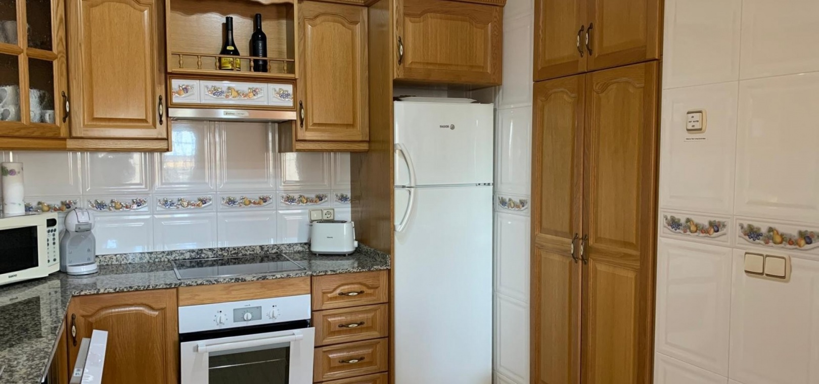 Ett exceptionellt fyrbäddshus i söderläge beläget på en upphöjd tomt med underbar utsikt över omgivningarna ner mot saltsjöarna och bortom. Detta är en mycket fint presenterad fastighet med 3 sovrum belägen på en stor tomt på ca 200 m2 med en stor kaklad terrass för avkoppling och solbad med olika sittgrupper, ett lusthus och förvaringsutrymme. Du kommer in i huset på ca 100 m2 via ett par trappsteg till en täckt terrass och leder in i den öppna planlösningen med matplats och vardagsrum badande i naturligt solljus med luftkonditionering och takfläktar, med ett rymligt fullt utrustat kök. På bottenvåningen finns också ett dubbelrum med inbyggd garderob, luftkonditionering och takfläkt, plus ett stort duschrum med tvättstuga. En elegant trappa leder till ytterligare 2 dubbelrum som båda har luftkonditionering, takfläktar och inbyggda garderober, ett med en privat terrass i söderläge med härlig utsikt och det finns ett stort badrum med badkar och takdusch. Från avsatsen hittar du tillgång till en ytterligare trappa med förråd, som leder till det enorma solariet, återigen med underbar utsikt ner mot sjön och ett specialbyggt lusthus med markiser på tre sidor vilket gör att området kan vara nästan helt inhägnat för de svalare kvällarna. Detta radhus i "Zodiaco"-stil säljs fullt möblerat till en hög standard med många extrafunktioner inklusive luftkonditionering i hela huset, takfläktar i alla rum, inbyggda garderober, väggmonterade värmeelement i badrummen, vitvaror och förvaringsutrymme, privat parkering utanför vägen och gott om gatuparkering, plus tillgång till den stora gemensamma poolen och solterrassen som ligger bara en kort promenad bort. Det har ett utmärkt läge, bara ett par minuters promenad till ett urval av restauranger och barer, ett apotek, en minimarknad och den lokala busslinjen till centrala Guardamar och dess fantastiska blåflaggade stränder.