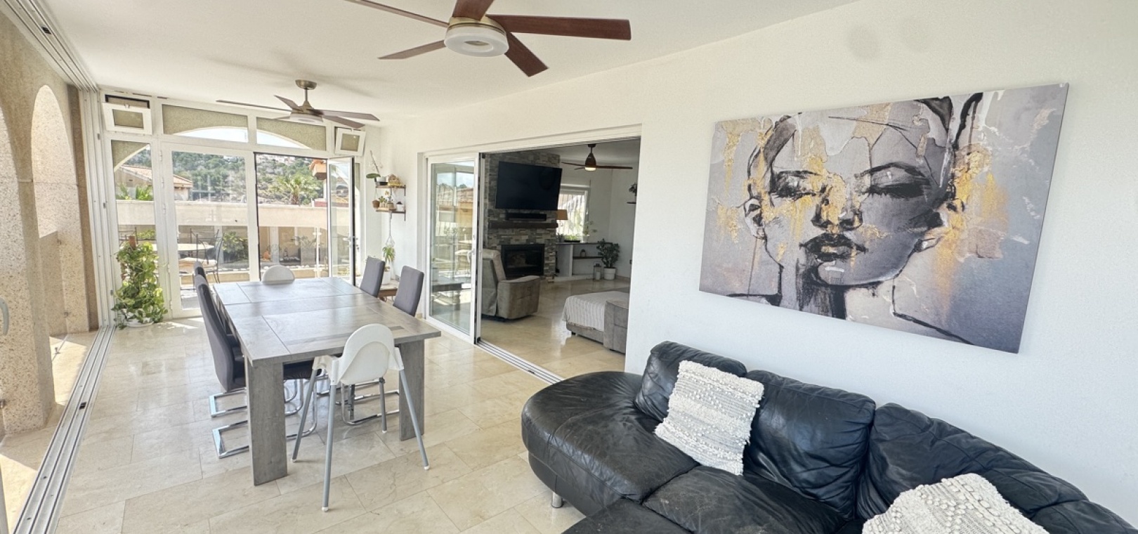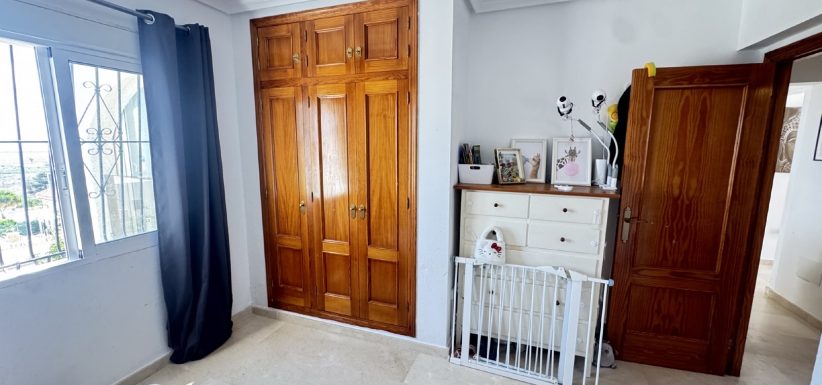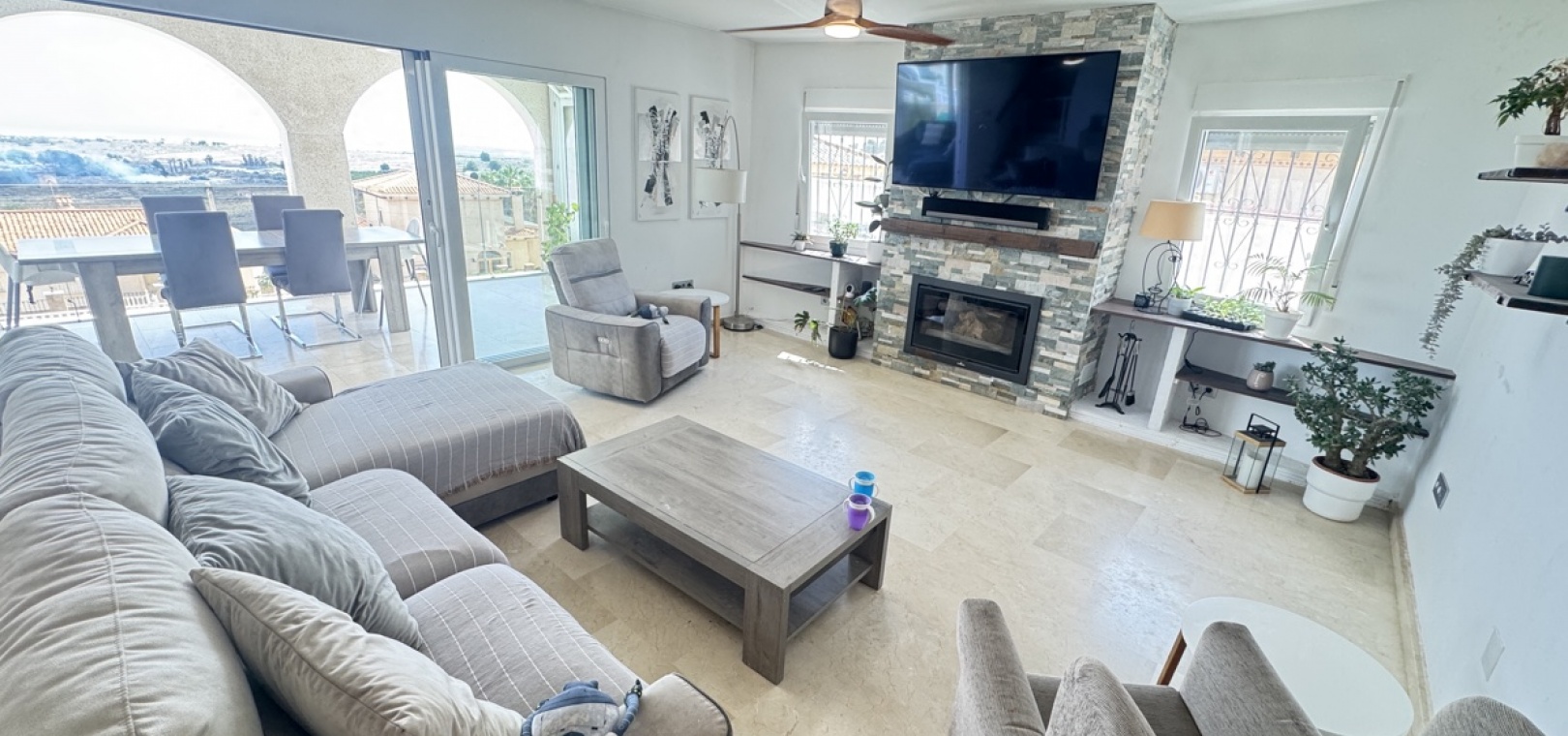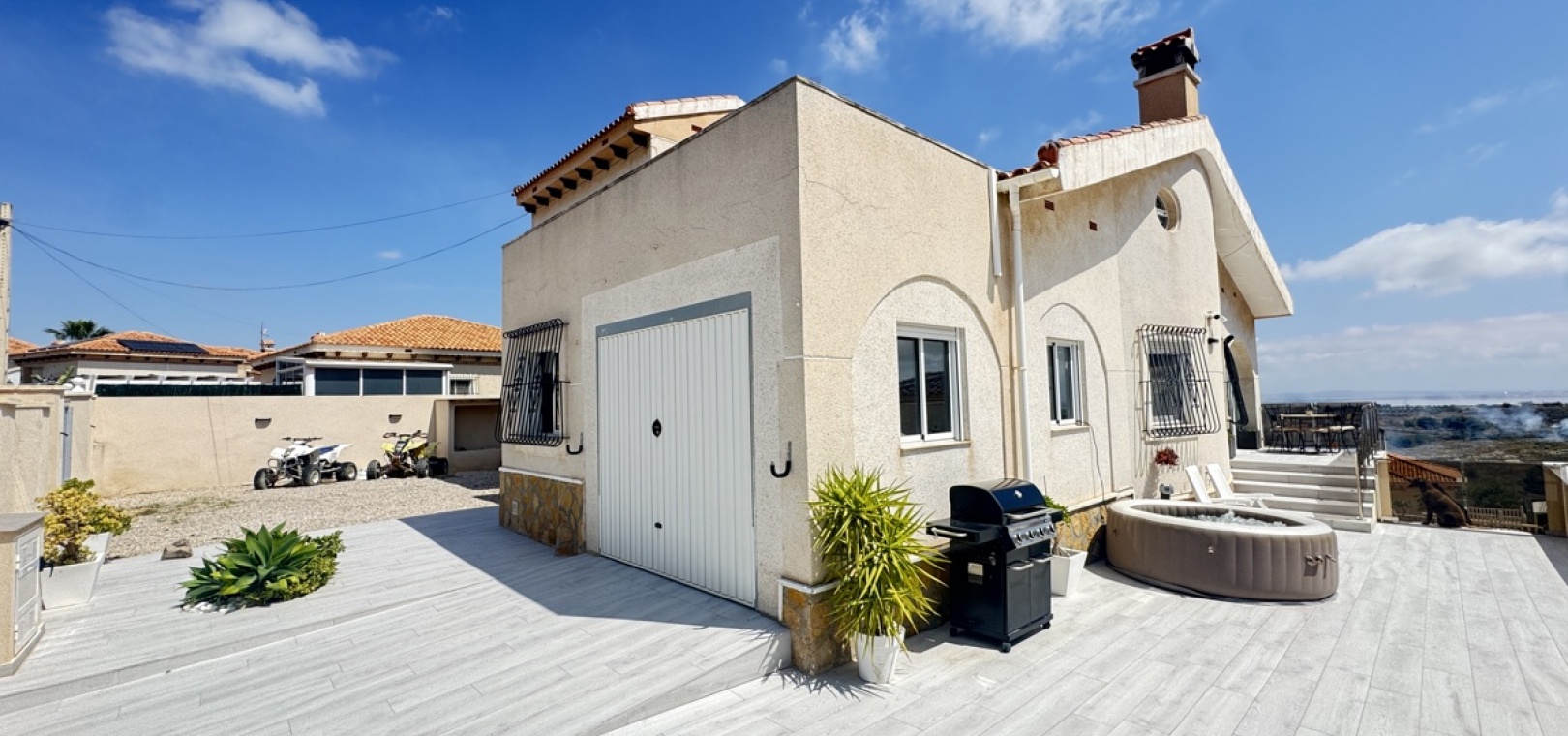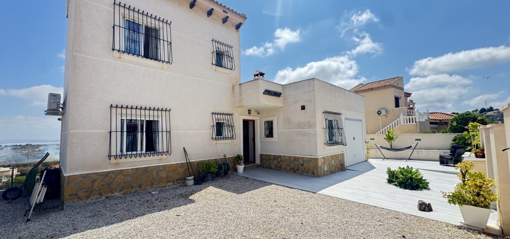 Fantastisk villa med panoramautsikt. Upptäck den ultimata boendeupplevelsen i denna fantastiska villa, belägen på en stor tomt på 967 m2 i den exklusiva urbanisationen Villas Maria, Ciudad de las Comuniciones, San Miguel de Salinas. Erbjuder panoramautsikt och rymligt boende Denna imponerande fastighet ståtar med hisnande, svepande utsikt över saltsjön och Medelhavet från vardagsrummet och den intilliggande terrassen, vilket erbjuder ett verkligt unikt perspektiv. Med tre våningar och ett garage erbjuder denna villa gott om utrymme för avkoppling och underhållning. Interiör - Rymlig vardagsrums-/matsal med öppen spis och direkt tillgång till trädgården - Separat kök med tvättstuga och vitvaror. - 3 dubbelrum/tvåbäddsrum och familjebadrum på bottenvåningen - Huvudsovrum med privat solterrass och fantastisk utsikt - Ytterligare ett stort sovrum i vindsstil med mångsidigt område Moderniserad nedre våning - Stor tvättstuga med direkt tillgång till trädgården - Sovrum, kontor och extra förvaringsutrymme som ger flexibilitet och funktionalitet Trädgårds- och poolpotential - Stor trädgård med potential för landskapsarkitektur och installation av privat pool - Avgränsad av två gator och en gångstig, vilket erbjuder extra avskildhet och potential för framtida utveckling - Kaklad trädgård och stor fiskdamm vid huvudentrén, vilket skapar en lugn atmosfär Utmärkt läge - 15 minuters bilresa till de vackra vita sandstränderna Mil Palmeras, Campoamor och La Zenia - 5 minuters bilresa till San Miguel de Salinas centrum, med dess charmiga butiker och restauranger