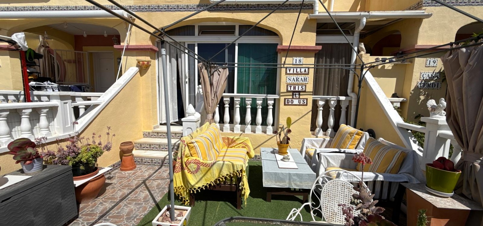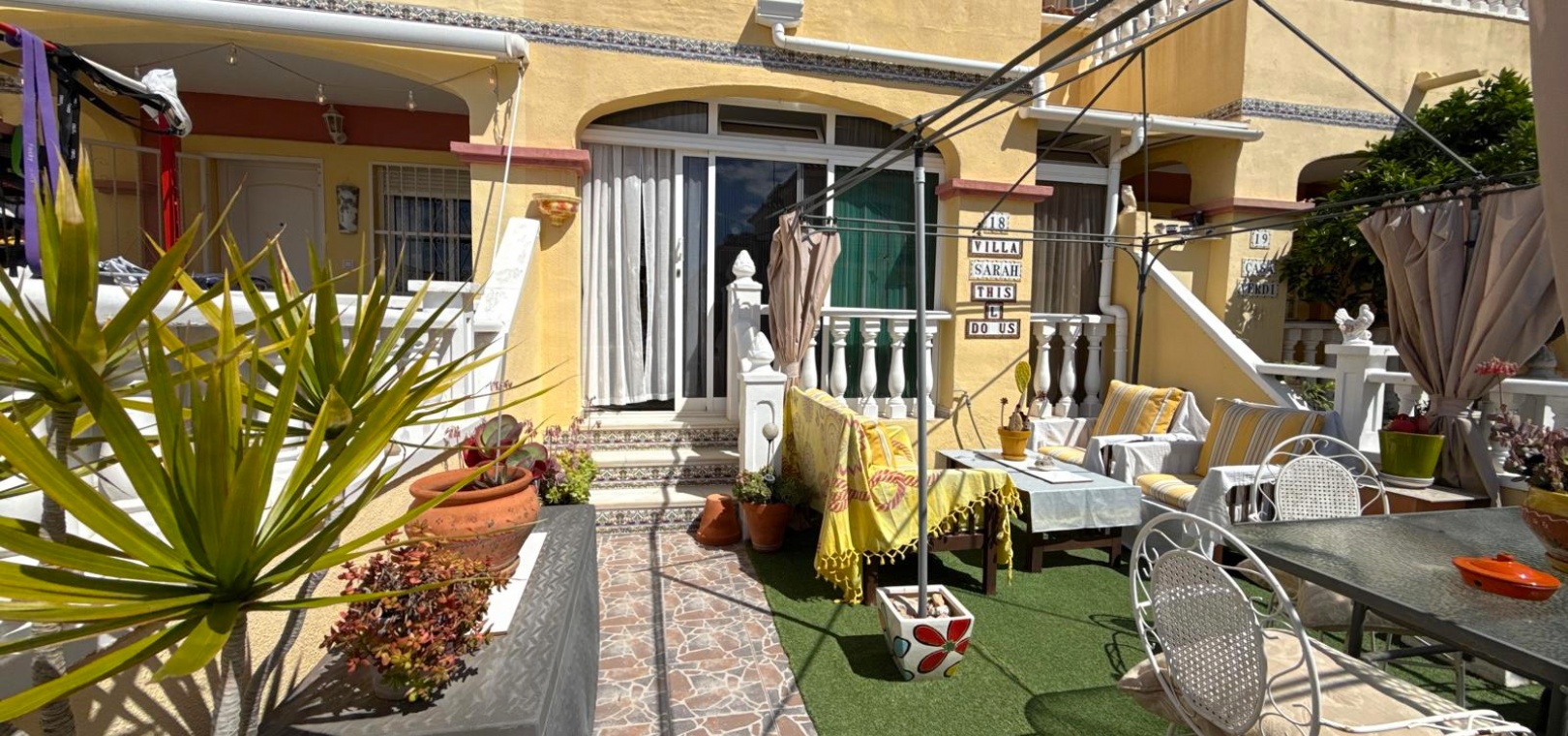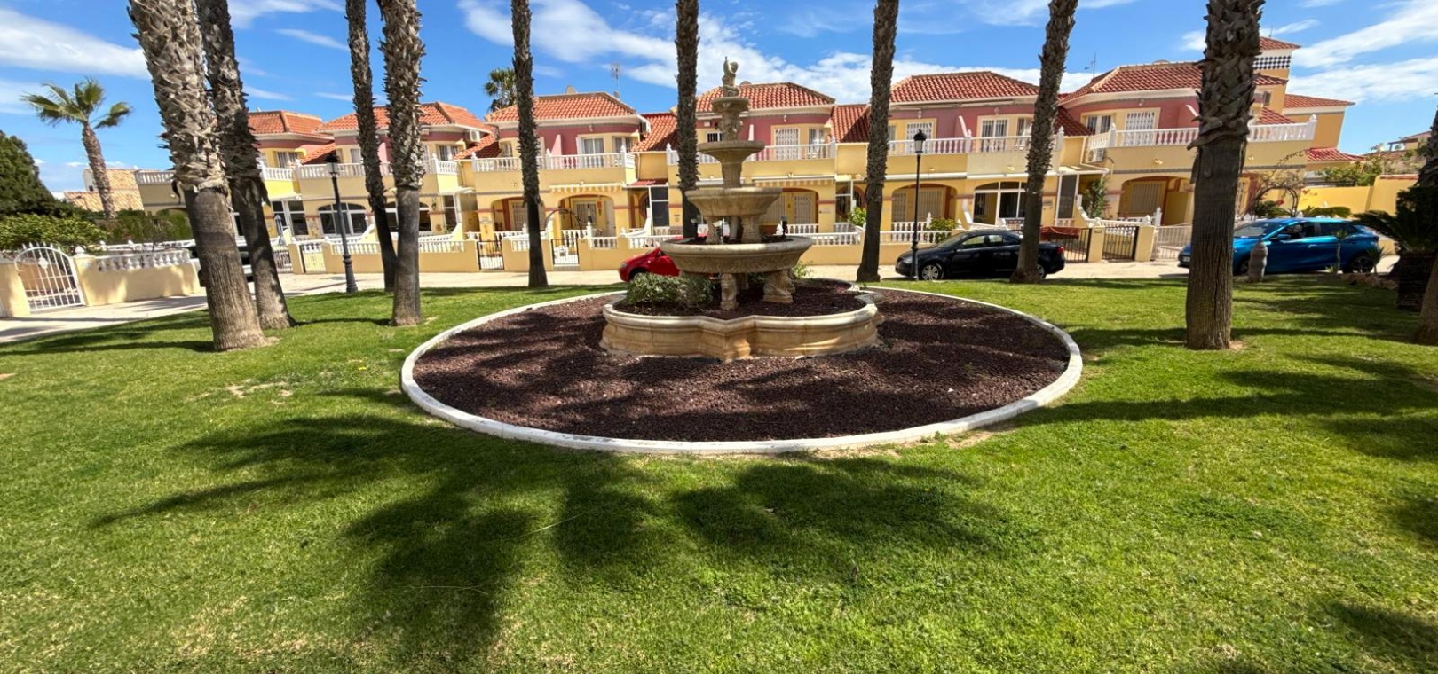 Detta är ett fantastiskt radhus i söderläge i La Regia, 10 minuters promenad från La Zenia och lite mindre från Cabo Roig-stripen. Trädgården är söderläge med sol hela dagen och fastigheten har ett solrum för vintermånaderna. Fastigheten har ett härligt vardagsrum med ett amerikanskt öppet kök med en härlig matplats på baksidan och nedervåningen har även en toalett. Första våningen har två dubbelrum och ett komplett familjebadrum med duschkabin och från det stora sovrummet har du en balkong i hyfsad storlek. Detta radhus har ett fantastiskt läge och ligger på gångavstånd från Zenia Boulevard och Cabo Roig-stripen samt Cabo Roig-stranden. Fastigheten är också en del av ett vackert område med ett härligt poolområde och trädgårdar.