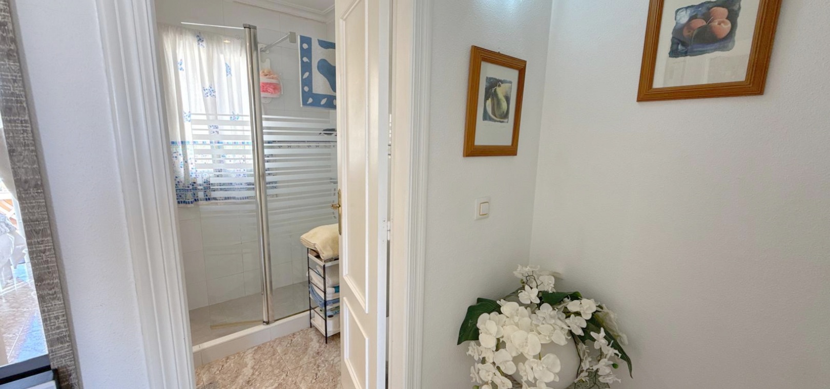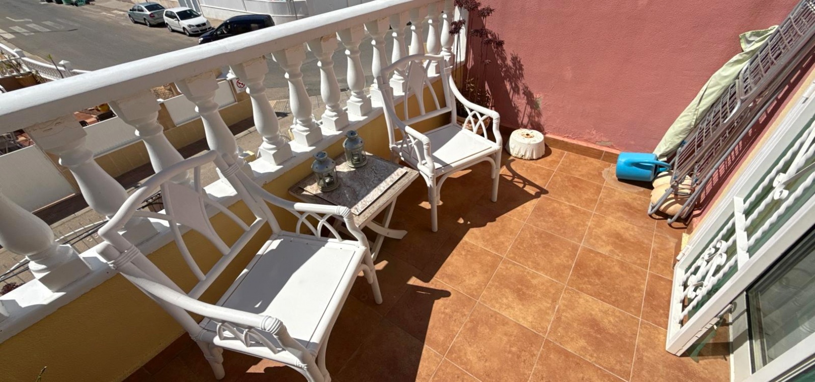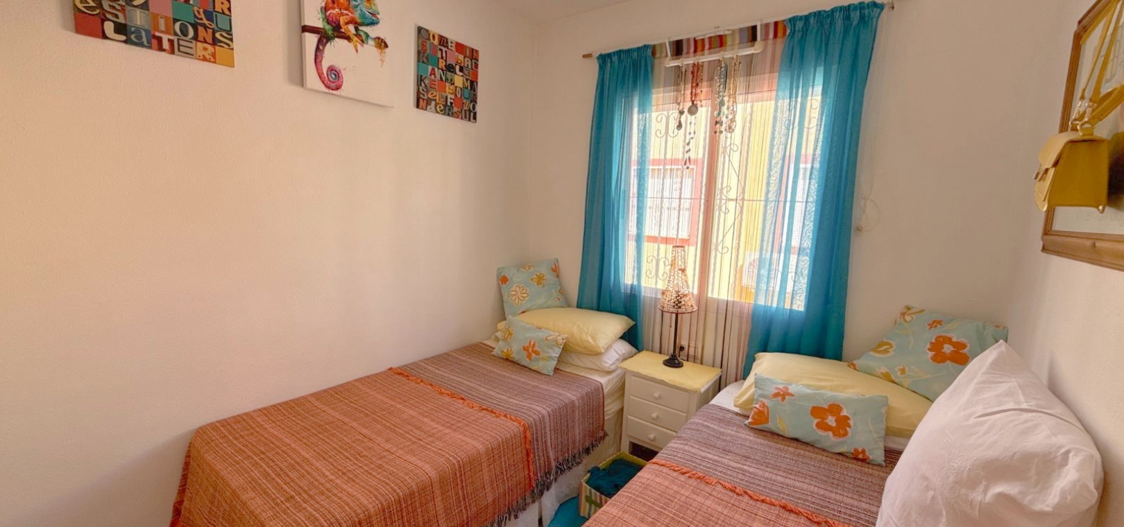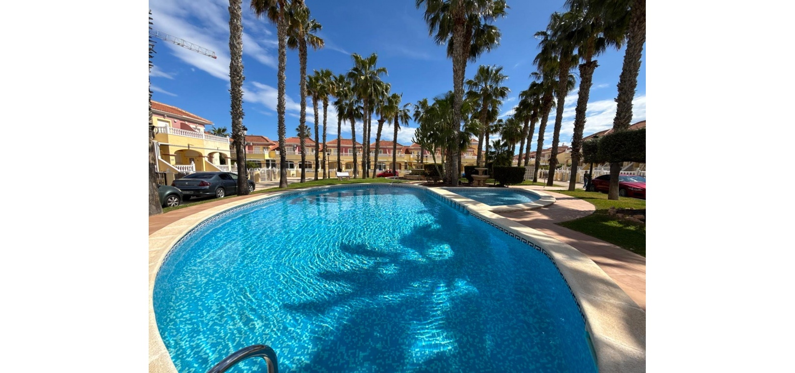 Detta är ett fantastiskt radhus i söderläge i La Regia, 10 minuters promenad från La Zenia och lite mindre från Cabo Roig-stripen. Trädgården är söderläge med sol hela dagen och fastigheten har ett solrum för vintermånaderna. Fastigheten har ett härligt vardagsrum med ett amerikanskt öppet kök med en härlig matplats på baksidan och nedervåningen har även en toalett. Första våningen har två dubbelrum och ett komplett familjebadrum med duschkabin och från det stora sovrummet har du en balkong i hyfsad storlek. Detta radhus har ett fantastiskt läge och ligger på gångavstånd från Zenia Boulevard och Cabo Roig-stripen samt Cabo Roig-stranden. Fastigheten är också en del av ett vackert område med ett härligt poolområde och trädgårdar.