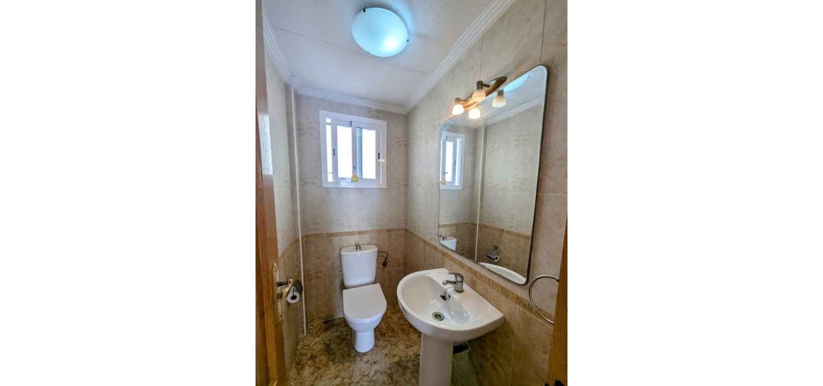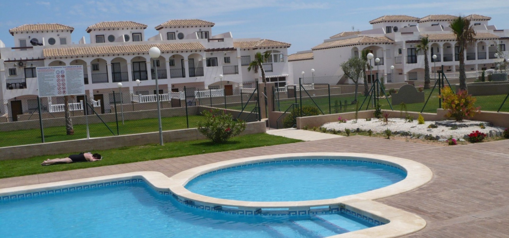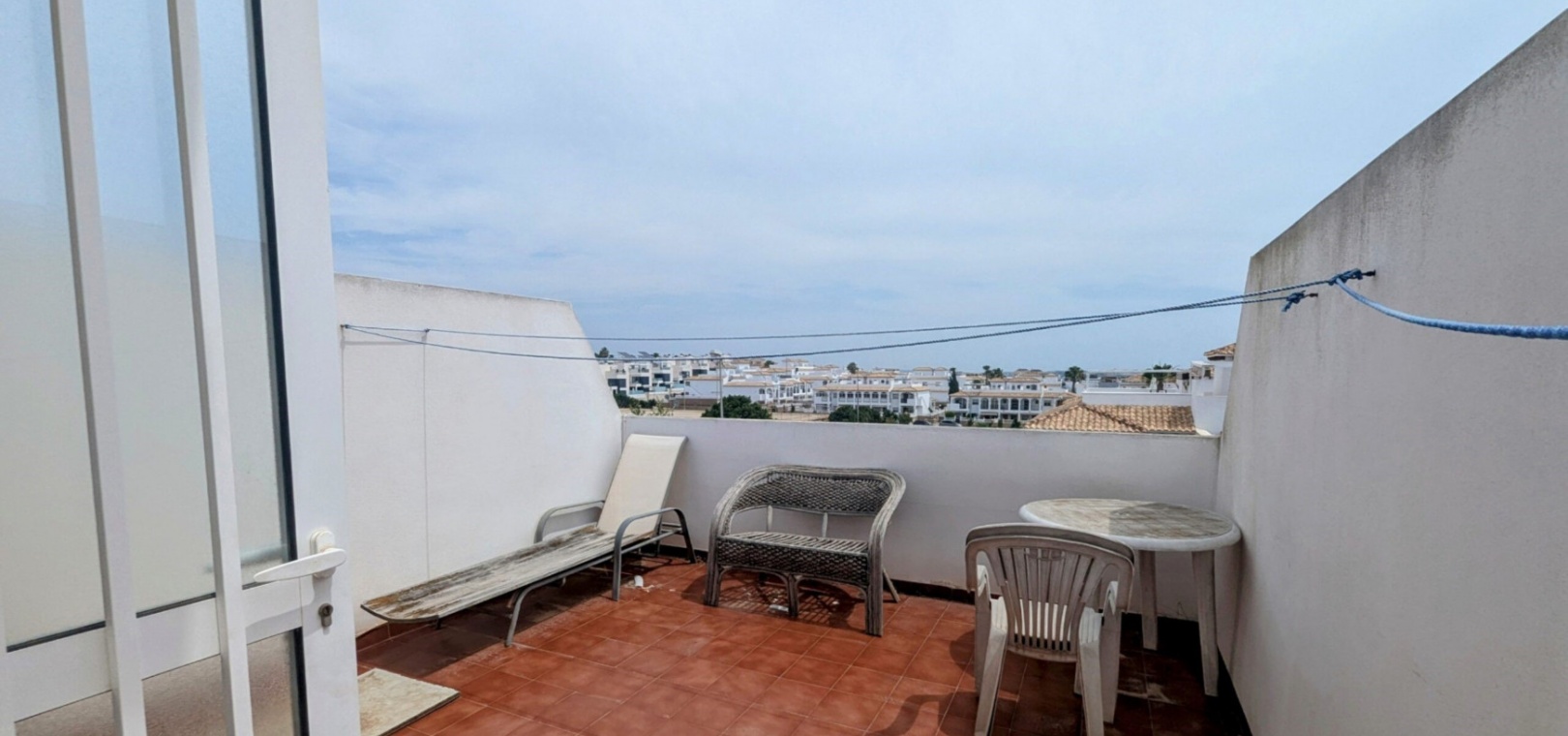Ett radhus med 2 sovrum, 1,5 badrum och privat takterrass beläget i La Cinuelica, Punta Prima, Costa Blanca Södra.