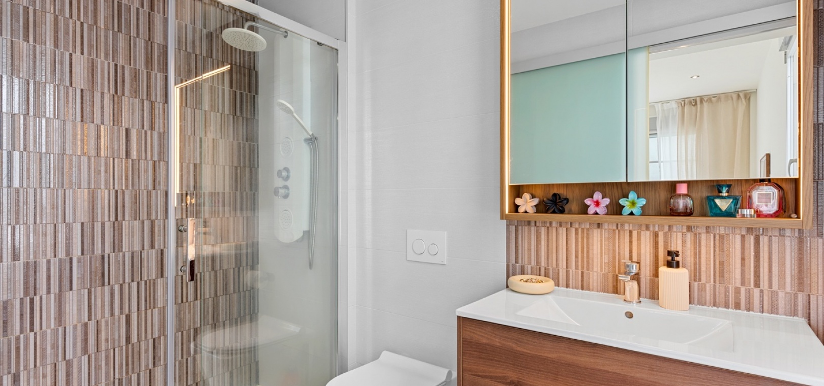 Tre rymliga sovrum med inbyggda garderober och gott om naturligt ljusinsläpp Tre moderna badrum med dusch Öppen planlösning i köket, sömlöst ansluten till vardagsrummet/matsalen – perfekt för familjesammankomster och underhållning Separat, funktionell tvättstuga Privat solarium med fri utsikt — perfekt för avkoppling eller att njuta av hisnande solnedgångar Privat pool för att svalka dig och varva ner i fullständig avskildhet