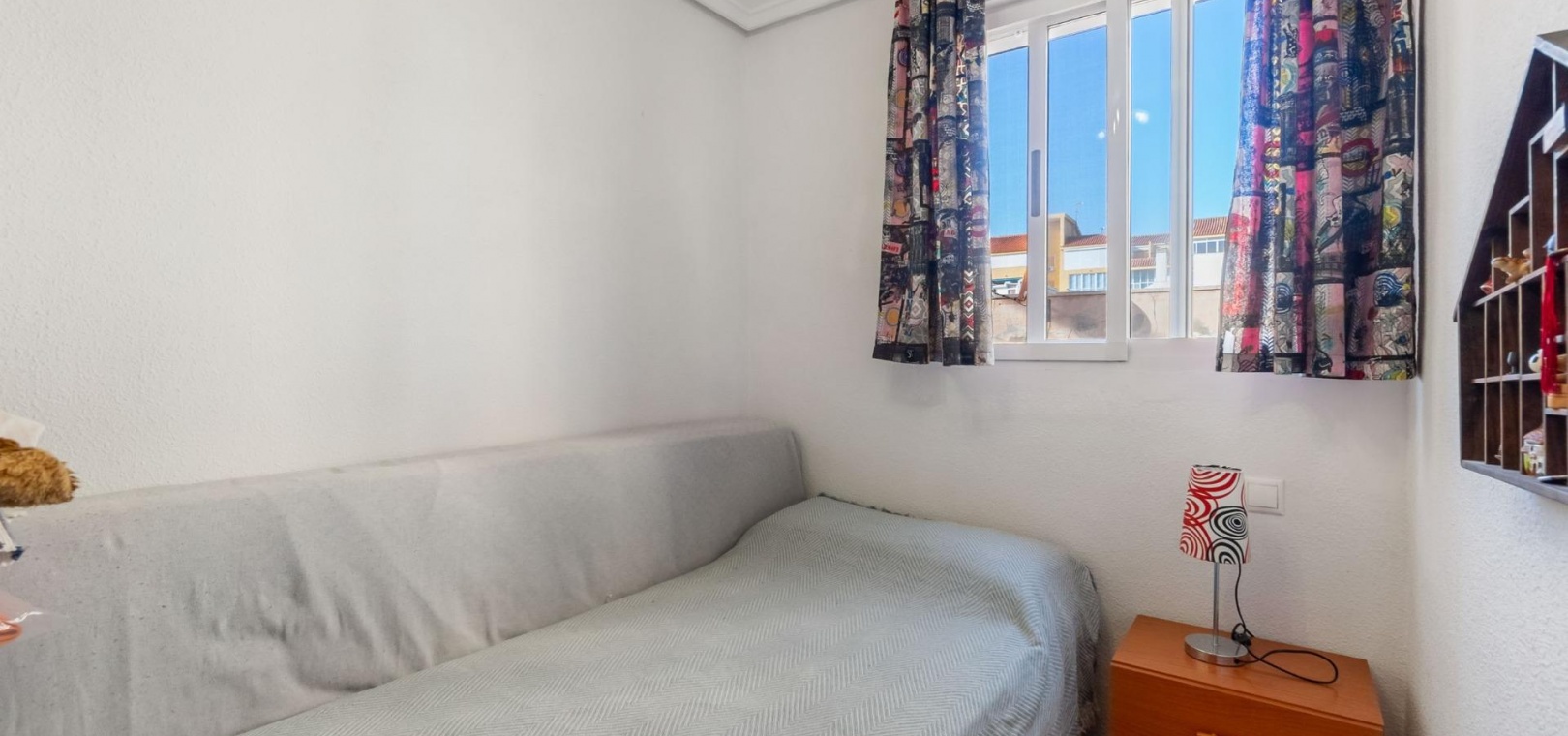 3 sovrum | 1 badrum Första våningen (ingen hiss) 8 m² privat terrass 68 m² total boyta Gemensamt solarium med havsutsikt 300 meter från La Mata-stranden Säljs möblerad med AC Centralt läge, gångavstånd till alla bekvämligheter