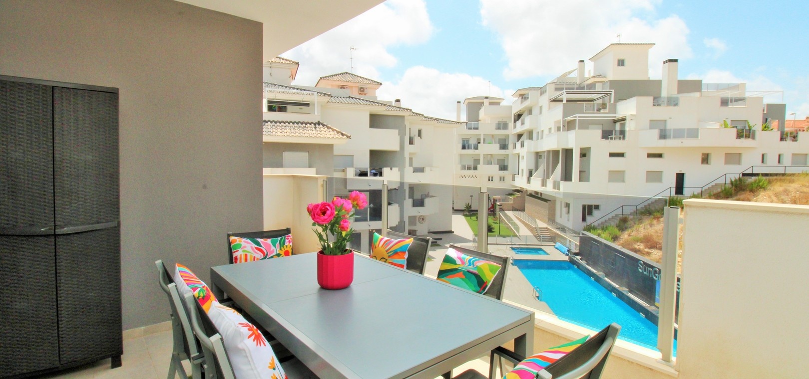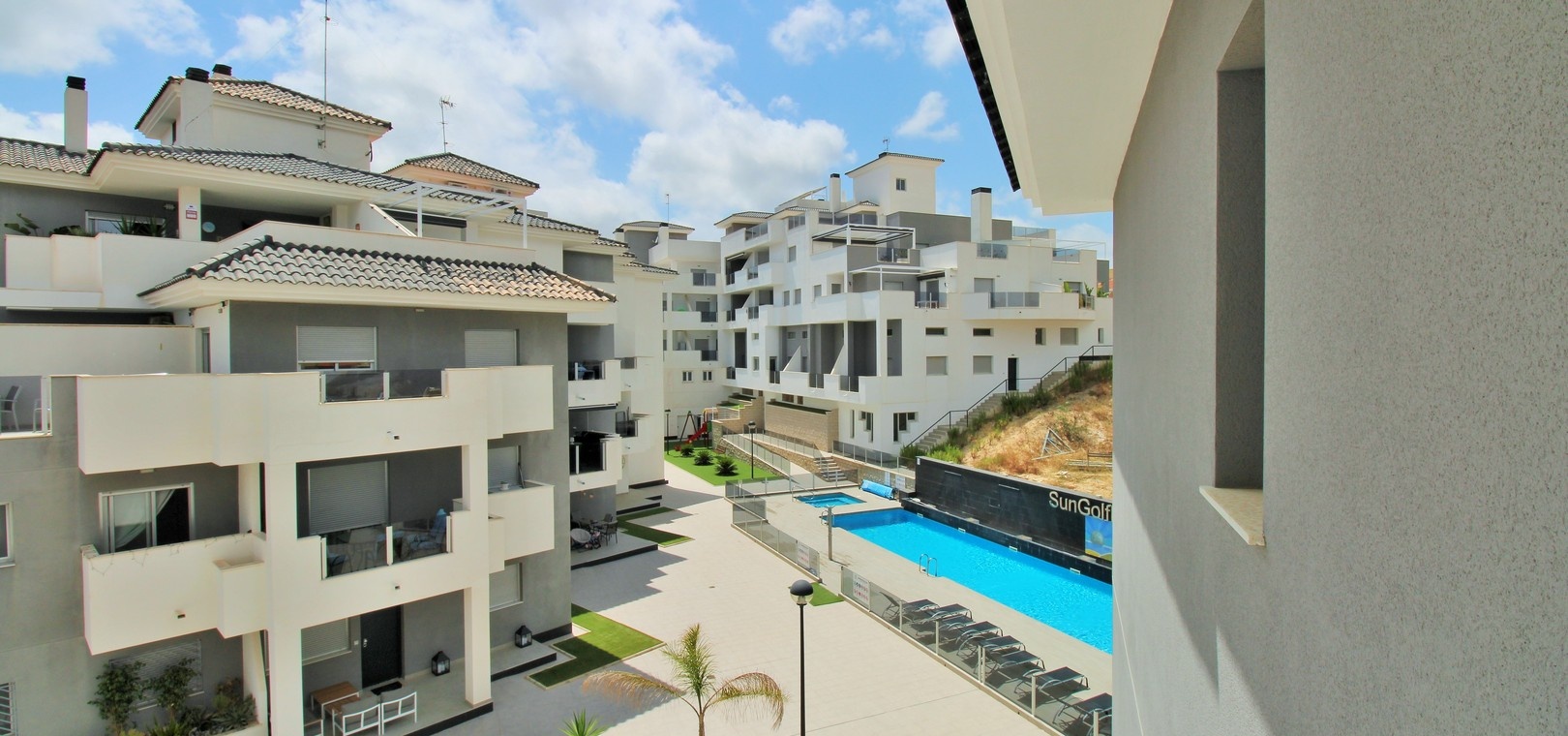 En vackert presenterad lägenhet på andra våningen med hiss, belägen i det moderna Sungolf Beach-komplexet i Villamartin. Denna nyckelfärdiga fastighet ligger i ett säkert, gated community och erbjuder fantastiska gemensamma bekvämligheter.