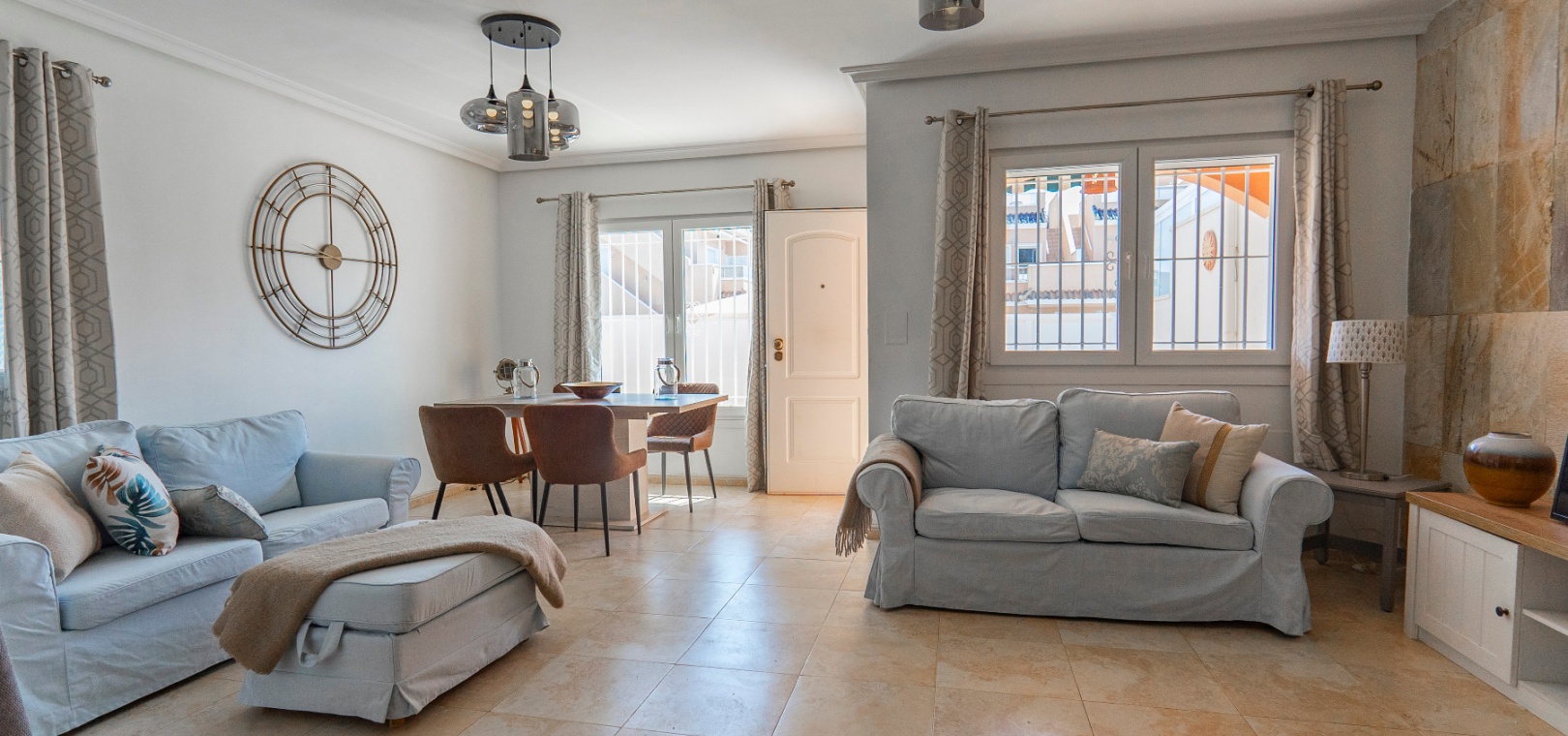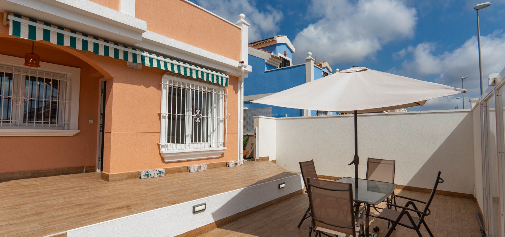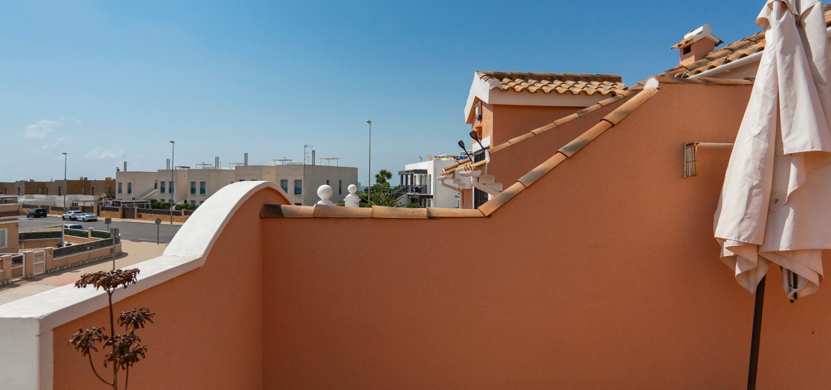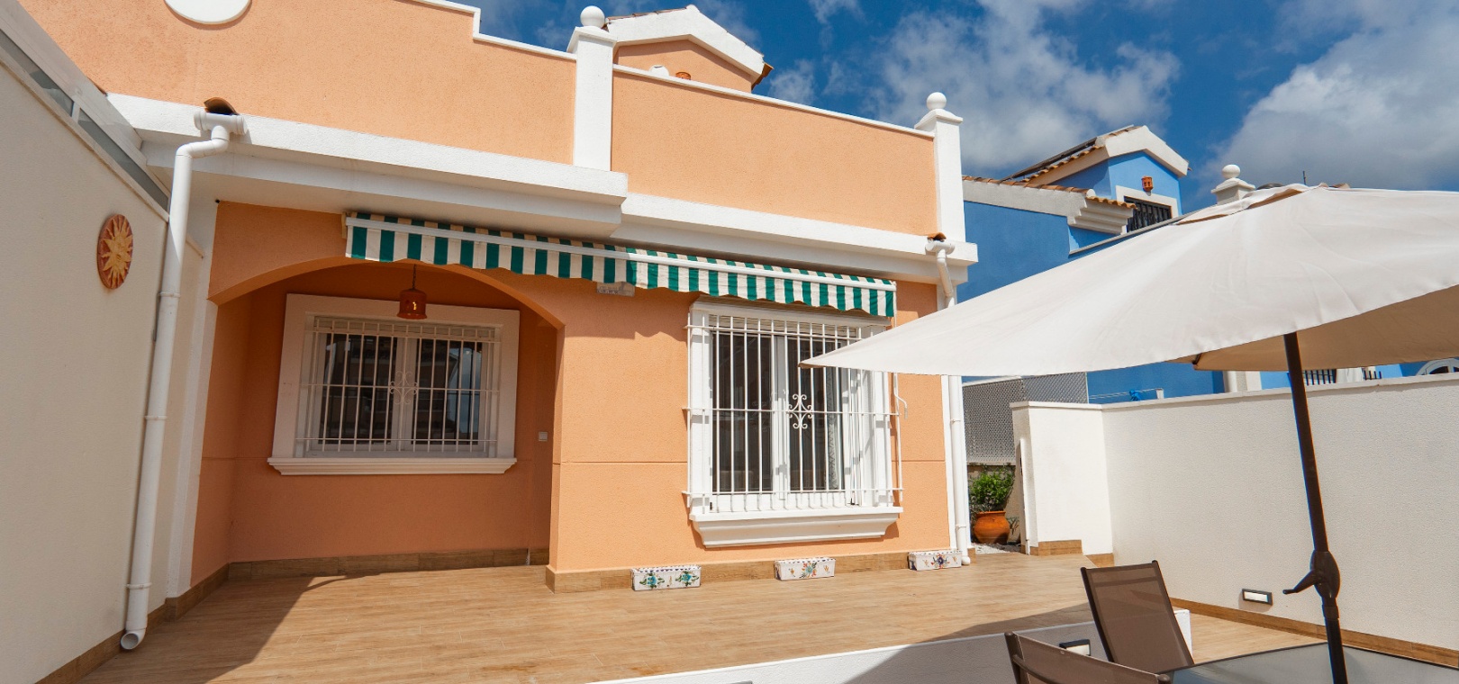 Välkommen till denna fantastiska parhusvilla med 3 sovrum och 2 badrum, perfekt belägen i det mycket eftertraktade området Lomas de Cabo Roig. Belägen på en generös, helkaklad och privat tomt, erbjuder detta hem en idealisk blandning av stil, komfort och bekvämlighet – allt bara en kort promenad från lokala kommersiella centrum med ett stort utbud av barer, restauranger och en stormarknad.