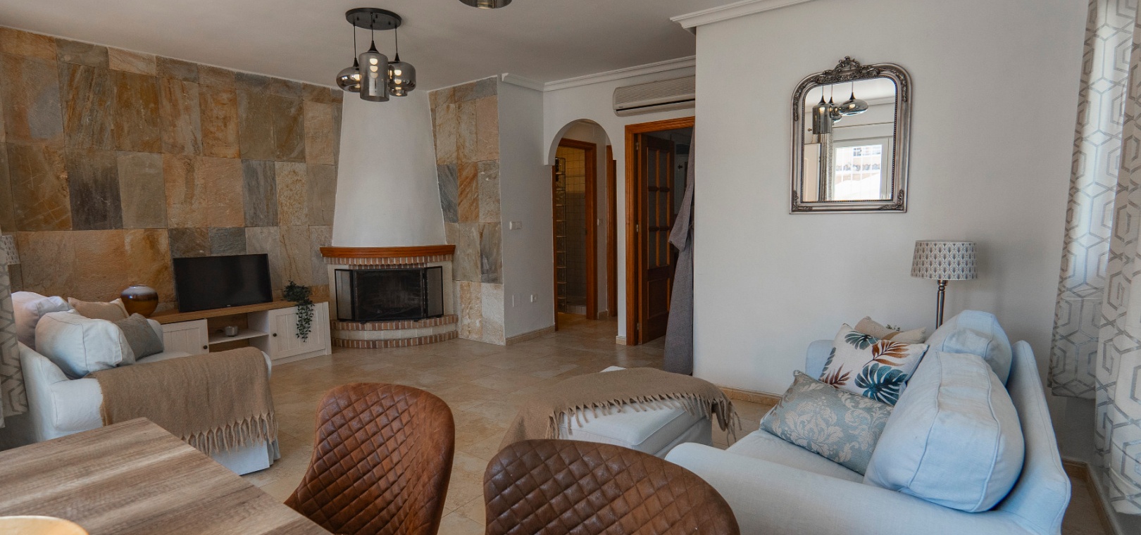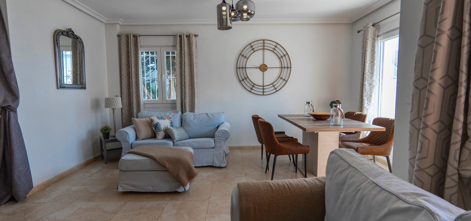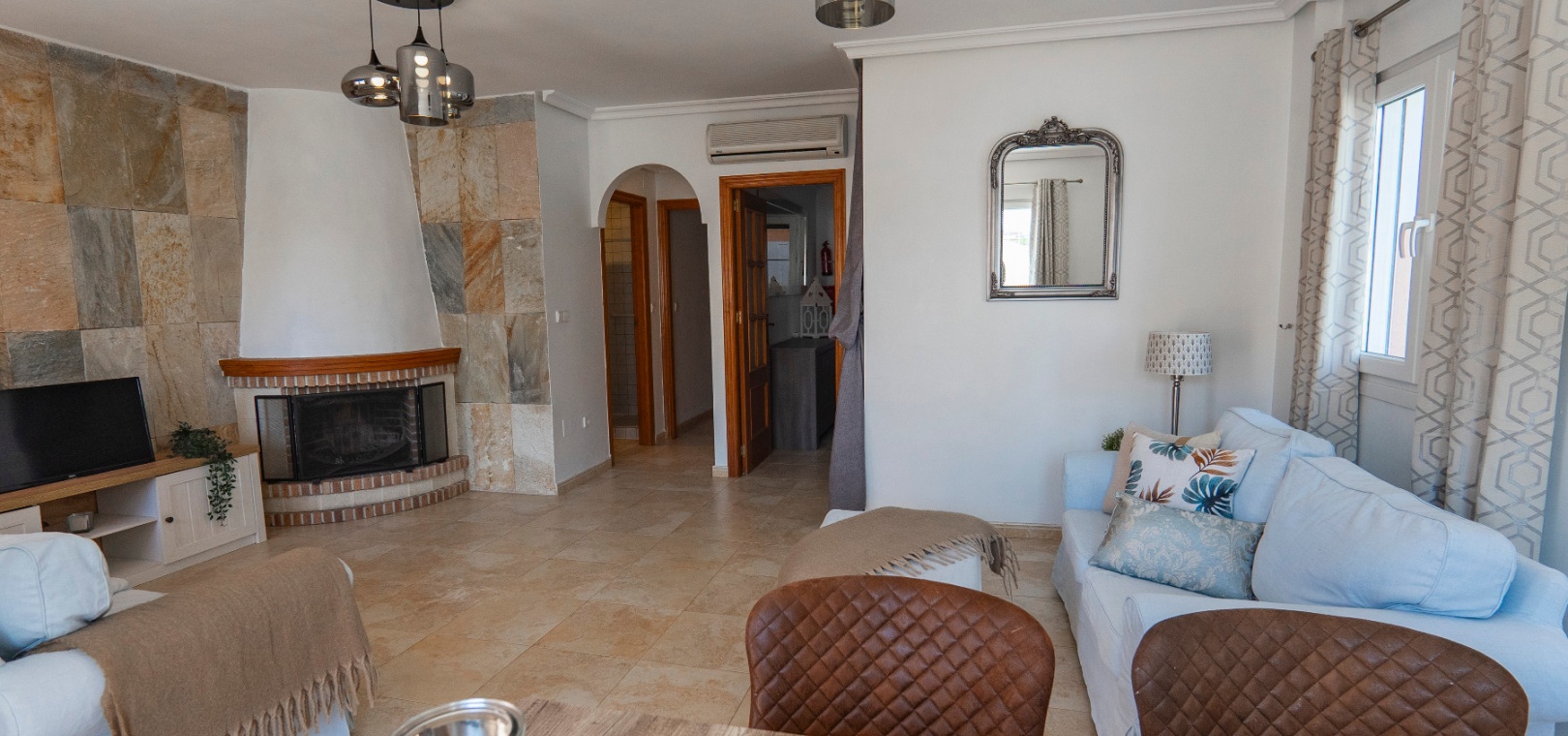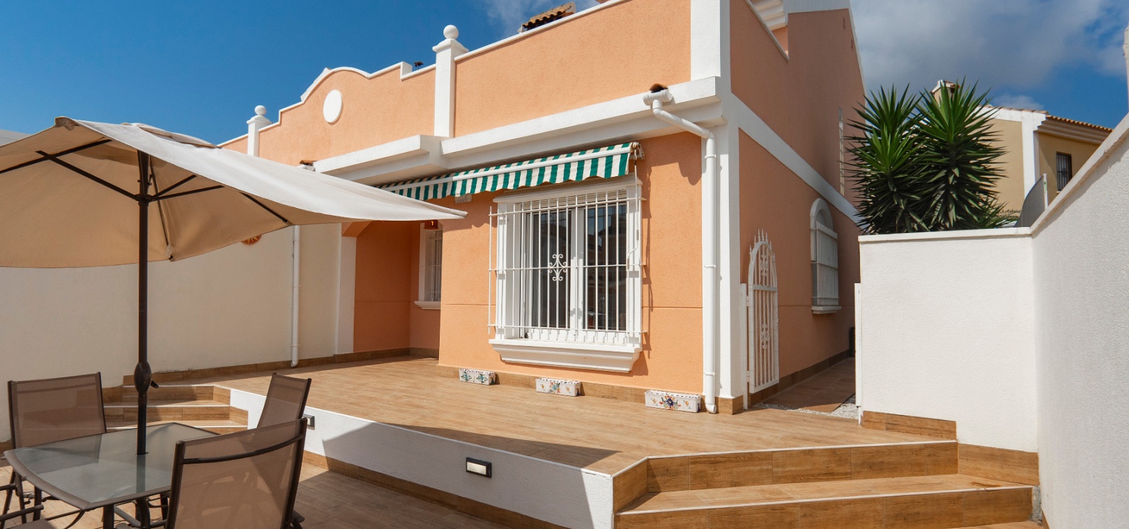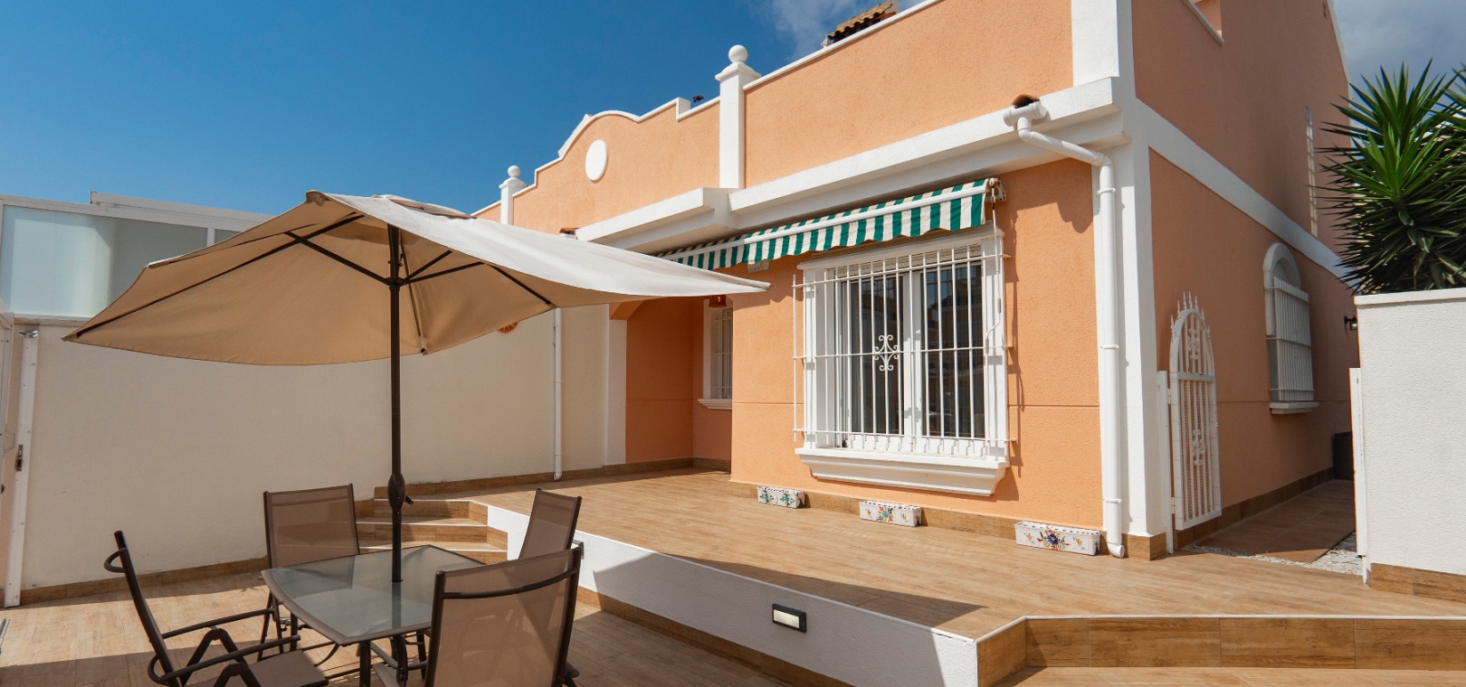 Välkommen till denna fantastiska parhusvilla med 3 sovrum och 2 badrum, perfekt belägen i det mycket eftertraktade området Lomas de Cabo Roig. Belägen på en generös, helkaklad och privat tomt, erbjuder detta hem en idealisk blandning av stil, komfort och bekvämlighet – allt bara en kort promenad från lokala kommersiella centrum med ett stort utbud av barer, restauranger och en stormarknad.
