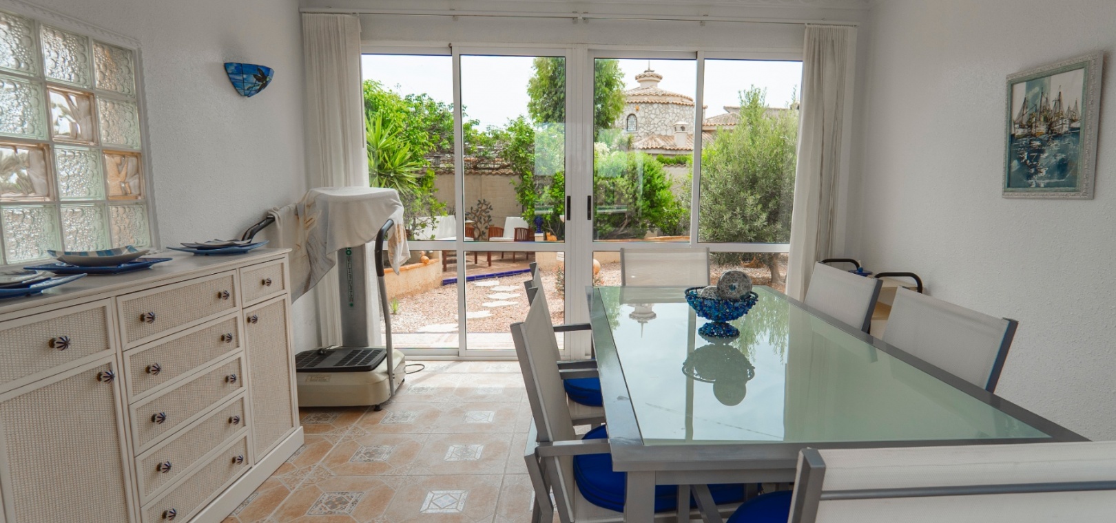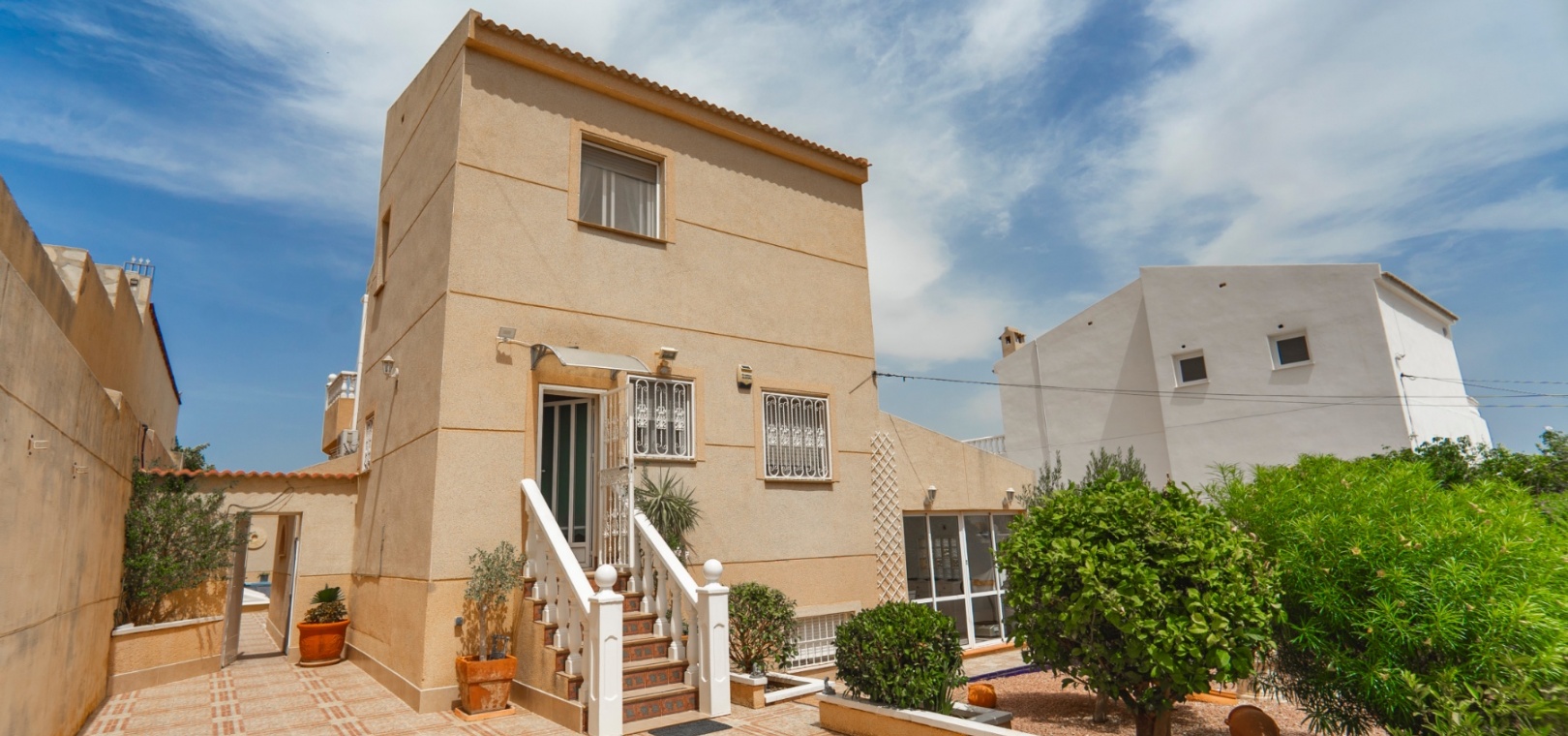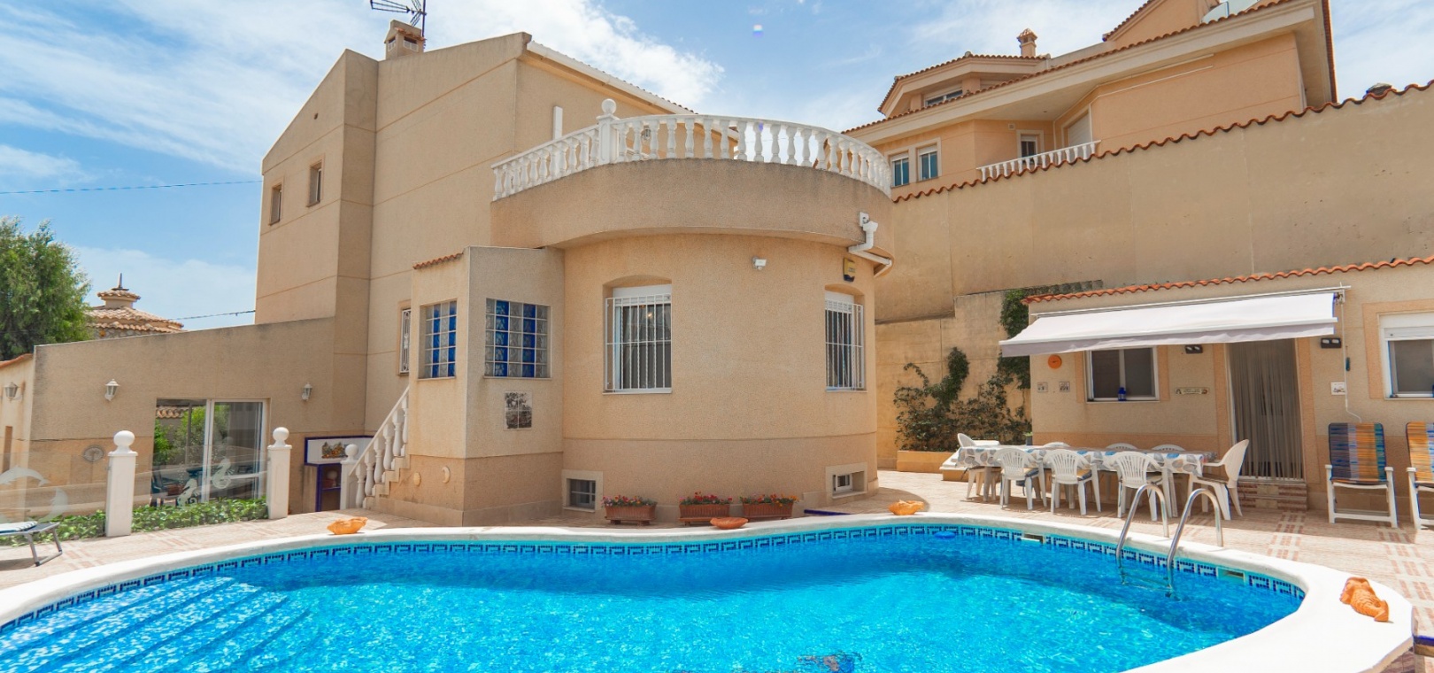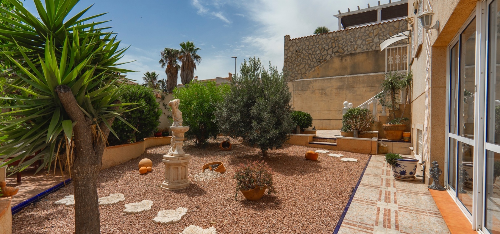 SOL, RYMD & UTSIKT – EXCEPTIONELL VILLA I EFTERTRAKTAT QUESADA Belägen på en upphöjd tomt i ett av Ciudad Quesadas mest eftertraktade lägen, erbjuder denna imponerande fristående villa på 200 m² panoramautsikt över den omgivande landsbygden, bergen och den charmiga staden Rojales. Belägen på en generös tomt på 500 m², sträcker sig huset över tre våningar och erbjuder en otrolig potential att moderniseras till en lyxig medelhavsretreat. Inuti Huvudentrén leder direkt in i ett välutrustat kök, som öppnar upp mot resten av huset. På denna våning hittar du ett stort sovrum med dubbelsäng och ett gästbadrum, vilket gör det idealiskt för besökare eller som hemmakontor. Längre inuti öppnar huset upp mot ett rymligt vardagsrum och en separat matplats, perfekt för familjeliv eller underhållning. Matsalen har också egen tillgång till trädgården, vilket erbjuder ett härligt flöde mellan inomhus- och utomhusutrymmen. På övervåningen finns två generöst tilltagna dubbelrum, båda med eget badrum. Master-sviten har direkt tillgång till en privat balkong med vidsträckt utsikt – en idealisk plats att njuta av soluppgången eller varva ner vid solnedgången. Underbyggnad Den helt fristående underbyggnaden har en egen separat ingång och är översvämmad av naturligt ljus tack vare fönster i alla utrymmen. Den inkluderar två rymliga dubbelrum med inbyggda garderober, ett kök, en matplats och ett badrum. Oavsett om det är för gäster, släkten eller som uthyrningsmöjlighet, erbjuder denna våning fullständig avskildhet och flexibilitet. Utomhusliv Utomhusområdet är utformat för njutning året runt och har en privat pool omgiven av solterrasser och skuggade sittplatser. Det finns två matplatser – en för sommaren och en för vintern, där den senare ligger i ett mysigt, slutet utrymme på sidan av huset. Ett fullt utrustat utomhuskök och duschrum gör det enkelt att underhålla vid poolen. Nyckelfunktioner Fem rymliga sovrum Fantastisk utsikt över landskapet, bergen och staden Privat pool med sol- och skuggzoner Oberoende underbyggnad med egen tillgång Två sovrum med eget badrum på övervåningen Matplatser utomhus året runt Utmärkt potential att modernisera Läge Idealiskt beläget i Ciudad Quesada, bara några minuter från La Marquesa golfbana och nära butiker, restauranger och alla bekvämligheter. Den närliggande staden Rojales är känd för sin spanska charm, kulturevenemang och veckovisa marknader. Med Alicante-Elche flygplats bara 40 minuter bort, Murcia International (Corvera) under en timme och de gyllene stränderna i Guardamar del Segura bara 10 minuter bort, är detta hem perfekt beläget för både heltidsboende och semester. Detta är en sällsynt möjlighet att äga en betydande, flexibel fastighet i ett utmärkt läge med enastående utsikt och otrolig potential. Redo att göra den till din? Kontakta oss idag för att boka din visning.