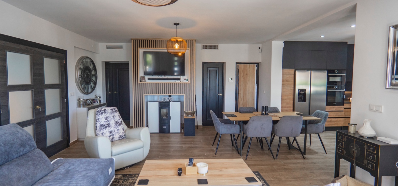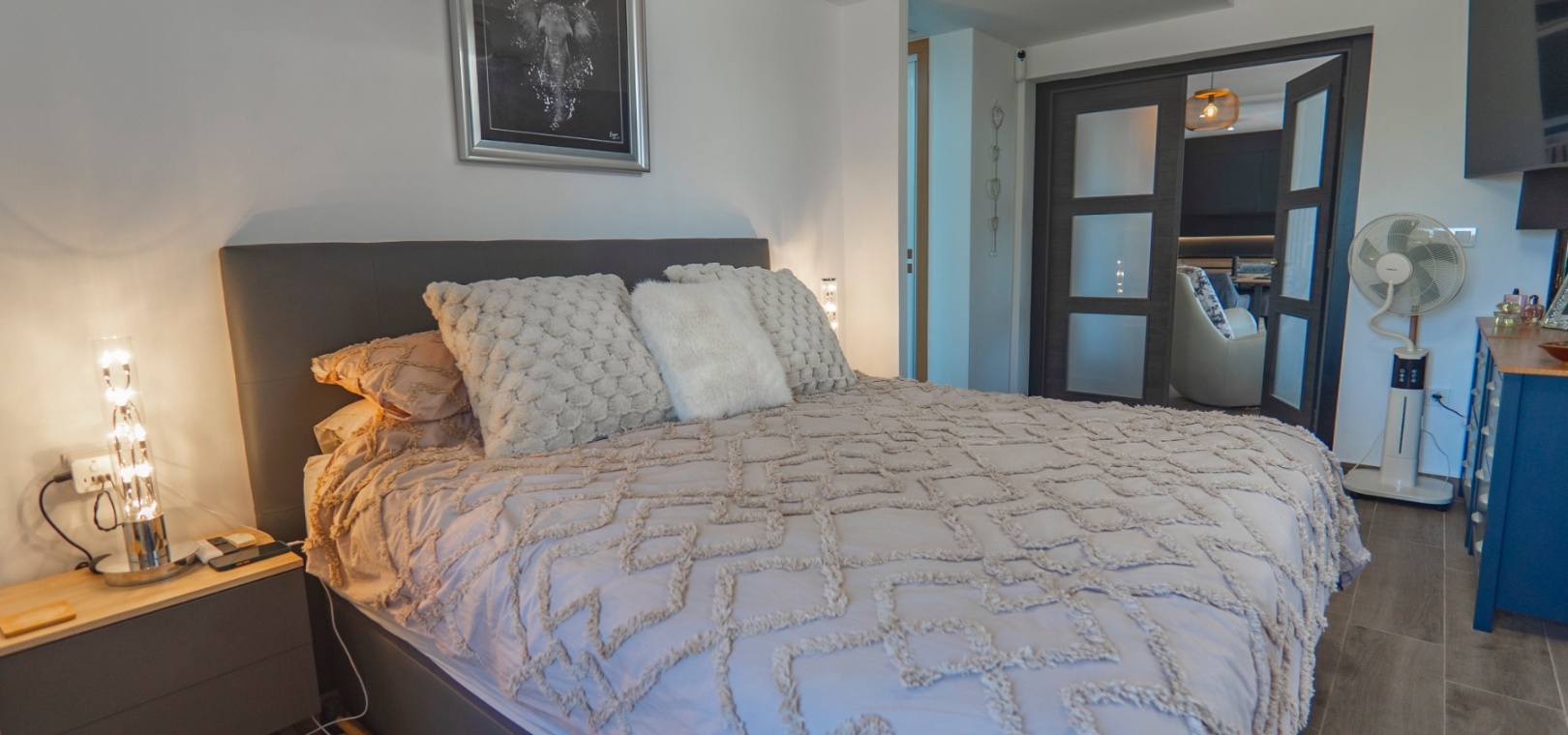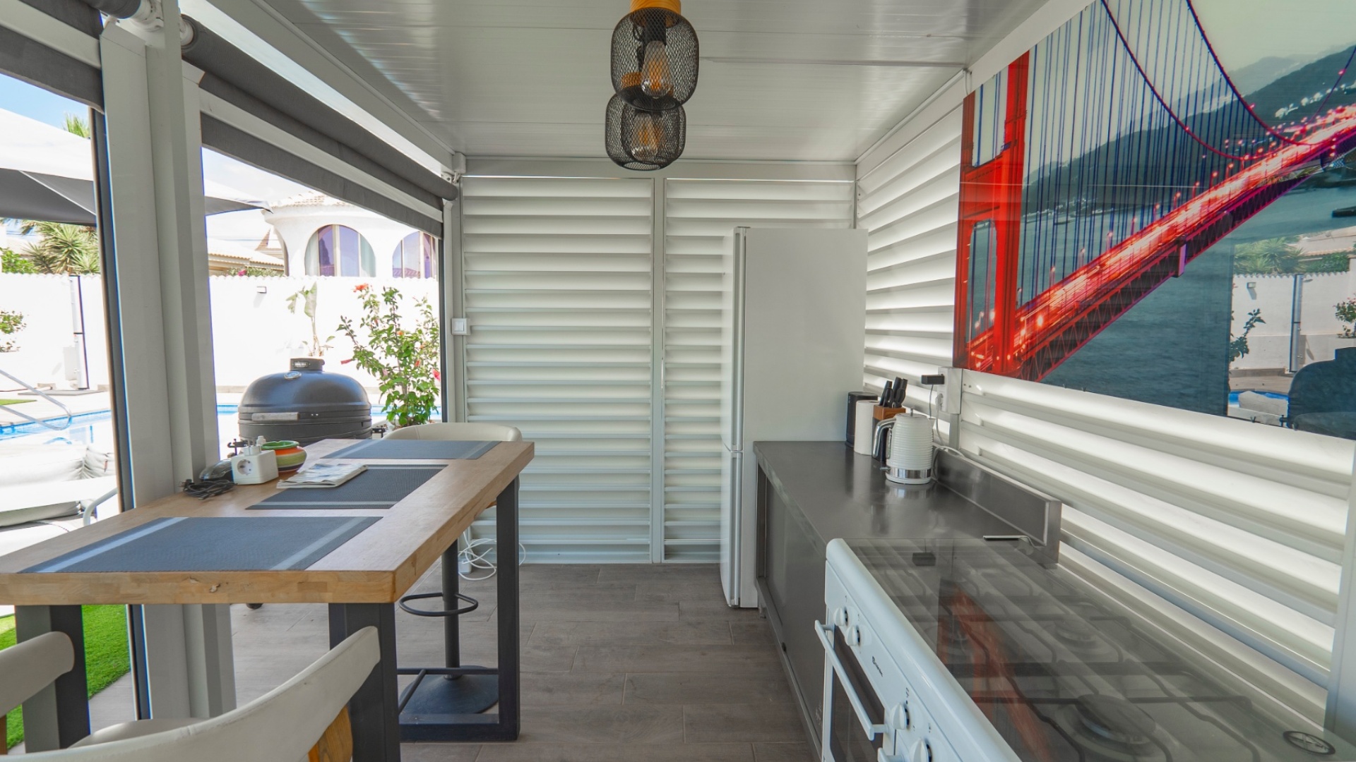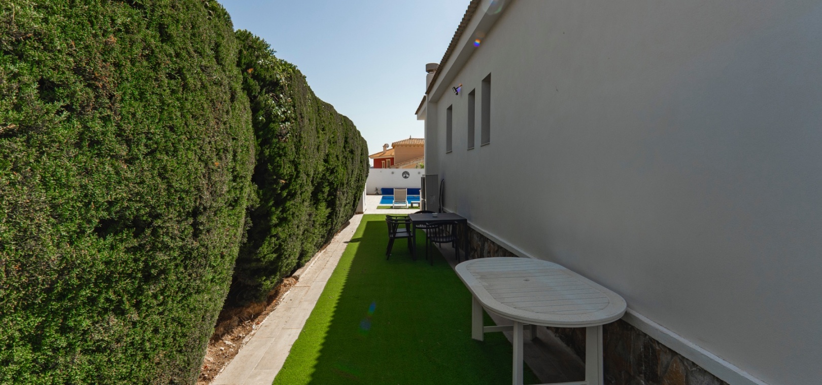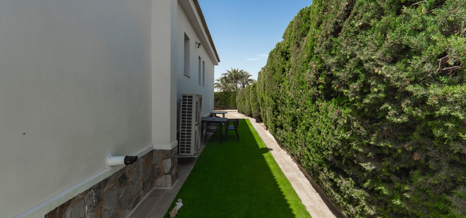 Exceptionell villa som blandar modern komfort med tidlös medelhavselegans — Förhöjd sjö- och havsutsikt Denna exceptionella villa blandar mästerligt moderna bekvämligheter med tidlös medelhavsarkitektur och skapar en lyxig tillflyktsort bara några steg från stadens centrum – men ändå perfekt avskilt för maximal avskildhet. Eleganta stendetaljer, klassiska vita fasader och moderna, rena linjer förstärker hemmets sofistikerade karaktär. Belägen på en upphöjd tomt har fastigheten panoramautsikt över det omgivande naturlandskapet, saltsjöar och till och med det avlägsna Medelhavet, vilket erbjuder en unik känsla av öppenhet och lugn som sällan finns så nära staden. Viktiga funktioner Tre sovrum med eget badrumVarje sovrum erbjuder generösa proportioner, inbyggda garderober och privata badrum i premiuminredning och natursten. Öppen planlösningEn sömlös planlösning förenar vardagsrum, matsal och vardagsrum under höga tak och översvämmar interiören med naturligt ljus. Skjutdörrar ansluter till ett vinterrum omgivet av glasgardiner – perfekt för avkoppling året runt och för att njuta av den vidsträckta utsikten. Gourmetkök och tvättstugaDet eleganta, fullt utrustade köket kompletteras av en separat tvättstuga och en praktisk gästtoalett. Dubbla uppfarter och säker parkeringTvå oberoende grindar ger flexibel åtkomst. Under villan finns ett rymligt garage som rymmer flera fordon. Med förbehåll för ytterligare grävning kan det utökas till en fullstor källare som passar för gym, biograf eller ytterligare gästsviter. Underhållning utomhus Uppvärmd pool kantad av rymliga solterrasser Sommarkök och inbyggd grill för uteservering Dusch vid poolen och utomhus-WC Gräsmatta på motsatt sida – för närvarande en tom duk för landskapsarkitektur, sport eller lek Expansionspotential Befintligt bygglov möjliggör ett fristående gästhus med upp till tre sovrum. Tomten kan också lagligen segregeras, vilket erbjuder attraktiva möjligheter för framtida utveckling eller återförsäljning. Läge Beläget i ett förstklassigt läge med "bäst av två världar", ligger fastigheten i hjärtat av staden – inom gångavstånd till kaféer, butiker och viktiga tjänster – men ändå diskret undangömd på en lugn gata, vilket garanterar lugn, avskildhet och vidsträckt utsikt över sjön och havet. Investeringsattraktion Oavsett om den är tänkt som ett prestigefyllt permanent boende, en lyxig semester eller en högavkastande hyresinvestering, representerar denna villa en sällsynt möjlighet i ett oslagbart läge, med potential att öka värdet ytterligare över tid. Boka din privata visning idag för att uppleva dess fulla potential.