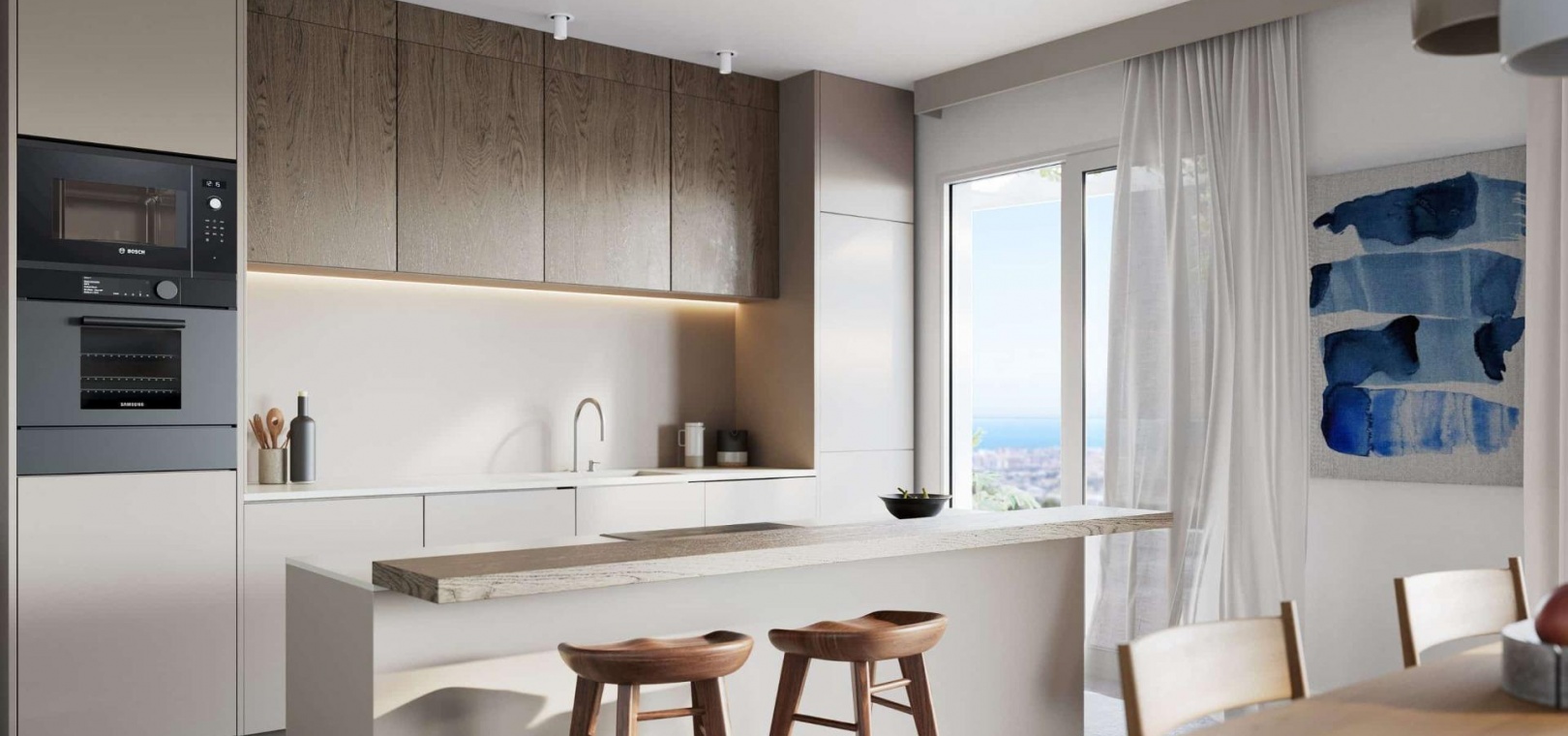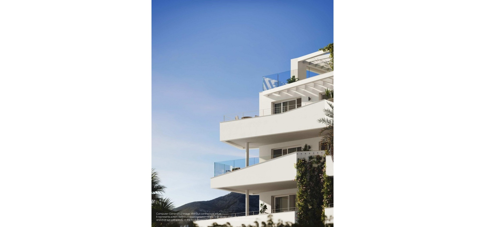 - Utformad av naturen: Med det mest eftertraktade läget på Costa del Sol, sydvästläge, erbjuder komplexen exklusiva lägenheter med 2 och 3 sovrum. I utformningen av byggnaderna har fokus legat på avskildhet, med hängande trädgårdar som faller nedför fasaden som ett grönt vattenfall. Detta skapar frodiga insynsskydd och ger en total integration med omgivningen till den övergripande visionen för projektet.