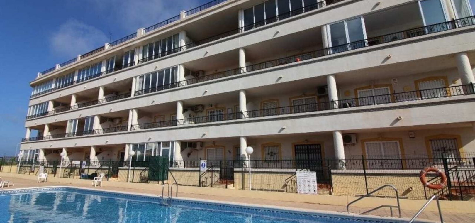 Denna rymliga lägenhet med tre sovrum på bottenvåningen ligger i det gated complexet La Mirada i Playa Flamenca och erbjuder komfort, bekvämlighet och ett utmärkt läge. Med en gemensam pool, säker miljö och fullständig tillgänglighet för rullstolar är den idealisk för familjesemestrar, golfresor eller året runt-boende.