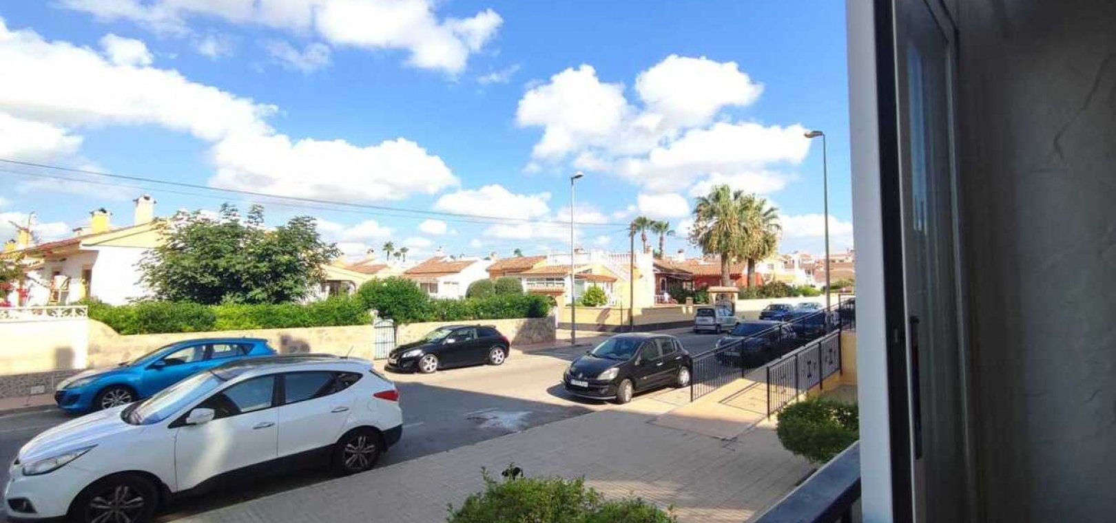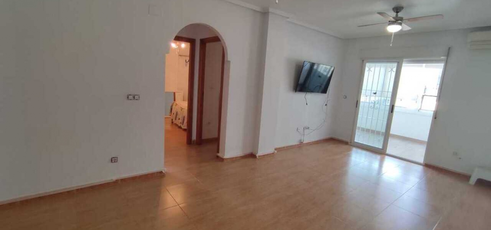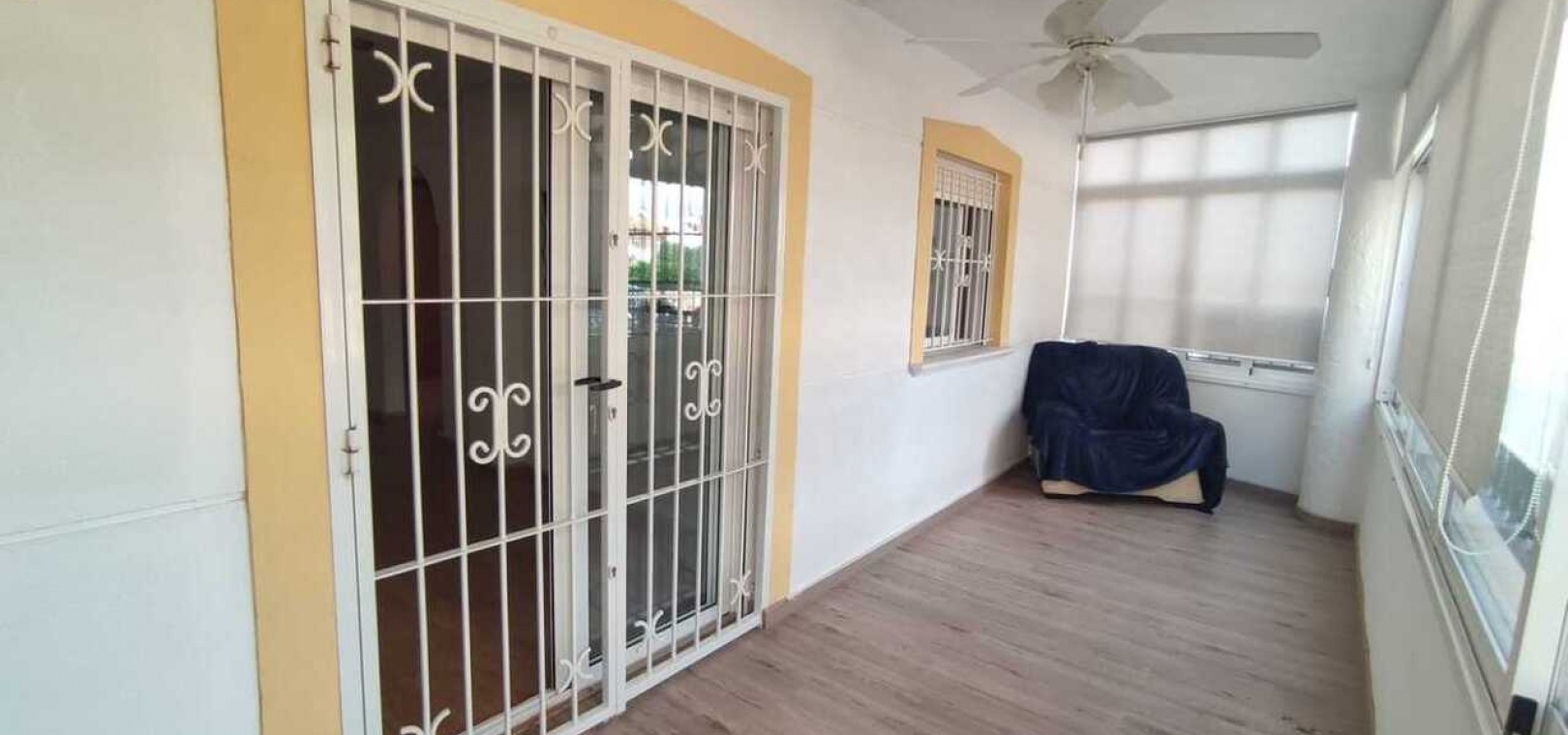 Fastigheten har ett vardagsrum och matplats i öppen planlösning, ett fullt utrustat kök med gott om förvaring och ett separat badrum, två dubbelrum och ett enkelrum, alla med inbyggda garderober. Badrummet är rymligt och har en modern duschkabin. Ytterligare bekvämligheter inkluderar luftkonditionering, takfläktar och ett ljust vardagsrum som öppnar upp mot en inglasad balkong – perfekt för användning både sommar och vinter.