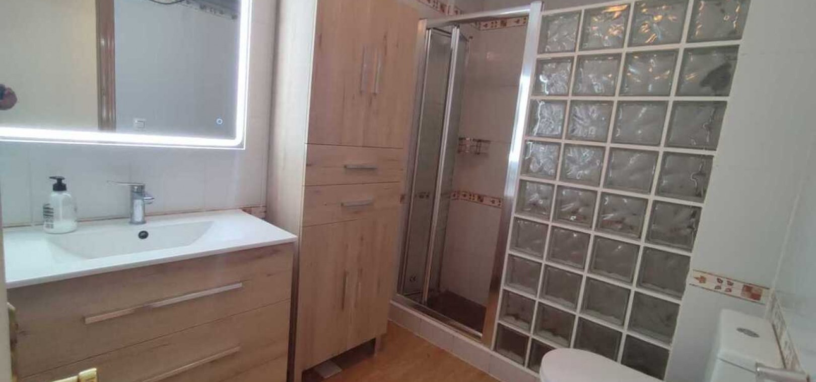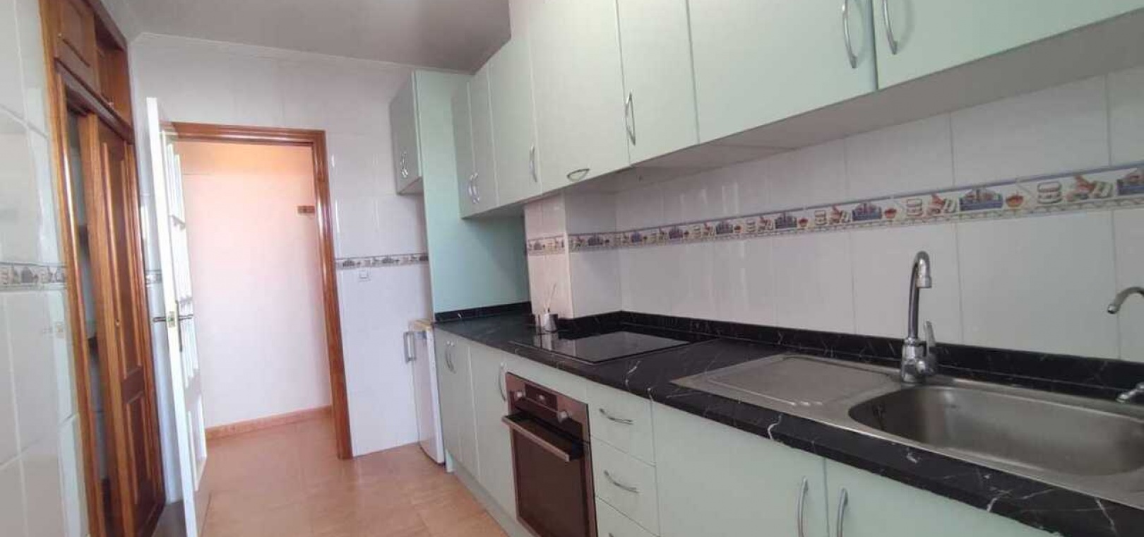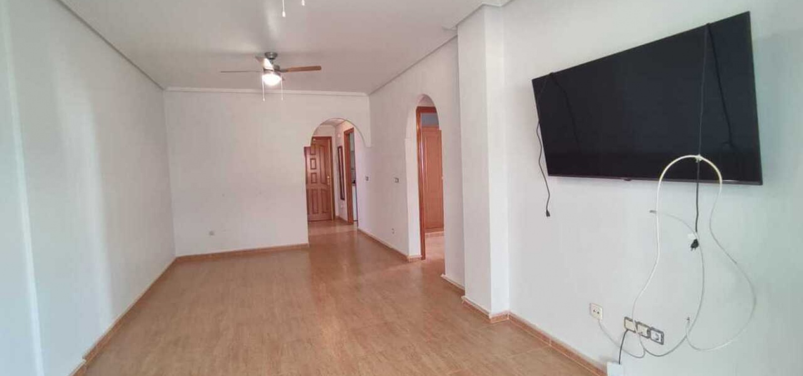 Fastigheten har ett vardagsrum och matplats i öppen planlösning, ett fullt utrustat kök med gott om förvaring och ett separat badrum, två dubbelrum och ett enkelrum, alla med inbyggda garderober. Badrummet är rymligt och har en modern duschkabin. Ytterligare bekvämligheter inkluderar luftkonditionering, takfläktar och ett ljust vardagsrum som öppnar upp mot en inglasad balkong – perfekt för användning både sommar och vinter.
