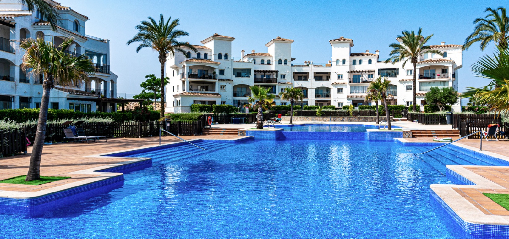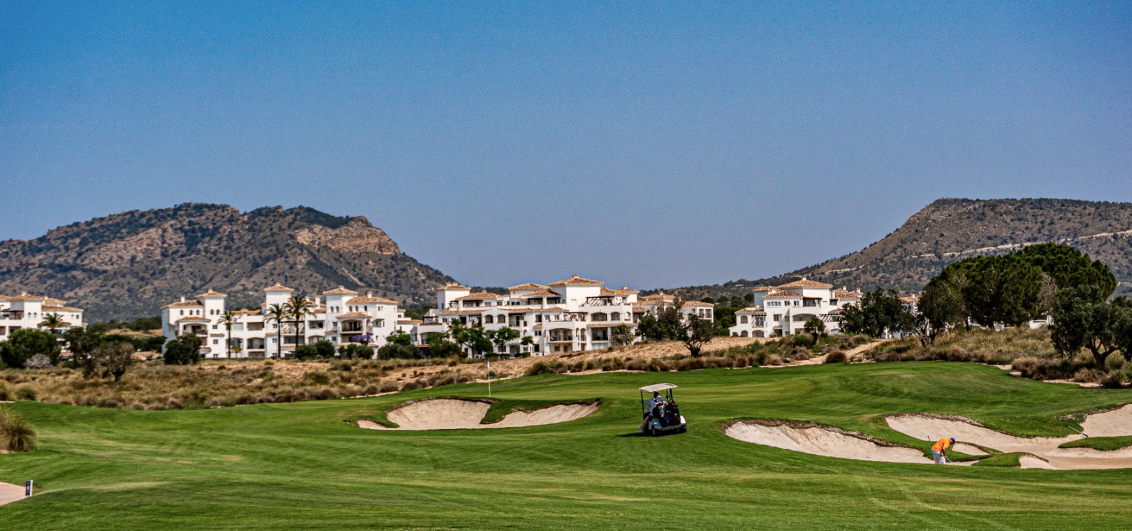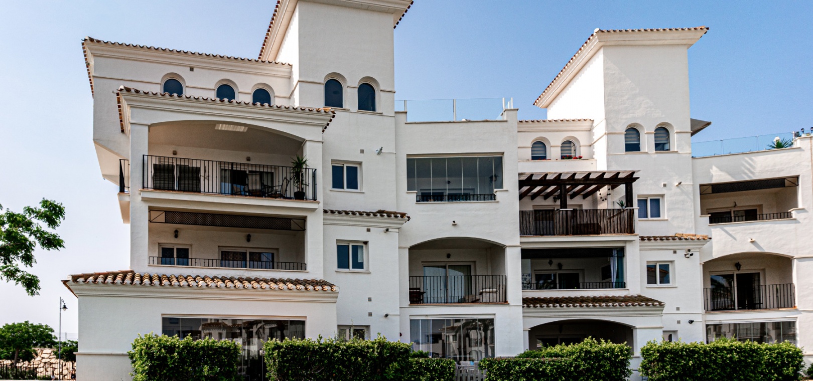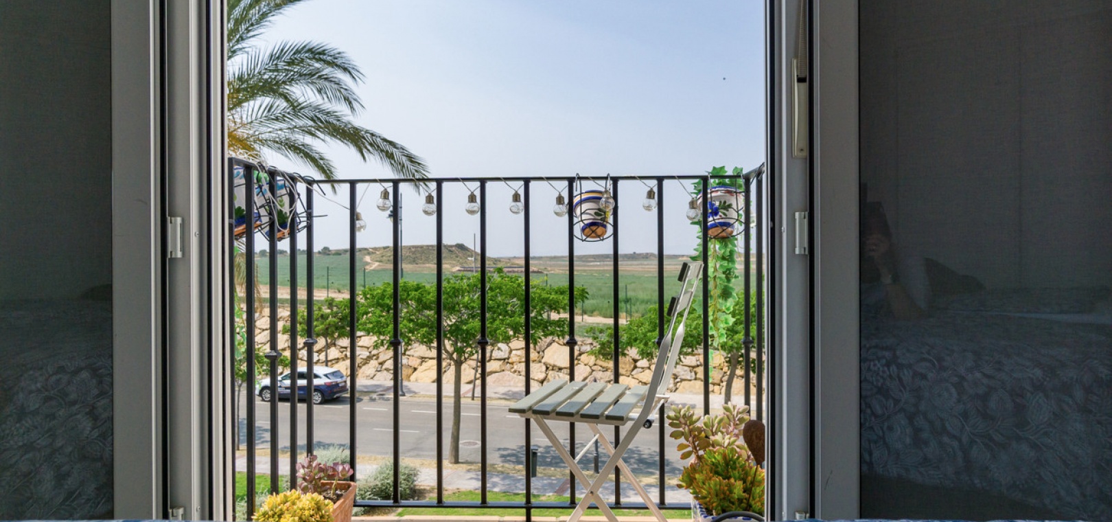 Helrenoverad lägenhet till salu på Hacienda Riquelme Golf Resort, Sucina, Murcia. Lägenheten erbjuder 2 dubbelrum (båda sovrummen har fransk balkong), 1 modernt badrum med dusch, rymligt vardagsrum/matrum med inglasad terrass med fantastisk utsikt över de gemensamma trädgårdarna, poolen och själva golfbanan, plus ett separat fullt utrustat kök. Fastigheten säljs helrenoverad och är redo att användas med många lyxiga extrafunktioner och detaljer. Hacienda Riquelme Golf Resort är ett familjevänligt semester-, golf- och fritidsanläggning belägen mellan bergen och Medelhavet. Med en kompromisslös Nicklaus-design har den 18-håls, par 72-golfbanan i linksstil byggts enligt mästerskapsstandard. Den erbjuder en lugn miljö för dem som vill koppla av i sina lyxiga trädgårdar och pooler, samtidigt som den erbjuder en mängd olika fritidsfaciliteter för dem som gillar att hålla sig aktiva med slag som försvåras av böljande fairways, bunkerhinder, vildgräs, olivträd och stora sjöar. Mar Menor och lokala stränder kan nås på under 20 minuter. Den vänliga och typiska spanska byn Sucina med sina barer, restauranger och kyrktorg ligger bara några minuter bort med bil. Murcias internationella flygplats ligger cirka 20 minuter bort med bil. Ett perfekt hem för både golfentusiaster och semesterfirare. Kontakta oss idag för en visning.