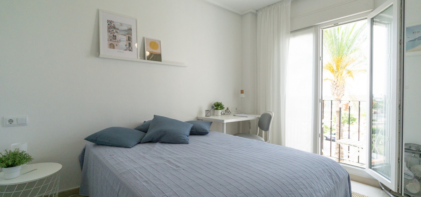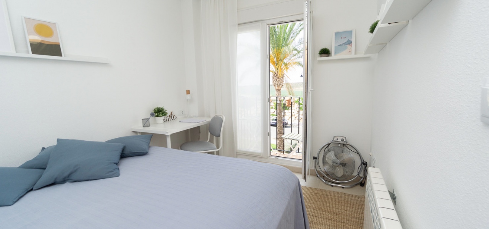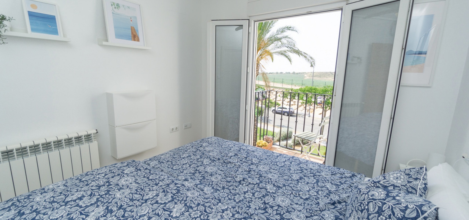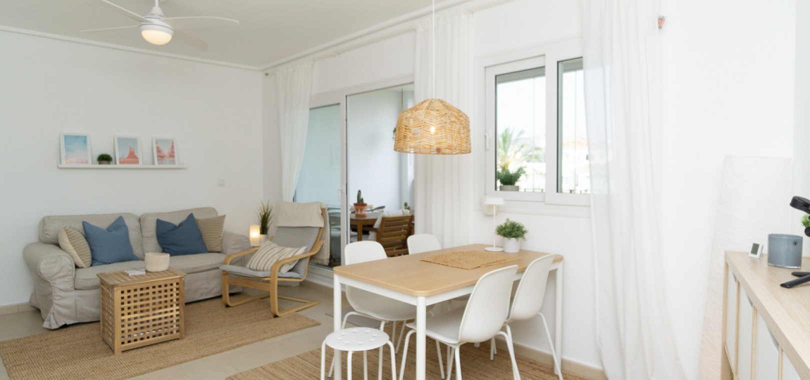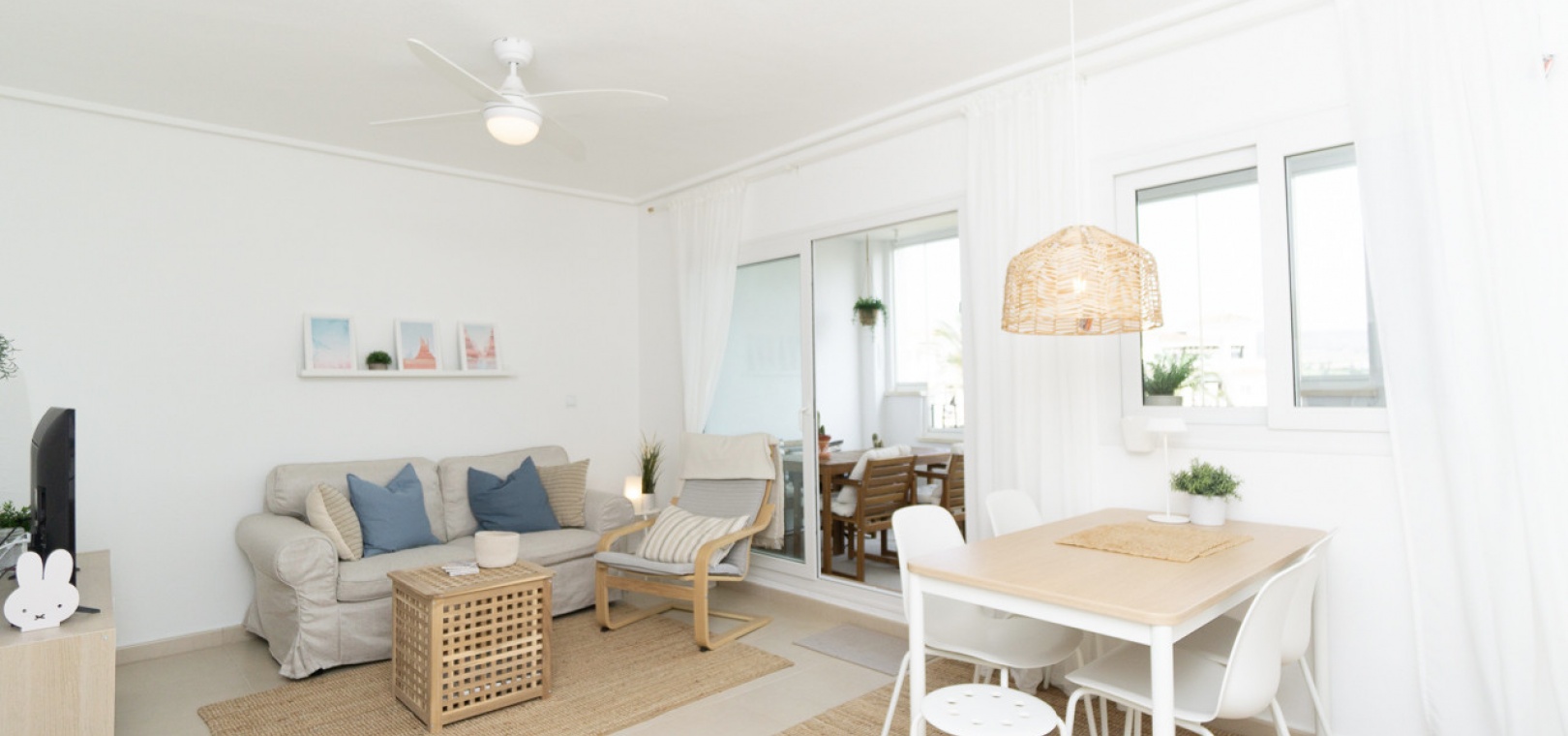 Helrenoverad lägenhet till salu på Hacienda Riquelme Golf Resort, Sucina, Murcia. Lägenheten erbjuder 2 dubbelrum (båda sovrummen har fransk balkong), 1 modernt badrum med dusch, rymligt vardagsrum/matrum med inglasad terrass med fantastisk utsikt över de gemensamma trädgårdarna, poolen och själva golfbanan, plus ett separat fullt utrustat kök. Fastigheten säljs helrenoverad och är redo att användas med många lyxiga extrafunktioner och detaljer. Hacienda Riquelme Golf Resort är ett familjevänligt semester-, golf- och fritidsanläggning belägen mellan bergen och Medelhavet. Med en kompromisslös Nicklaus-design har den 18-håls, par 72-golfbanan i linksstil byggts enligt mästerskapsstandard. Den erbjuder en lugn miljö för dem som vill koppla av i sina lyxiga trädgårdar och pooler, samtidigt som den erbjuder en mängd olika fritidsfaciliteter för dem som gillar att hålla sig aktiva med slag som försvåras av böljande fairways, bunkerhinder, vildgräs, olivträd och stora sjöar. Mar Menor och lokala stränder kan nås på under 20 minuter. Den vänliga och typiska spanska byn Sucina med sina barer, restauranger och kyrktorg ligger bara några minuter bort med bil. Murcias internationella flygplats ligger cirka 20 minuter bort med bil. Ett perfekt hem för både golfentusiaster och semesterfirare. Kontakta oss idag för en visning.
