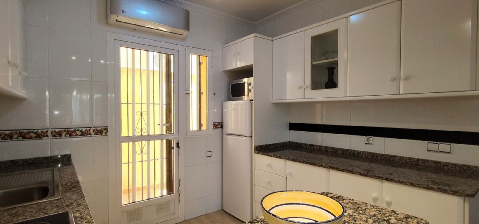 Sällsynt radhus med 3 sovrum och 2 badrum i Vistamar VI, Cabo Roig Beachside!! En unik möjlighet att köpa ett rymligt radhus med 3 sovrum och 2 badrum i det mycket eftertraktade bostadskomplexet Vistamar VI, beläget bara 100 meter från den berömda strandpromenaden och stranden i Cabo Roig. Fastigheter i detta område är mycket efterfrågade, och med tre sovrum är detta hem ett sällsynt fynd på marknaden. Utformad för både komfort och avskildhet har fastigheten inga grannar ovanför eller nedanför, vilket ger känslan av ett oberoende hem. Inuti hittar du tre generösa dubbelrum, två badrum, ett välutrustat kök med tvättstuga och ljusa vardagsrum som öppnar upp mot olika terrasser och balkonger. En höjdpunkt är den privata takterrass med solbad, underhållning eller havsbris. Radhuset säljs fullt möblerat, med satellit-TV, luftkonditionering i varje rum och alla extrafunktioner som behövs för omedelbar njutning. Beläget i ett säkert gated community med parkeringsplatser för boende, och du kan också dra nytta av en vacker gemensam pool som erbjuder en verkligt idyllisk miljö. Med sitt utmärkta läge vid stranden, gångavstånd till barer, restauranger, butiker och alla bekvämligheter, är denna fastighet inte bara ett idealiskt semesterhus utan erbjuder också fantastisk uthyrningspotential för investerare.