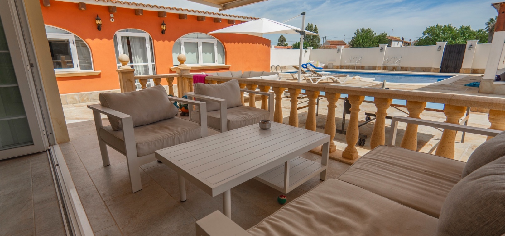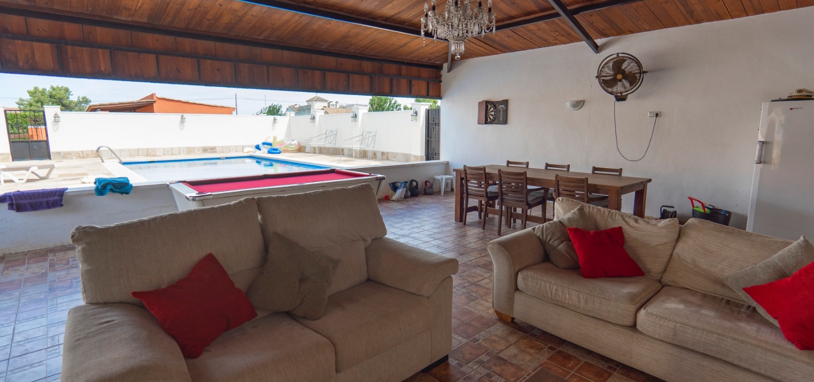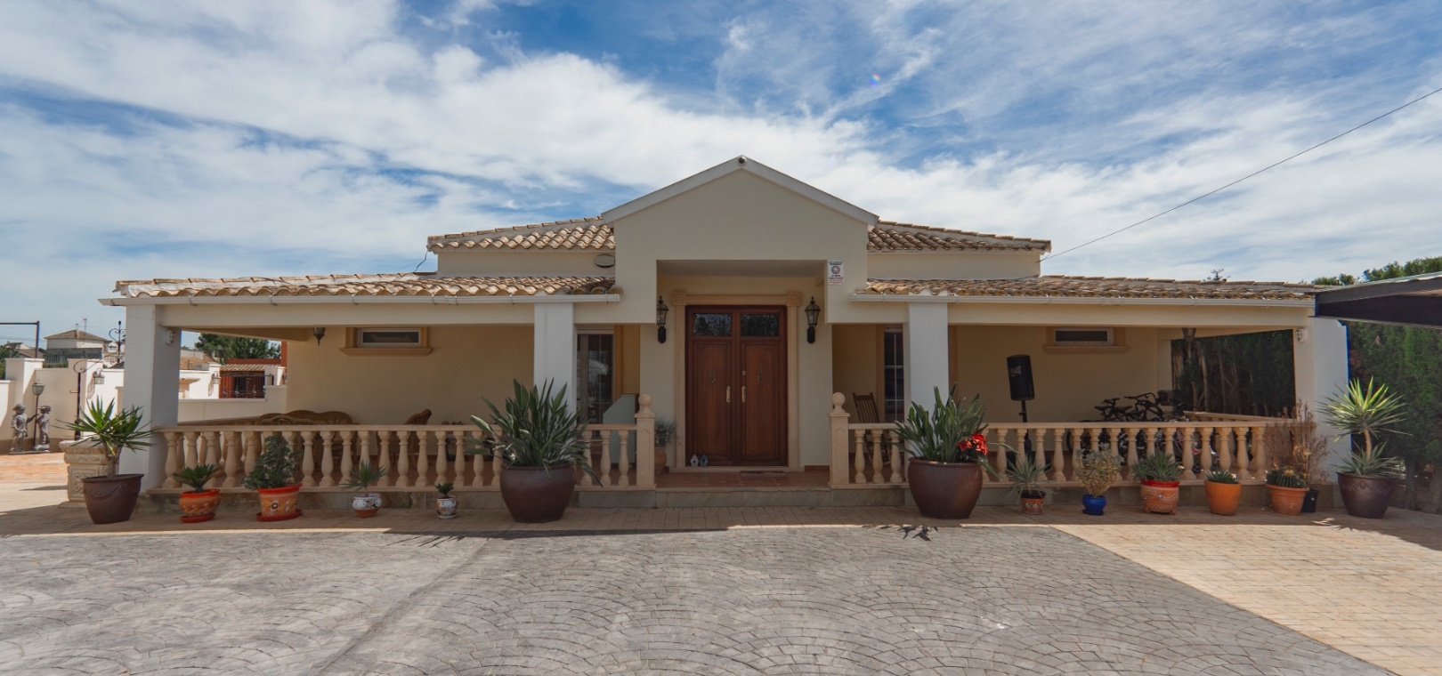 Lyxig lantvilla med stall till salu i Heredades, Costa Blanca South En rymlig villa i ett utmärkt läge Denna fristående lantvilla med öster- och västerläge, privat pool, stall och hage ligger på en generös tomt på 2286 m² i den charmiga byn Las Heredades, mellan Formentera del Segura och Almoradí. Fastigheten ligger bara en kort 6–7 minuters promenad från byns centrum och bara 5 minuter med bil från Formentera del Segura, Rojales och Benijofar. Med de gyllene stränderna i Guardamar del Segura bara 15 minuter bort, och Alicantes flygplats nås på bara 35 minuter, har detta hem en idealisk balans mellan lugn och bekvämlighet. Elegant boende och gästboende Huvudvillan erbjuder fyra sovrum och tre badrum plus en garderob. Master-sviten har en klädkammare och ett lyxigt badrum med både badkar och dusch. Ytterligare två sovrum har även eget badrum, medan ett annat rum för närvarande är inrett som golfsimulator men lätt skulle kunna fungera som ett femte sovrum. Ett modernt kök i lantlig stil öppnar upp mot matsalen med direkt tillgång till terrassen, vilket ger underbar utsikt över poolen och trädgårdarna. Det finns också ett separat kontor i vardagsrummet, samt ett grovkök, inbyggda garderober, luftkonditionering och värmepaneler i hela huset. Separat gästboende utökar fastigheten ytterligare med två sovrum, ett badrum med våtrum, kök och vardagsrum, perfekt för att besöka familjen eller hyra ut. Utomhusliv och ridmöjligheter Utomhusområdena är utformade för både avkoppling och underhållning. En privat pool omgiven av kaklade terrasser kompletteras av ett sommarkök, grill och täckta sittplatser. Trädgårdarna inkluderar en dekorativ fontän och gott om parkeringsplatser under carporten. För ridälskare gör de tre stallen, sadelrummet och hagen denna villa verkligt unik och erbjuder en sällsynt livsstilsmöjlighet i denna del av Costa Blanca Södra. Omgivningarna Heredades är en traditionell spansk by med en varm och välkomnande känsla, medan närliggande Formentera del Segura bara fem minuter bort ligger med butiker, lokala restauranger och årliga fester. Rojales är välkänt för sina veckovisa marknader och kulturella sevärdheter, medan Ciudad Quesada erbjuder internationella restauranger, golf på La Marquesa och familjeaktiviteter inklusive en vattenpark. Den livliga staden Almoradí har ytterligare bekvämligheter, med en berömd lördagsmarknad och autentisk spansk livsstil. Stränder, golf och tillgänglighet På bara 15 minuter kan du nå de blåflaggade stränderna i Guardamar del Segura, kända för sina sanddyner och breda gyllene sand. Golfälskare har gott om valmöjligheter, med La Marquesa Golf i Ciudad Quesada bara 10 minuter bort, och flera fler banor inom bekvämt räckhåll. Alicantes flygplats ligger en bekväm 35-minuters bilresa bort, medan Murcias internationella flygplats ligger cirka 50 minuter bort. En unik möjlighet på Costa Blanca södra Denna villa är ett sällsynt fynd – en rymlig lantegendom med ridmöjligheter, privat gästboende och utmärkt tillgång till stränder, golf och transportförbindelser. Den kombinerar modernt boende med traditionell charm, vilket gör den idealisk som familjebostad, semesterbostad eller investering.
