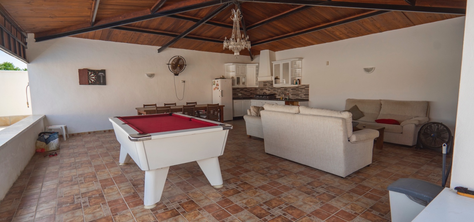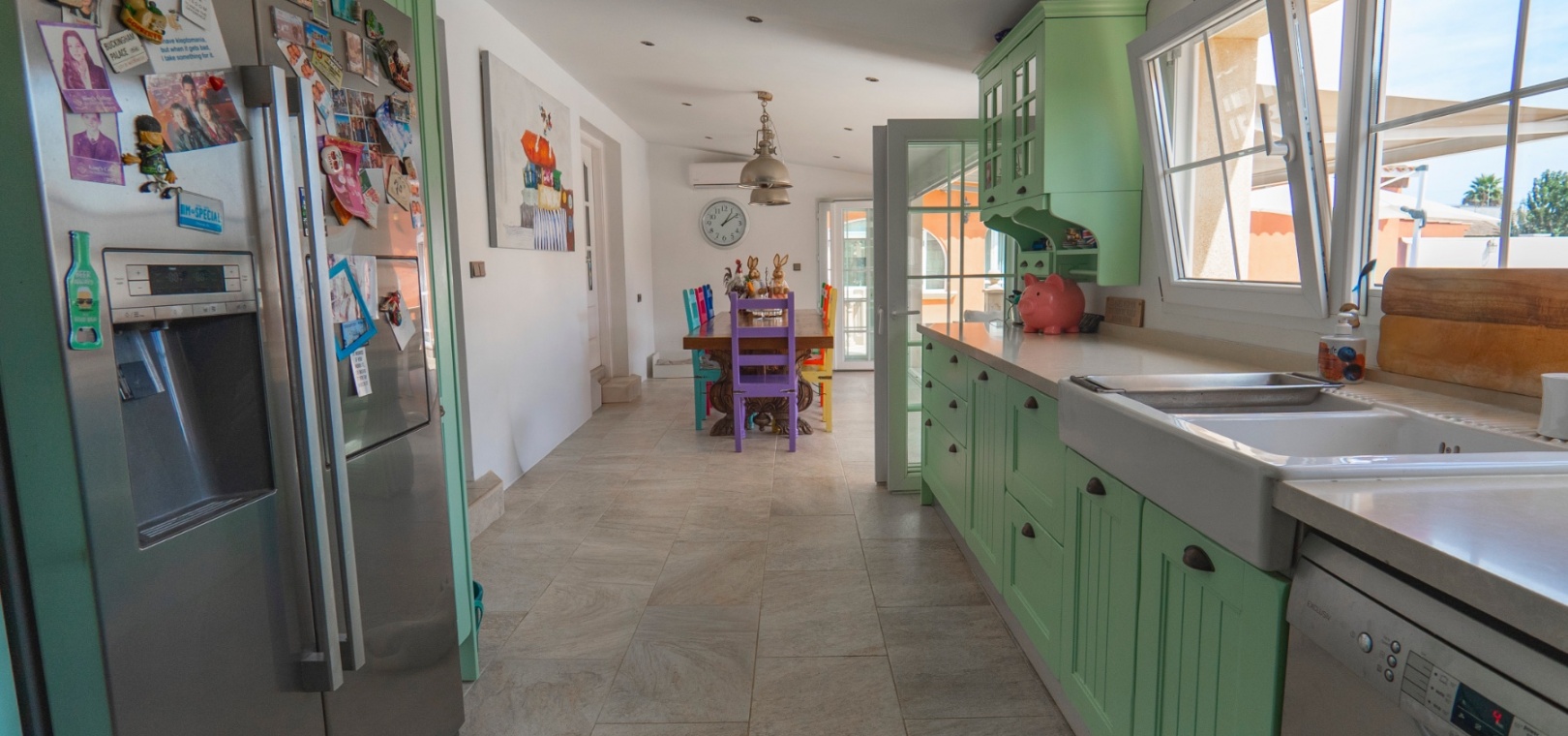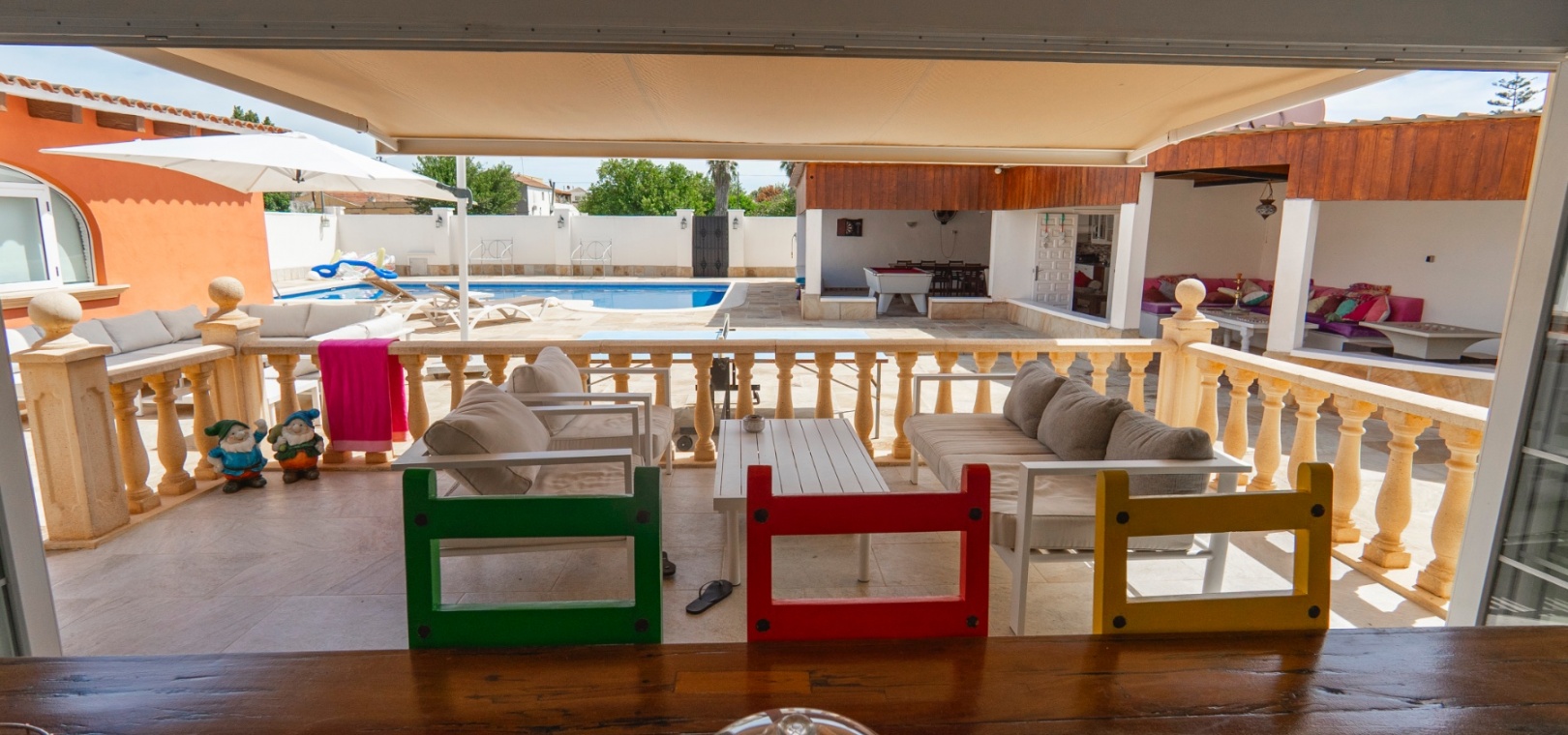 Lyxig lantvilla med stall till salu i Heredades, Costa Blanca South En rymlig villa i ett utmärkt läge Denna fristående lantvilla med öster- och västerläge, privat pool, stall och hage ligger på en generös tomt på 2286 m² i den charmiga byn Las Heredades, mellan Formentera del Segura och Almoradí. Fastigheten ligger bara en kort 6–7 minuters promenad från byns centrum och bara 5 minuter med bil från Formentera del Segura, Rojales och Benijofar. Med de gyllene stränderna i Guardamar del Segura bara 15 minuter bort, och Alicantes flygplats nås på bara 35 minuter, har detta hem en idealisk balans mellan lugn och bekvämlighet. Elegant boende och gästboende Huvudvillan erbjuder fyra sovrum och tre badrum plus en garderob. Master-sviten har en klädkammare och ett lyxigt badrum med både badkar och dusch. Ytterligare två sovrum har även eget badrum, medan ett annat rum för närvarande är inrett som golfsimulator men lätt skulle kunna fungera som ett femte sovrum. Ett modernt kök i lantlig stil öppnar upp mot matsalen med direkt tillgång till terrassen, vilket ger underbar utsikt över poolen och trädgårdarna. Det finns också ett separat kontor i vardagsrummet, samt ett grovkök, inbyggda garderober, luftkonditionering och värmepaneler i hela huset. Separat gästboende utökar fastigheten ytterligare med två sovrum, ett badrum med våtrum, kök och vardagsrum, perfekt för att besöka familjen eller hyra ut. Utomhusliv och ridmöjligheter Utomhusområdena är utformade för både avkoppling och underhållning. En privat pool omgiven av kaklade terrasser kompletteras av ett sommarkök, grill och täckta sittplatser. Trädgårdarna inkluderar en dekorativ fontän och gott om parkeringsplatser under carporten. För ridälskare gör de tre stallen, sadelrummet och hagen denna villa verkligt unik och erbjuder en sällsynt livsstilsmöjlighet i denna del av Costa Blanca Södra. Omgivningarna Heredades är en traditionell spansk by med en varm och välkomnande känsla, medan närliggande Formentera del Segura bara fem minuter bort ligger med butiker, lokala restauranger och årliga fester. Rojales är välkänt för sina veckovisa marknader och kulturella sevärdheter, medan Ciudad Quesada erbjuder internationella restauranger, golf på La Marquesa och familjeaktiviteter inklusive en vattenpark. Den livliga staden Almoradí har ytterligare bekvämligheter, med en berömd lördagsmarknad och autentisk spansk livsstil. Stränder, golf och tillgänglighet På bara 15 minuter kan du nå de blåflaggade stränderna i Guardamar del Segura, kända för sina sanddyner och breda gyllene sand. Golfälskare har gott om valmöjligheter, med La Marquesa Golf i Ciudad Quesada bara 10 minuter bort, och flera fler banor inom bekvämt räckhåll. Alicantes flygplats ligger en bekväm 35-minuters bilresa bort, medan Murcias internationella flygplats ligger cirka 50 minuter bort. En unik möjlighet på Costa Blanca södra Denna villa är ett sällsynt fynd – en rymlig lantegendom med ridmöjligheter, privat gästboende och utmärkt tillgång till stränder, golf och transportförbindelser. Den kombinerar modernt boende med traditionell charm, vilket gör den idealisk som familjebostad, semesterbostad eller investering.