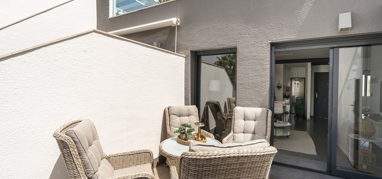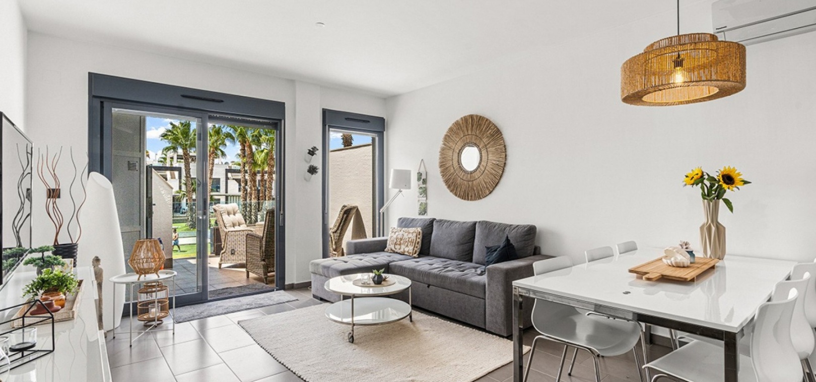 Läget är helt enkelt perfekt: bara en minuts promenad från Zenia Boulevard med över 150 butiker, restauranger och fritidsaktiviteter; bara 20 minuters promenad till stränderna i La Zenia och Playa Flamenca, båda kända för sin gyllene sand och kristallklara vatten; och bara en kort bilresa till tre prestigefyllda golfbanor – Villamartín, Las Ramblas och Campoamor. Dessutom har det goda förbindelser till lokala stormarknader, veckomarknader och flygplatserna i Alicante och Murcia, bara 45 minuter bort via motorvägen AP-7.