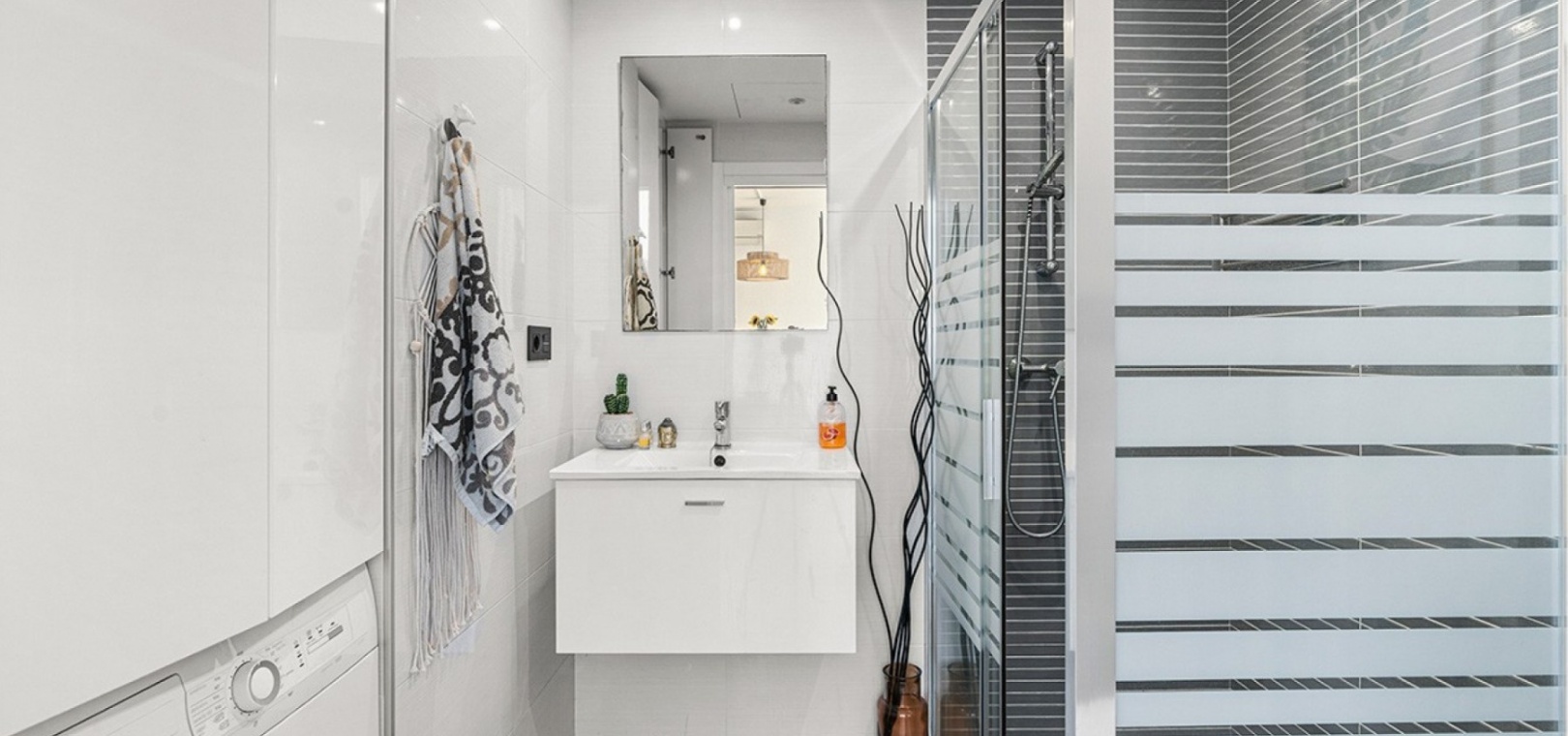 Huset har två rymliga sovrum, varav ett har eget badrum med utsikt över de vackert anlagda gemensamma trädgårdarna, och två moderna badrum utrustade med högkvalitativa material och golvvärme. Köket i öppen planlösning flyter sömlöst in i det ljusa vardagsrummet med matplats, som sträcker sig till en charmig privat terrass med markis, perfekt för stunder av avkoppling.