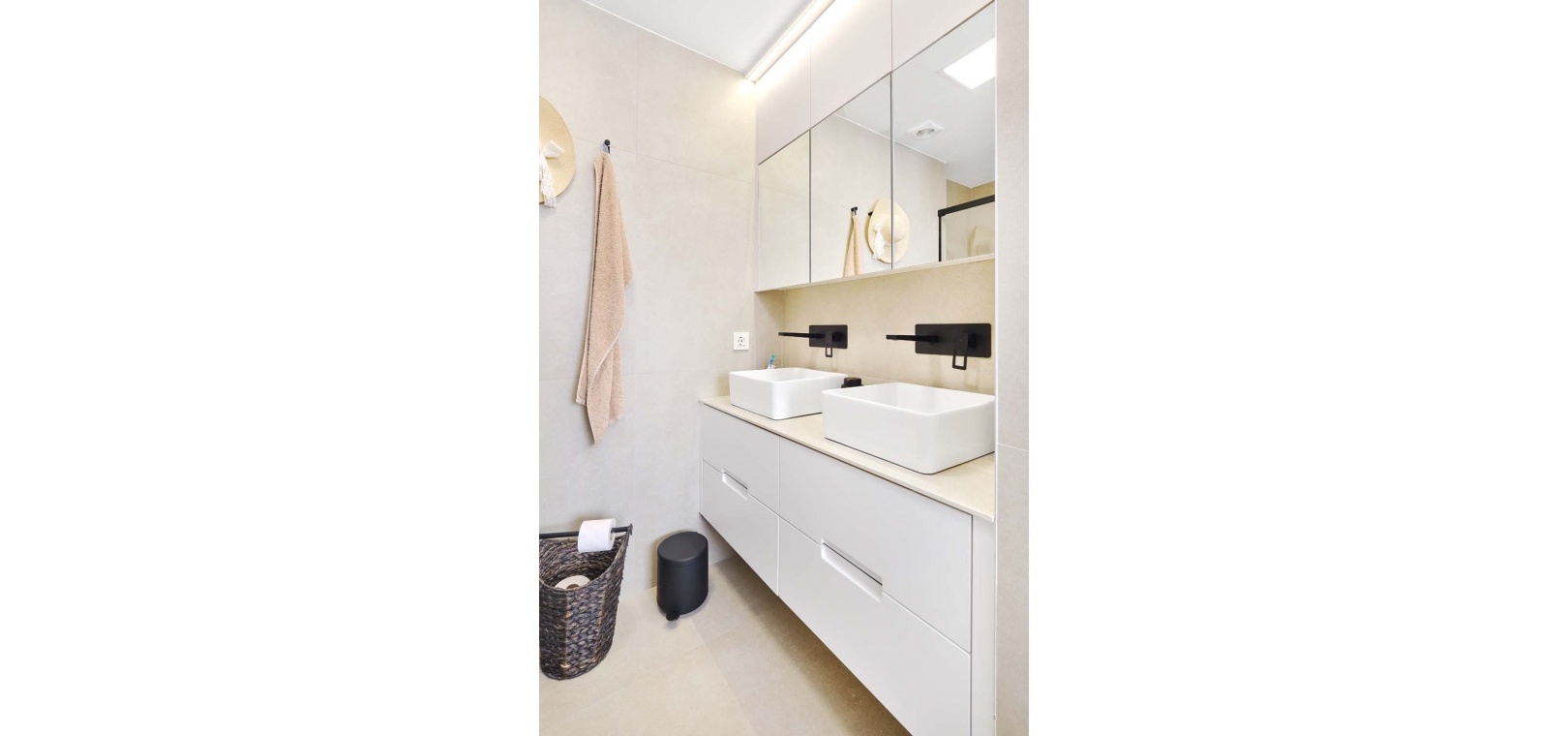 Ytterligare funktioner inkluderar elektriska markiser, kanalstyrd varm/kall luftkonditionering, golvvärme i badrummen, tilldelad parkering och ett förråd. Lägenheten byggdes i juli 2023 och är nyckelfärdig och har en hög standard.