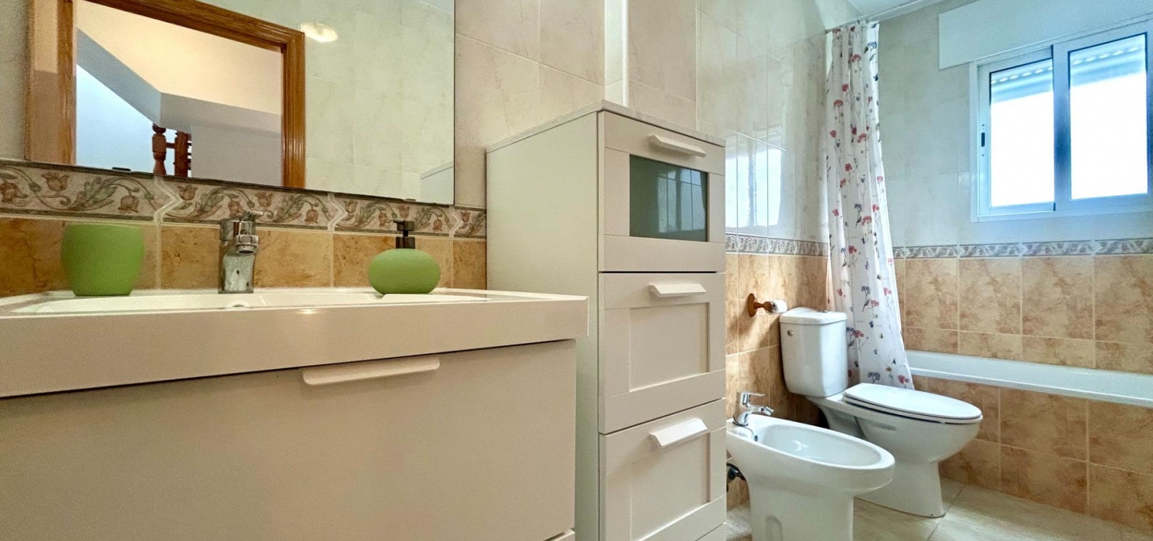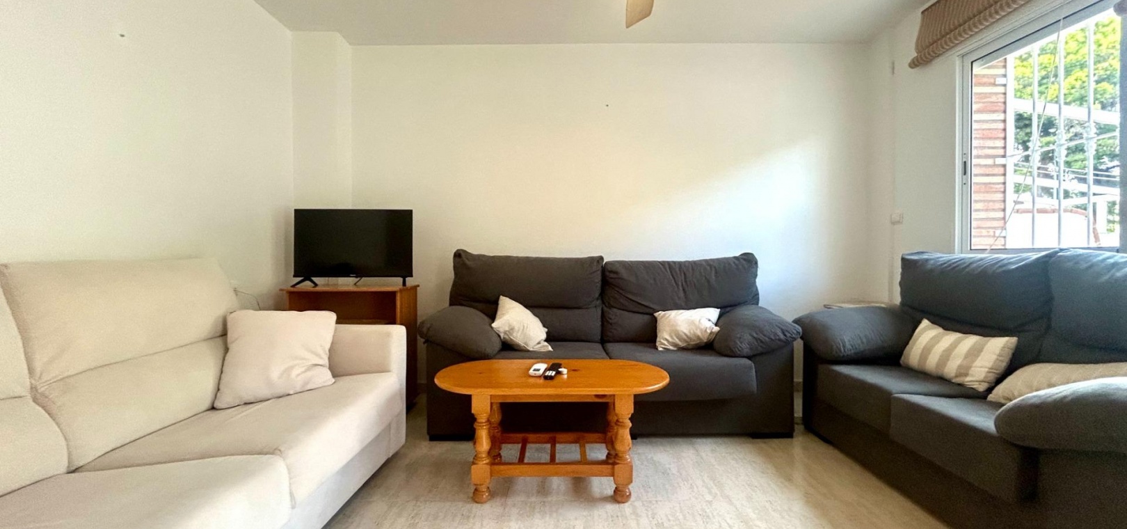 Byggd yta: 105 m² 3 ljusa dubbelrum plus ett extra mångsidigt utrymme (perfekt för ett fjärde sovrum eller kontor) Separat, fullt utrustat kök Tvättstuga med utgång till en 16 m² stor uteplats Terrass framtill med plats för parkering 15 m² solarium för solbad