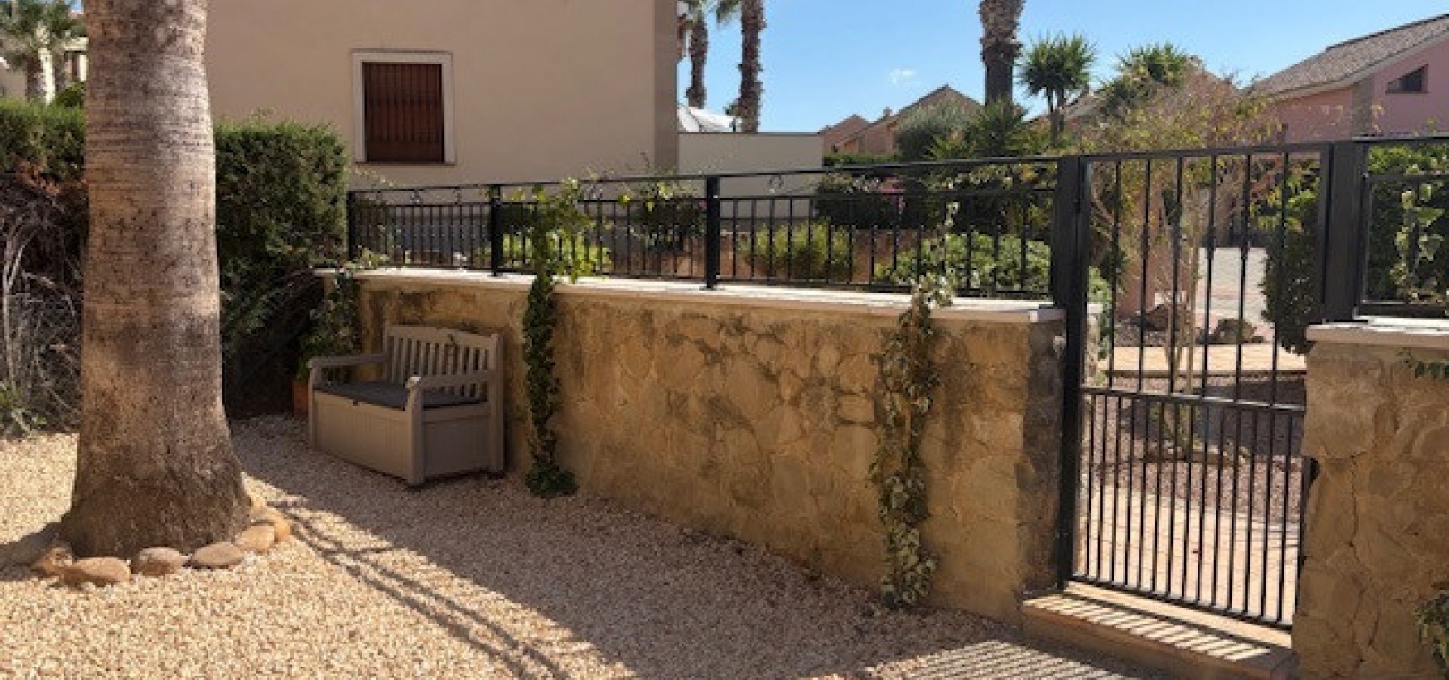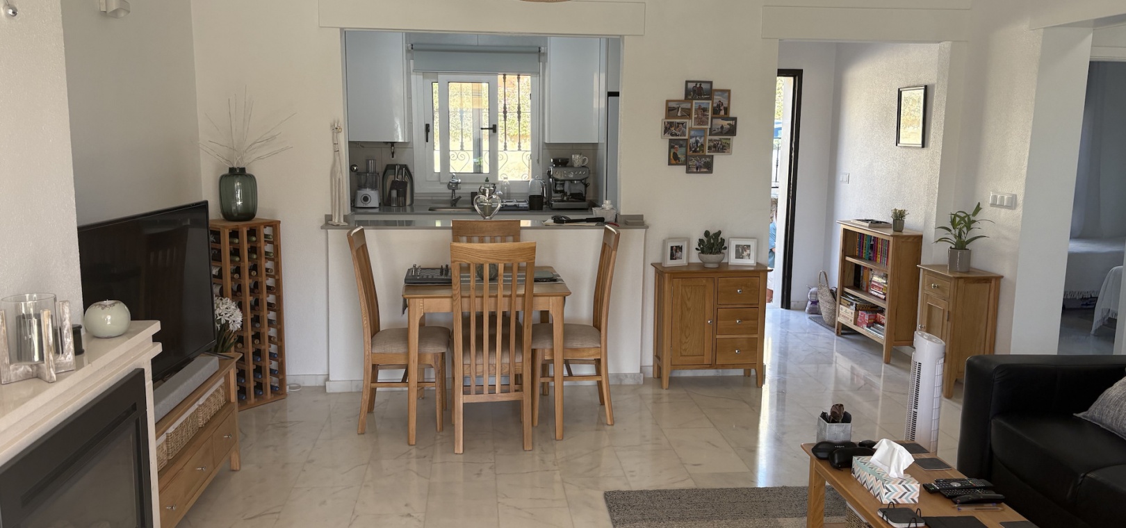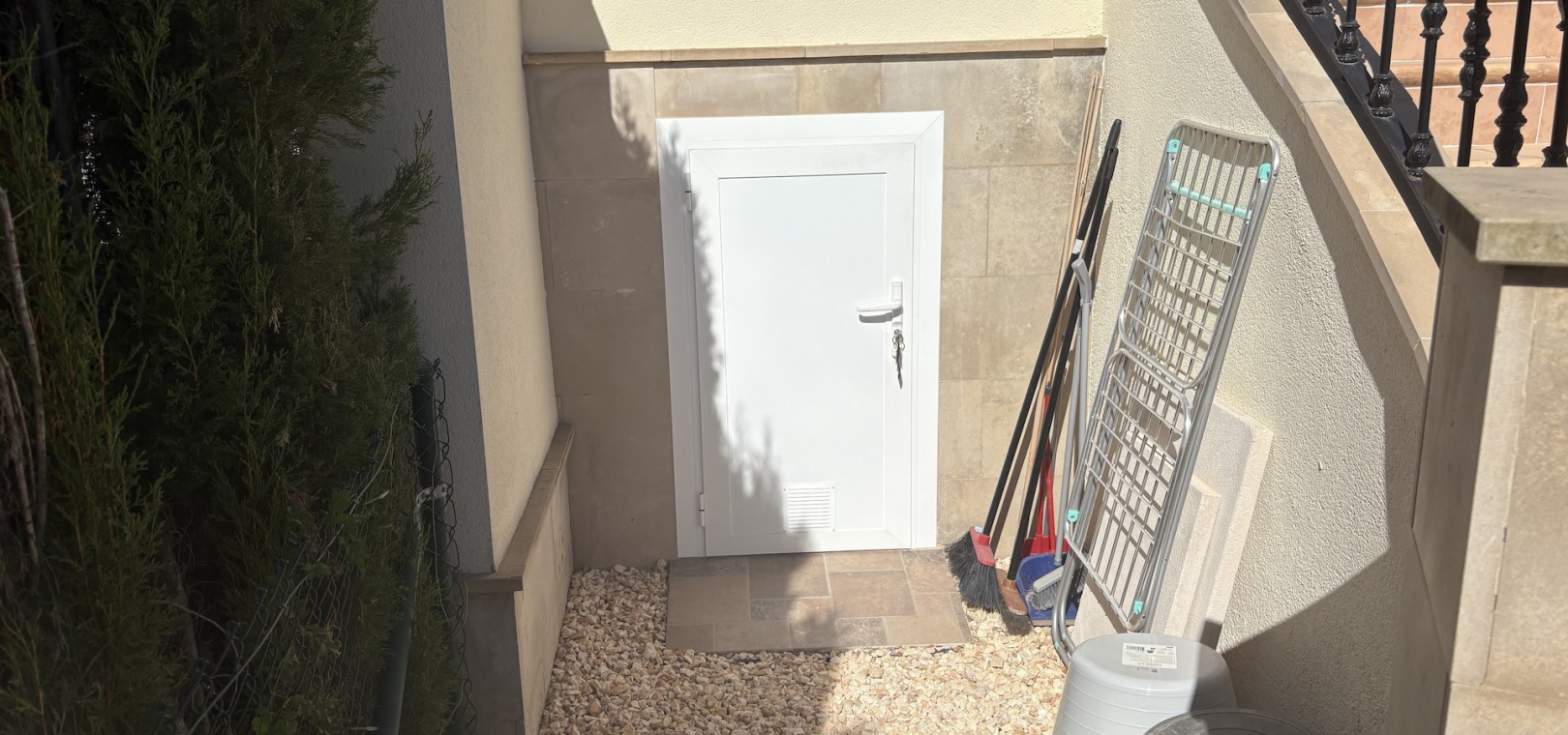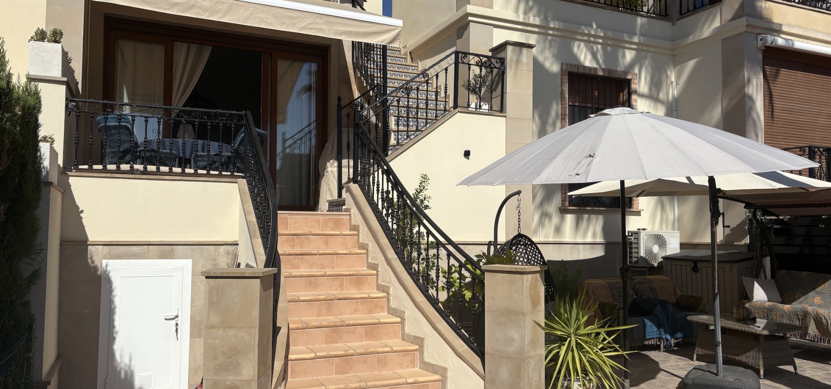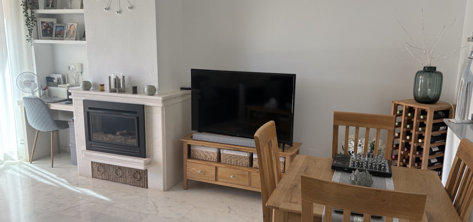 Denna extremt välpresenterade LOLA-bungalow i söderläge ligger i det exklusiva La Finca Golf-området. Denna fastighet erbjuder 65 kvadratmeter bekväm boyta, med 2 rymliga sovrum och 2 moderna badrum (ett en-suite). Huset är utformat med en öppen och ljus planlösning och ett välvt tak, vilket ger gott om naturligt ljus. Njut av bekvämligheten med en liten källare, vilket ger extra utrymme för förvaring eller en privat tillflyktsort. Bungalowen är utrustad med ett centralt luftkonditioneringssystem, vilket säkerställer en behaglig inomhustemperatur året runt. Omöblerad erbjuds du har flexibiliteten att skapa din ideala bostadsmiljö. Extrafunktioner inkluderar: elektriska jalusier i vardagsrummet, en gaskamin, luftkonditionering, takfläktar, utomhusförråd under trappan. Fastigheten ligger i ett vackert underhållet gated complex, vilket ger trygghet och sinnesro. De boende har också tillgång till en stor gemensam pool, perfekt för avkoppling och socialt umgänge. La Finca Golf är känt för sina frodiga gröna landskap, lugna lägen och välskötta omgivningar. Området erbjuder en lugn livsstil med golf, lokala butiker, kaféer och tjänster i närheten, vilket gör det idealiskt för både semesterfirare och året runt-boende. Denna tilltalande bungalow presenteras av Orange Casas, din pålitliga fastighetsmäklare i La Finca Golf. Kontakta oss idag för att boka en visning.