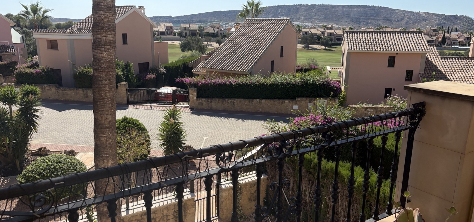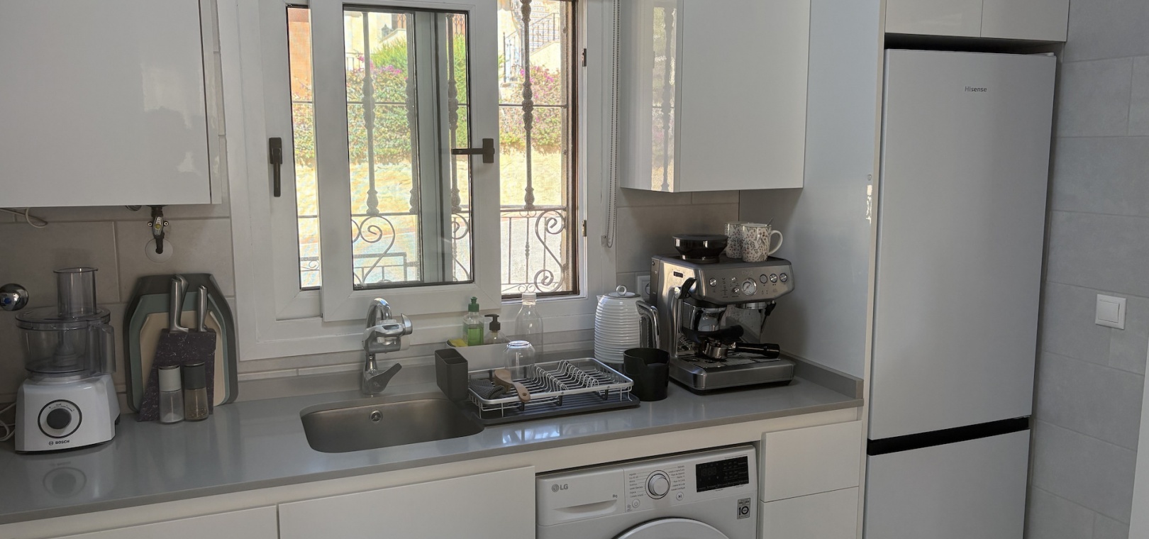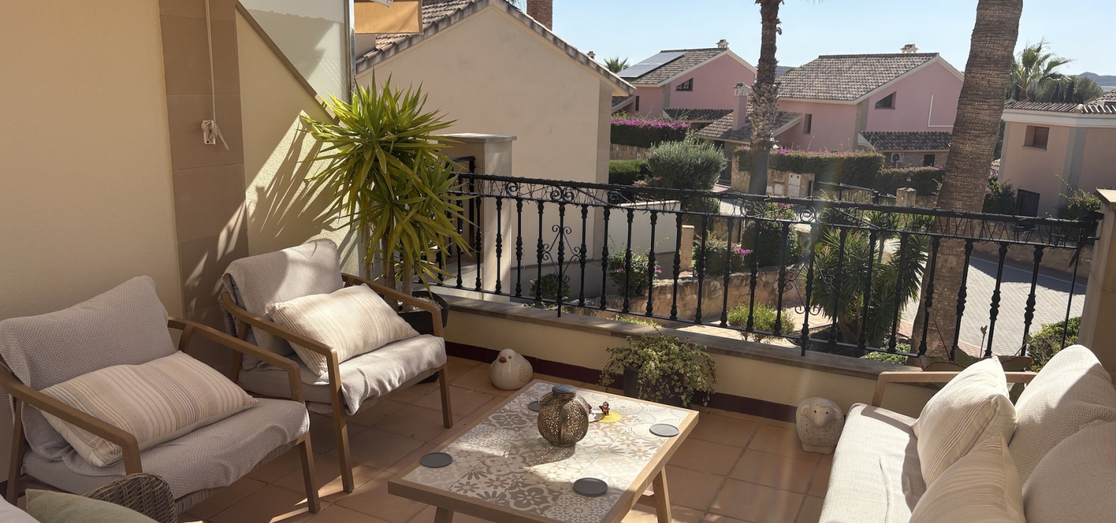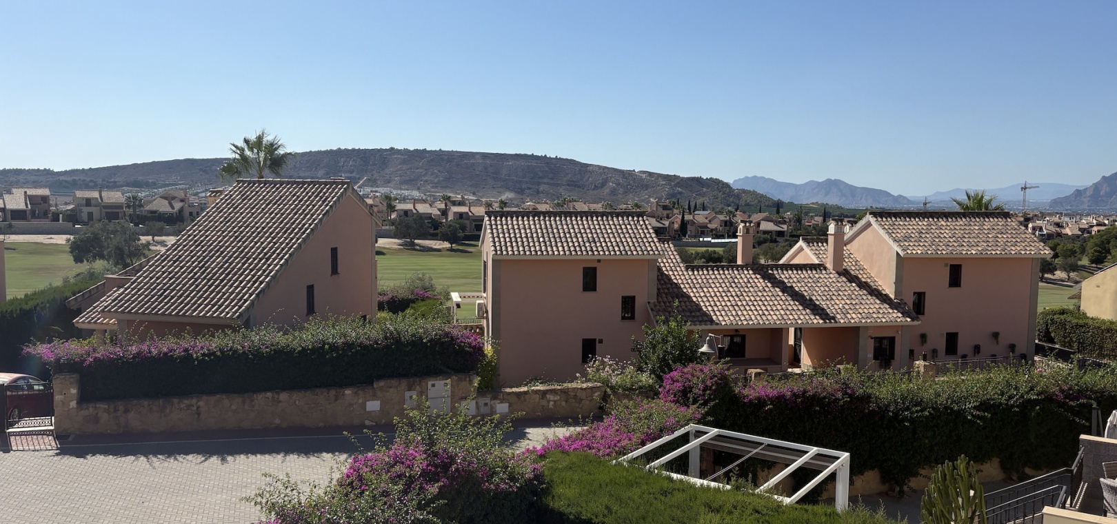 Denna extremt välpresenterade LOLA-bungalow i söderläge ligger i det exklusiva La Finca Golf-området. Denna fastighet erbjuder 65 kvadratmeter bekväm boyta, med 2 rymliga sovrum och 2 moderna badrum (ett en-suite). Huset är utformat med en öppen och ljus planlösning och ett välvt tak, vilket ger gott om naturligt ljus. Njut av bekvämligheten med en liten källare, vilket ger extra utrymme för förvaring eller en privat tillflyktsort. Bungalowen är utrustad med ett centralt luftkonditioneringssystem, vilket säkerställer en behaglig inomhustemperatur året runt. Omöblerad erbjuds du har flexibiliteten att skapa din ideala bostadsmiljö. Extrafunktioner inkluderar: elektriska jalusier i vardagsrummet, en gaskamin, luftkonditionering, takfläktar, utomhusförråd under trappan. Fastigheten ligger i ett vackert underhållet gated complex, vilket ger trygghet och sinnesro. De boende har också tillgång till en stor gemensam pool, perfekt för avkoppling och socialt umgänge. La Finca Golf är känt för sina frodiga gröna landskap, lugna lägen och välskötta omgivningar. Området erbjuder en lugn livsstil med golf, lokala butiker, kaféer och tjänster i närheten, vilket gör det idealiskt för både semesterfirare och året runt-boende. Denna tilltalande bungalow presenteras av Orange Casas, din pålitliga fastighetsmäklare i La Finca Golf. Kontakta oss idag för att boka en visning.