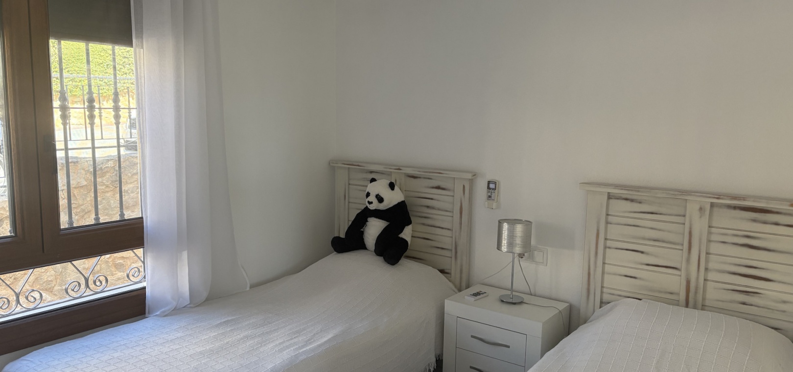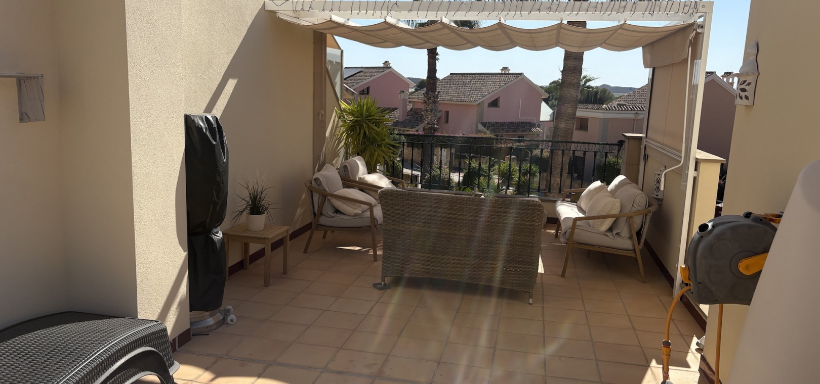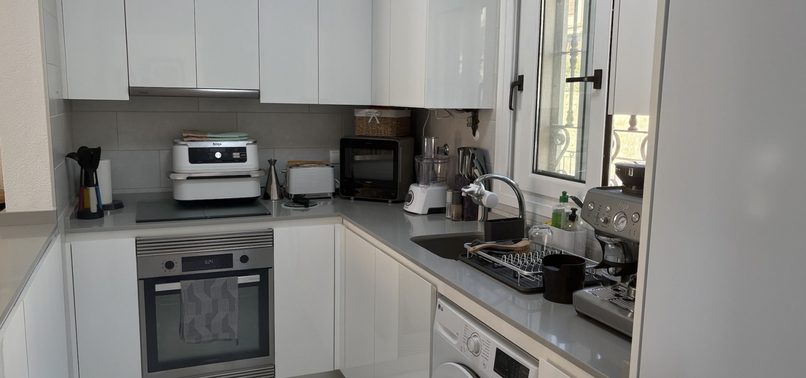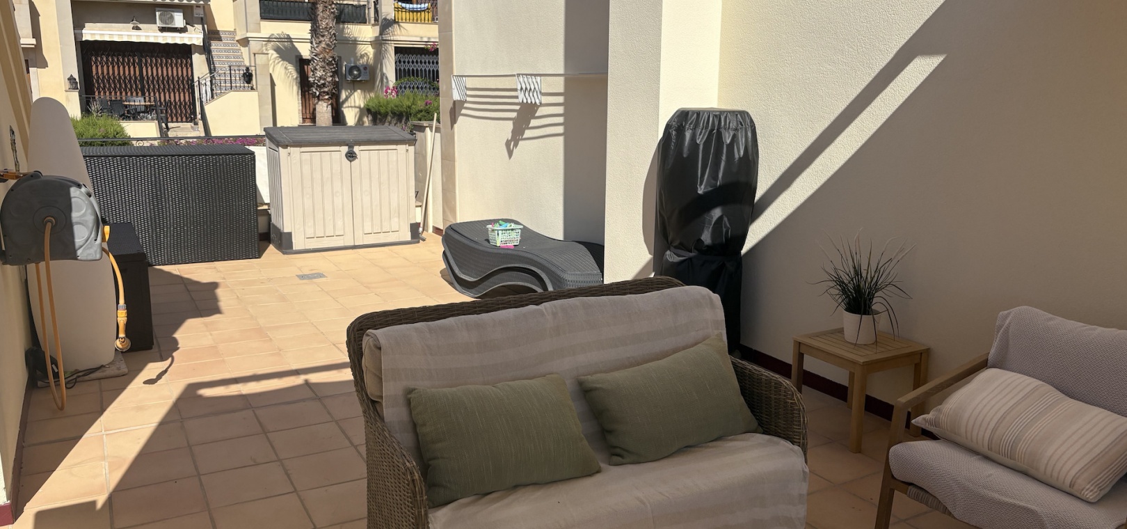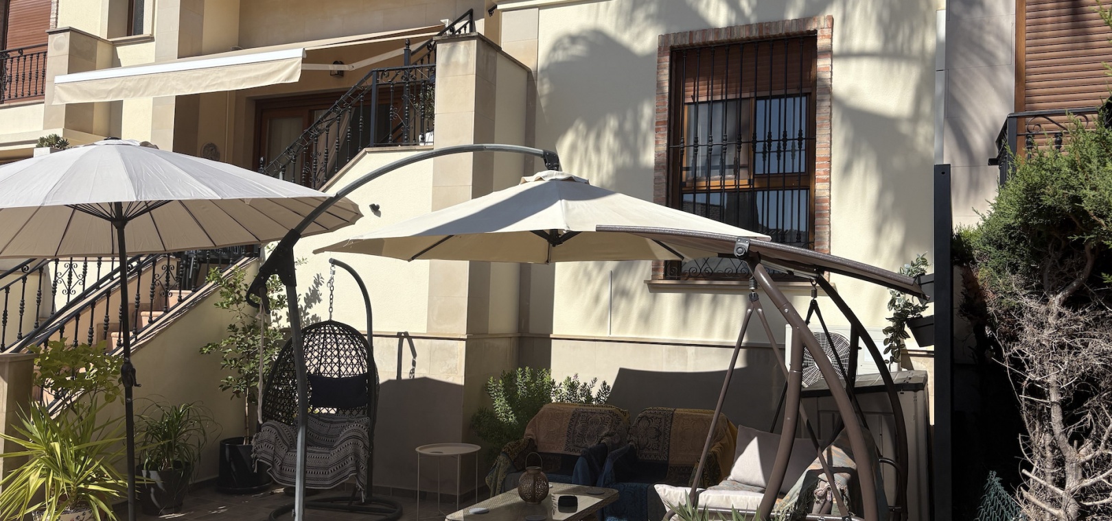 Denna extremt välpresenterade LOLA-bungalow i söderläge ligger i det exklusiva La Finca Golf-området. Denna fastighet erbjuder 65 kvadratmeter bekväm boyta, med 2 rymliga sovrum och 2 moderna badrum (ett en-suite). Huset är utformat med en öppen och ljus planlösning och ett välvt tak, vilket ger gott om naturligt ljus. Njut av bekvämligheten med en liten källare, vilket ger extra utrymme för förvaring eller en privat tillflyktsort. Bungalowen är utrustad med ett centralt luftkonditioneringssystem, vilket säkerställer en behaglig inomhustemperatur året runt. Omöblerad erbjuds du har flexibiliteten att skapa din ideala bostadsmiljö. Extrafunktioner inkluderar: elektriska jalusier i vardagsrummet, en gaskamin, luftkonditionering, takfläktar, utomhusförråd under trappan. Fastigheten ligger i ett vackert underhållet gated complex, vilket ger trygghet och sinnesro. De boende har också tillgång till en stor gemensam pool, perfekt för avkoppling och socialt umgänge. La Finca Golf är känt för sina frodiga gröna landskap, lugna lägen och välskötta omgivningar. Området erbjuder en lugn livsstil med golf, lokala butiker, kaféer och tjänster i närheten, vilket gör det idealiskt för både semesterfirare och året runt-boende. Denna tilltalande bungalow presenteras av Orange Casas, din pålitliga fastighetsmäklare i La Finca Golf. Kontakta oss idag för att boka en visning.