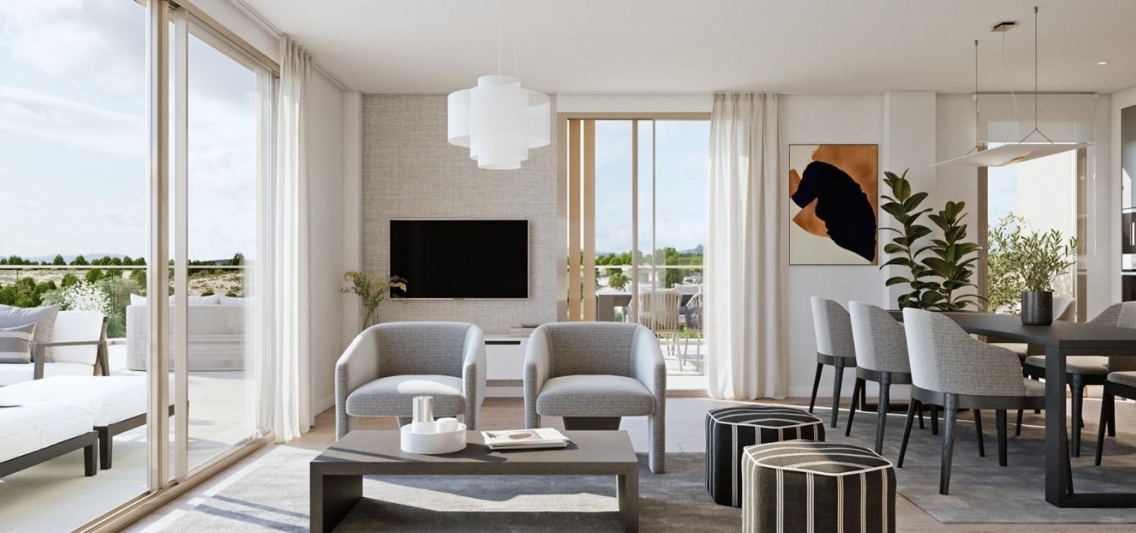 I ditt nya hem kommer du att njuta av rymliga trädgårdar, sportområden och spektakulära pooler.