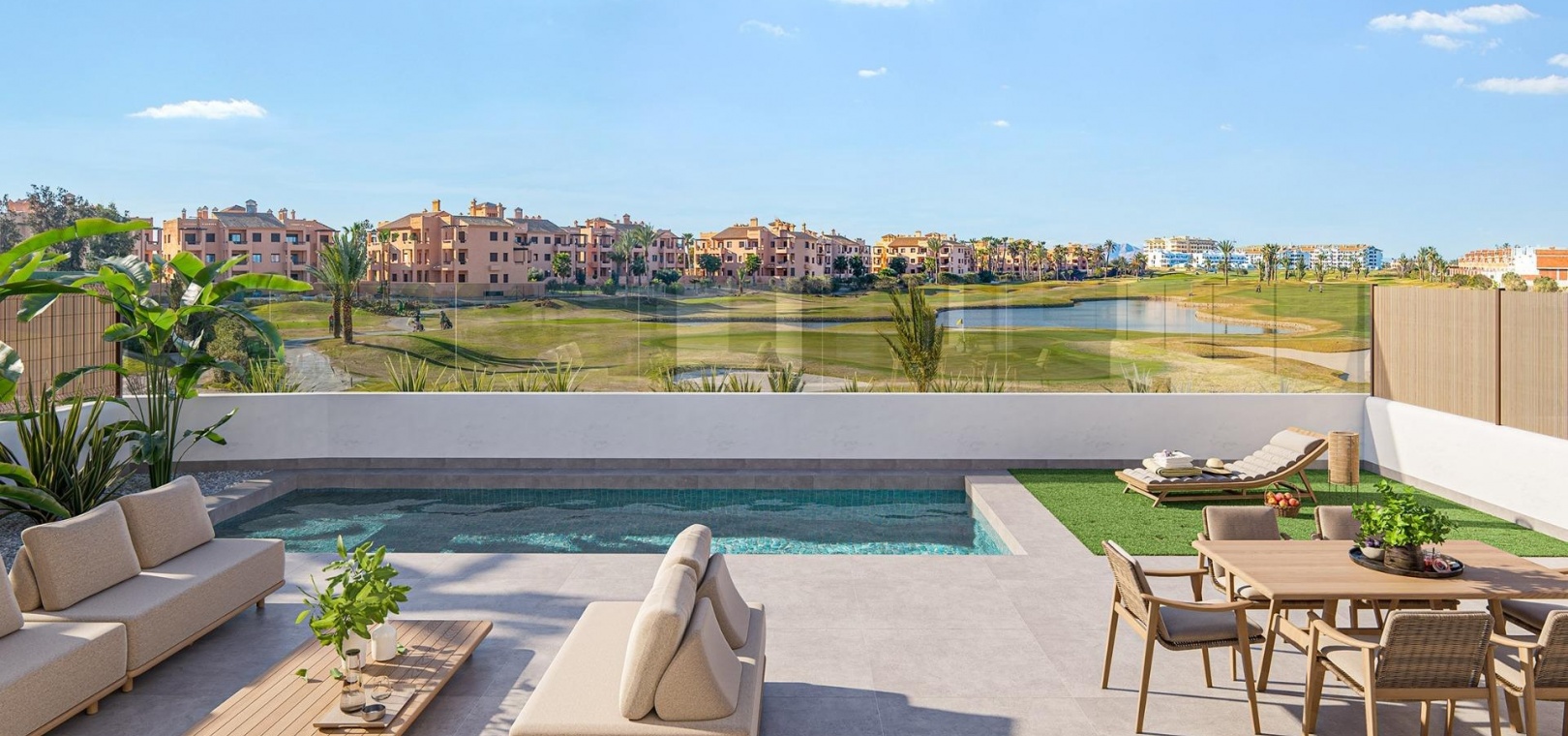 Bostadsområdet omfattar 18 eleganta lägenheter och 7 exklusiva villor, alla utformade för att maximera utrymme, ljus och funktionalitet. Boende kommer att kunna njuta av en fantastisk utsikt över golfbanan och, från de övre våningarna, det glittrande vattnet i Mar Menor.