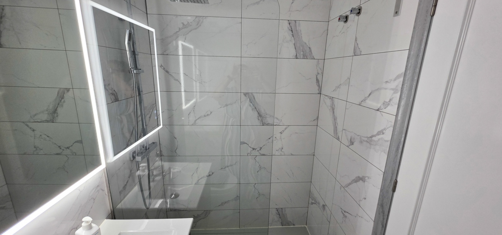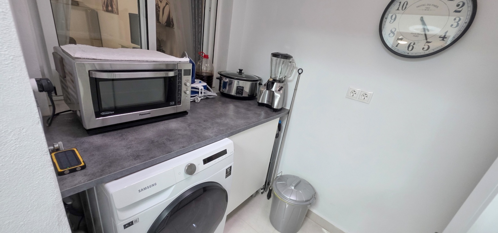 Inuti har lägenheten ett rymligt vardagsrum och kök i öppen planlösning, ett bakre skafferi/tvättstuga med nytt tak och Velux-fönster, två generösa dubbelrum och ett modernt familjebadrum med duschkabin. Luftkonditionering finns i vardagsrummet och bostaden har helt isolerade golv och väggar. Säkerhetskameror är också installerade. Fastigheten erbjuds delvis möblerad.