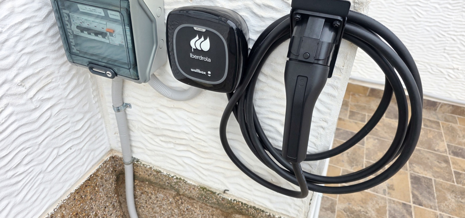 Utanför finns en stor kaklad yta med privat parkering, inklusive en laddningsstation för elbilar, och en inglasad terrass kan användas som matplats eller förlängning av bostadsytan. Ytterligare förvaring finns också tillgänglig.