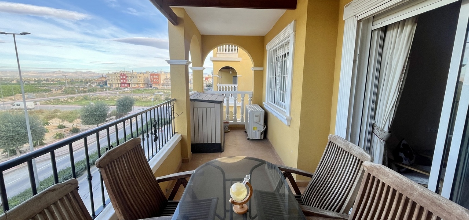 Fantastisk lägenhet i västerläge med hisnande utsikt. Denna fantastiska lägenhet i västerläge erbjuder verkligt spektakulär utsikt som sträcker sig över doftande apelsin- och citronlundar, och leder blicken mot det majestätiska Callosa-berget och den charmiga Ermita-kyrkan. Perfekt belägen för att fånga varje solnedgång, erbjuder den rymliga privata balkongen en plats på första parkett till naturens kvällsshow - en idealisk plats för avkoppling eller underhållning. Fastigheten ligger i ett vackert underhållet, gated community och har utmärkta gemensamma bekvämligheter inklusive hiss, en glittrande pool och oklanderliga gemensamma utrymmen. Lägenheten har också en underjordisk, tilldelad parkeringsplats för extra bekvämlighet och säkerhet. Inuti är lägenheten ljus och luftig, med bekväma vardagsrum och stora fönster som maximerar panoramautsikten. Läget är utmärkt - precis tvärs över gatan från det lokala sportcentret och inom bekvämt gångavstånd till butiker, restauranger och andra bekvämligheter. La Finca Golf Resort ligger bara 5 minuter bort, den vackra kusten bara 15 minuter med bil, och Alicantes flygplats ligger en enkel 35-minuters bilresa bort. Oavsett om du letar efter ett permanent hem, en semesterbostad eller en uthyrningsinvestering, är detta en fastighet som kombinerar komfort, bekvämlighet och fängslande landskap.