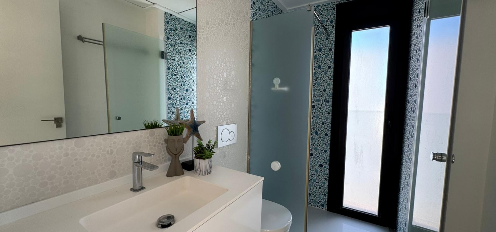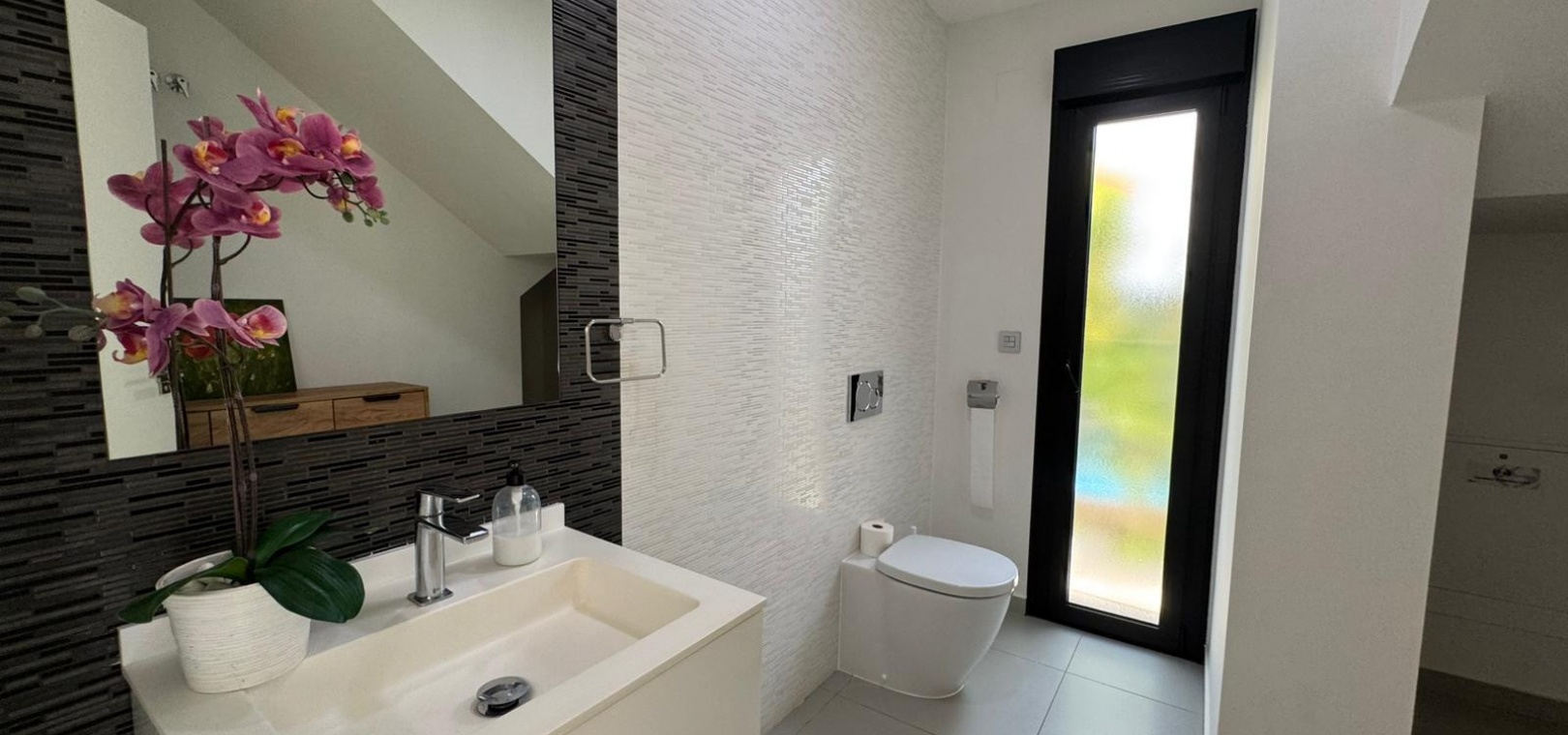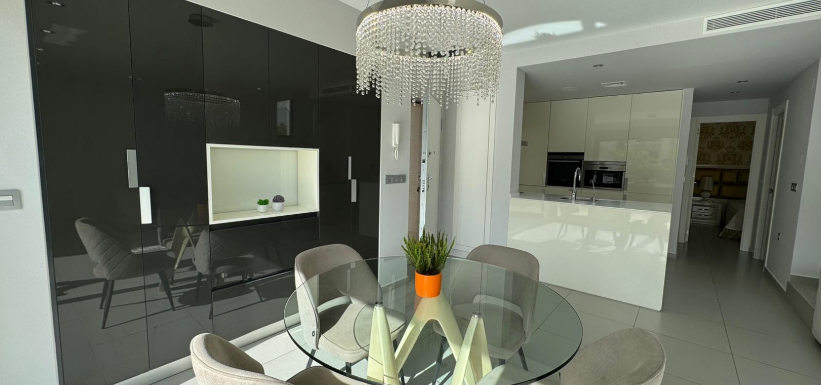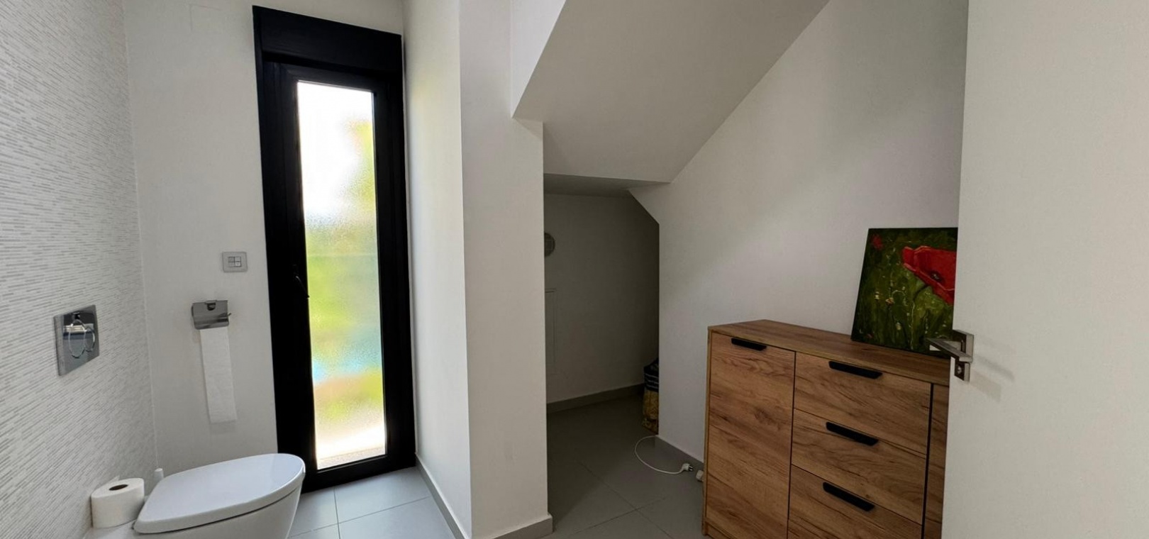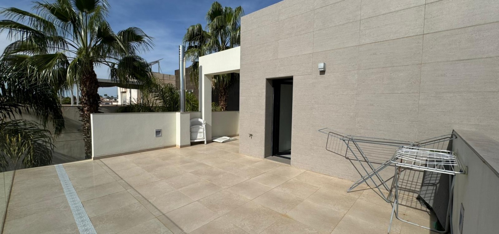 Vi presenterar denna magnifika fristående villa i modern stil, belägen i ett lugnt och väl anslutet bostadsområde, perfekt för dem som söker komfort, avskildhet och livskvalitet. Fastigheten byggdes 2014 och kombinerar modern design med högkvalitativa material och en planlösning utformad för att erbjuda maximal komfort i varje rum. Med en byggd yta på 125 m² på en privat tomt på 300 m² är fastigheten fördelad på två våningar plus ett stort takterrass, perfekt för att njuta av solen och den fria utsikten året runt. På bottenvåningen finns ett rymligt vardagsrum/matsal med öppen planlösning anslutet till ett fullt utrustat modernt kök, samt ett sovrum med klädkammare, ett komplett badrum och en gästtoalett, alla med direkt tillgång till trädgården och poolområdet. På övervåningen finns ytterligare två sovrum av utmärkt storlek och ett komplett badrum, alla med rikligt med naturligt ljus och tillgång till en privat terrass som inbjuder dig att koppla av. Från denna våning leder en utvändig trappa till solariet, ett exklusivt utrymme perfekt för att sola eller helt enkelt njuta av lugnet och medelhavsklimatet. Fastigheten har golvvärme i hela huset, central luftkonditionering och säljs fullt möblerad, redo att flyttas in. Utomhus kombinerar den privata trädgården relaxområden med en spektakulär privat pool, vilket skapar den perfekta miljön för att njuta av stunder utomhus i fullständig avskildhet. Dessutom finns det en parkeringsplats på tomten, vilket garanterar bekvämlighet och säkerhet. Dess moderna arkitektoniska stil, tillsammans med högkvalitativa ytbehandlingar och rymliga interiörer, gör denna fastighet till ett idealiskt val för både permanentboende och fritidshus. Kort sagt, denna villa representerar essensen av modern medelhavskomfort: rymlighet, design, ljus och ett utmärkt läge i en lugn och väl ansluten miljö. Ett perfekt hem för dem som söker att njuta av solen, avskildheten och lyxen när den är som bäst.