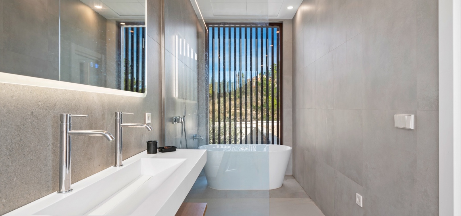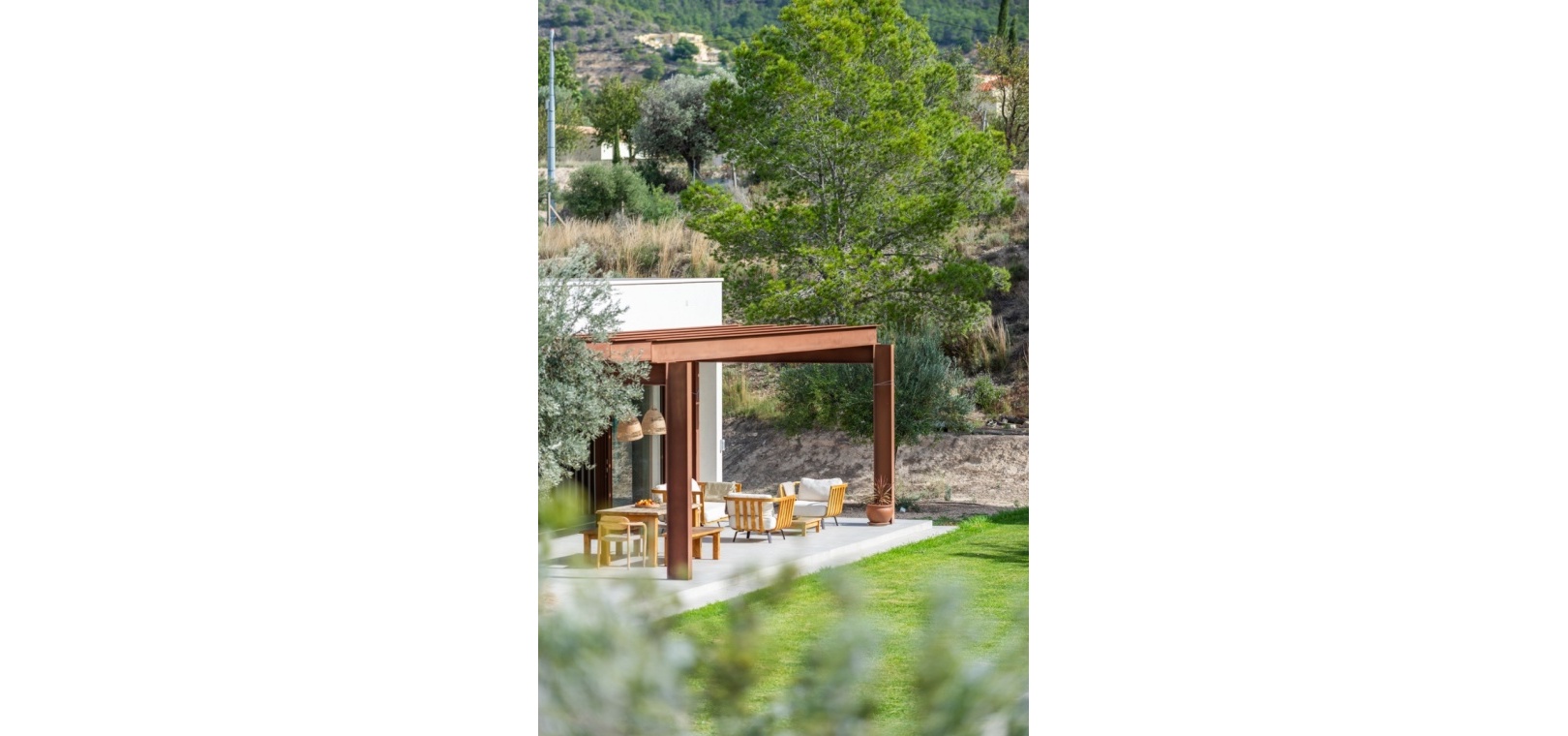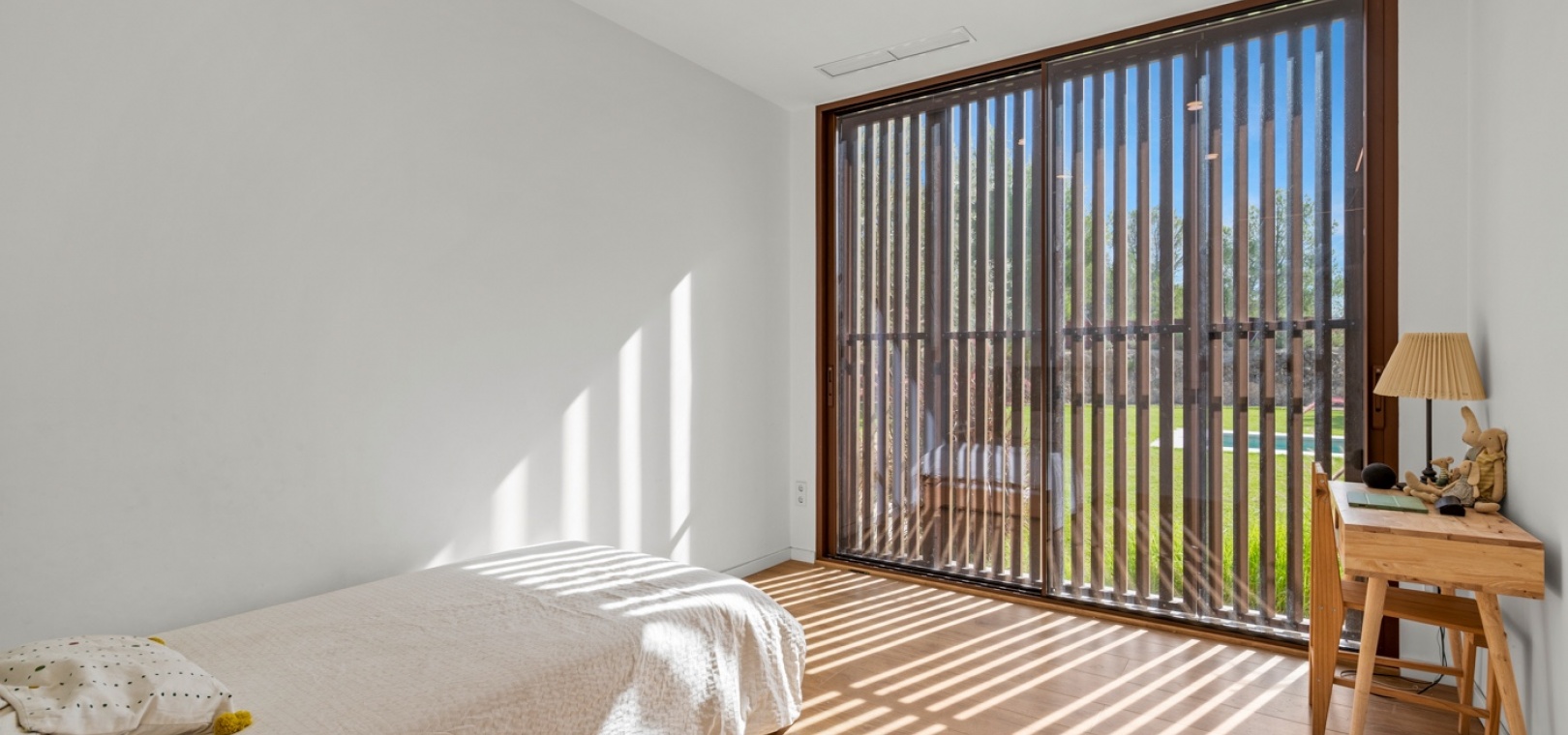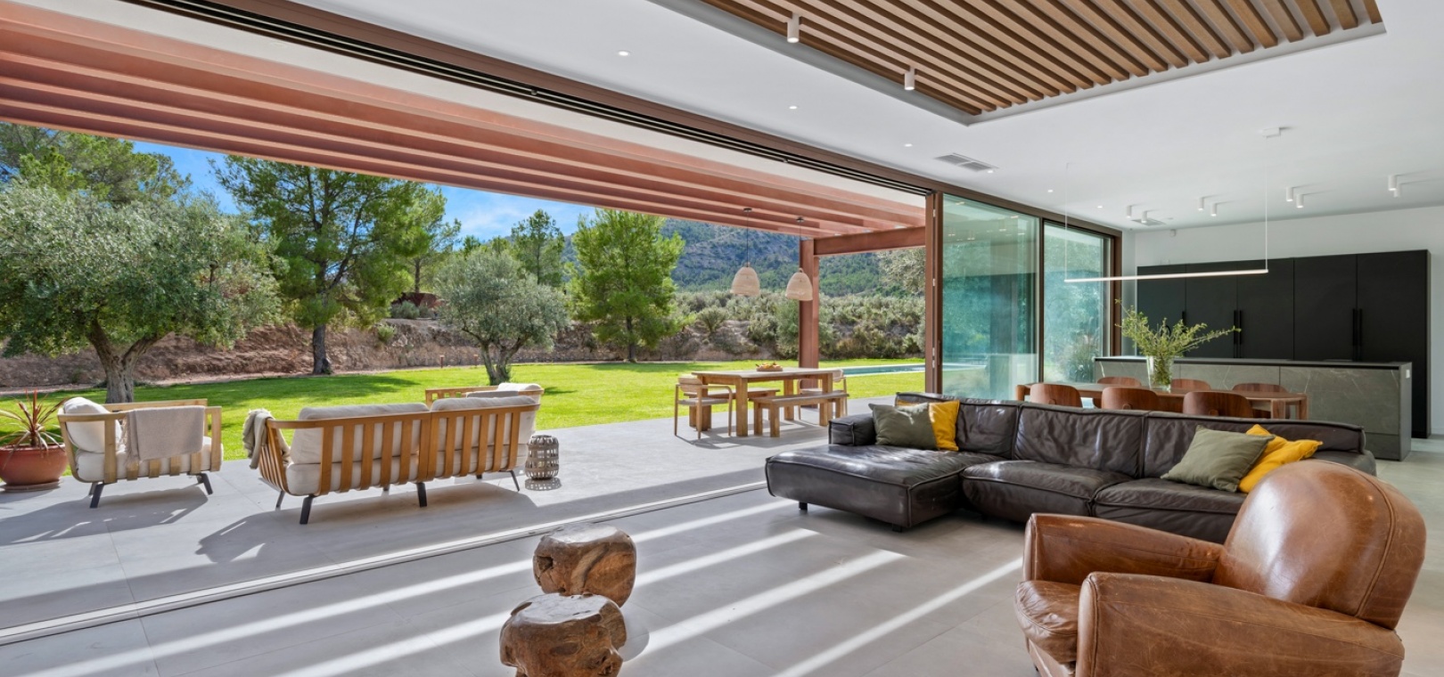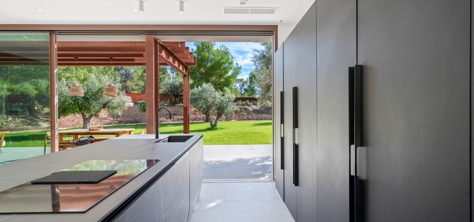 Det finns platser du inte hittar på fastighetswebbplatser. Du drömmer om dem. Du känner dem. Du andas in dem innan du ens anländer. Detta passivhus i Finestrat är en av dessa platser. Det är inte bara modern arkitektur – det är ett sätt att leva: hållbart, framåttänkande, fridfullt. 230 m² byggt enligt högsta biopassiva och energieffektiva standarder, som fångar varje solstråle, varje bris, varje droppe regn… Allt flyter i harmoni med 10 000 m² natur, olivträd och fruktodlingar runt omkring. Här börjar inte utomhuslivet vid ytterdörren – det börjar långt innan dess. Det huvudsakliga utomhusområdet har en stor trädgård, designerpool och en vacker terrass där frisk luft möter långa middagar med de människor du älskar. Inuti saktar livet ner. Ett rymligt vardagsrum och matplats inbjuder till långa samtal, skratt eller helt enkelt nöjet att titta på naturen genom de stora fönstren. Bredvid den dolda TV:n och den öppna spisen som väntar på vintern avslöjar skjutdörrar ett utrymme som är redo att bli din läshörna, hemmakontor, relaxavdelning eller kreativa reträtt. I hemmets hjärta hittar du köket. Noggrant utformat för att dela måltider, fira med familj och vänner och skapa oförglömliga stunder. Modernt, funktionellt, utrustat med Liebherr-apparater – den typen av plats som får dig att vilja stanna lite längre. Härifrån når du hallen som leder till husets mest privata område: huvudsviten. Ett rum där lugn och tystnad råder. Ett stort fönster för att räkna stjärnorna på natten och välkomna soluppgången på morgonen. En rymlig klädkammare och eget badrum med ett designerbadkar för att skölja bort dagen… eller en lång dusch medan du blickar ut över den majestätiska Puig Campana. I motsatta flygeln finns ytterligare tre sovrum, med inbyggda garderober och direkt tillgång till trädgården och poolen. Ett komplett gästbadrum, ett huvudbadrum och en tvättstuga. Varje detalj noggrant genomtänkt. Inget lämnas åt slumpen. Detta hem skriker inte lyx – det viskar det. För här handlar livet inte om att imponera på någon. Det handlar om att känna. Om att känna doften av den fuktiga jorden mellan olivträden medan man smuttar på sin första kaffe och kommer ihåg att frid inte kommer av att dricka mer ... Frid är att veta var man verkligen vill bo.