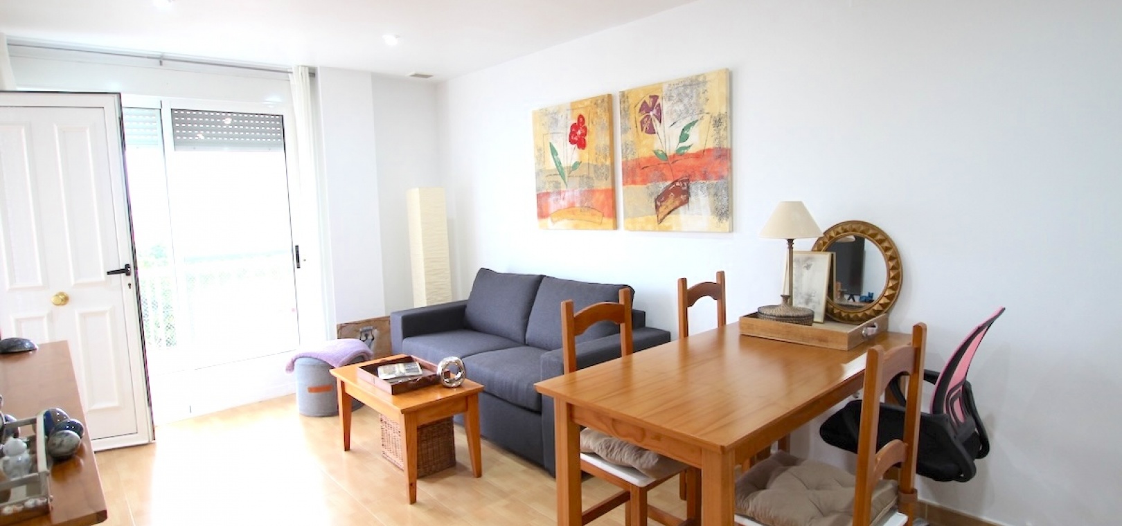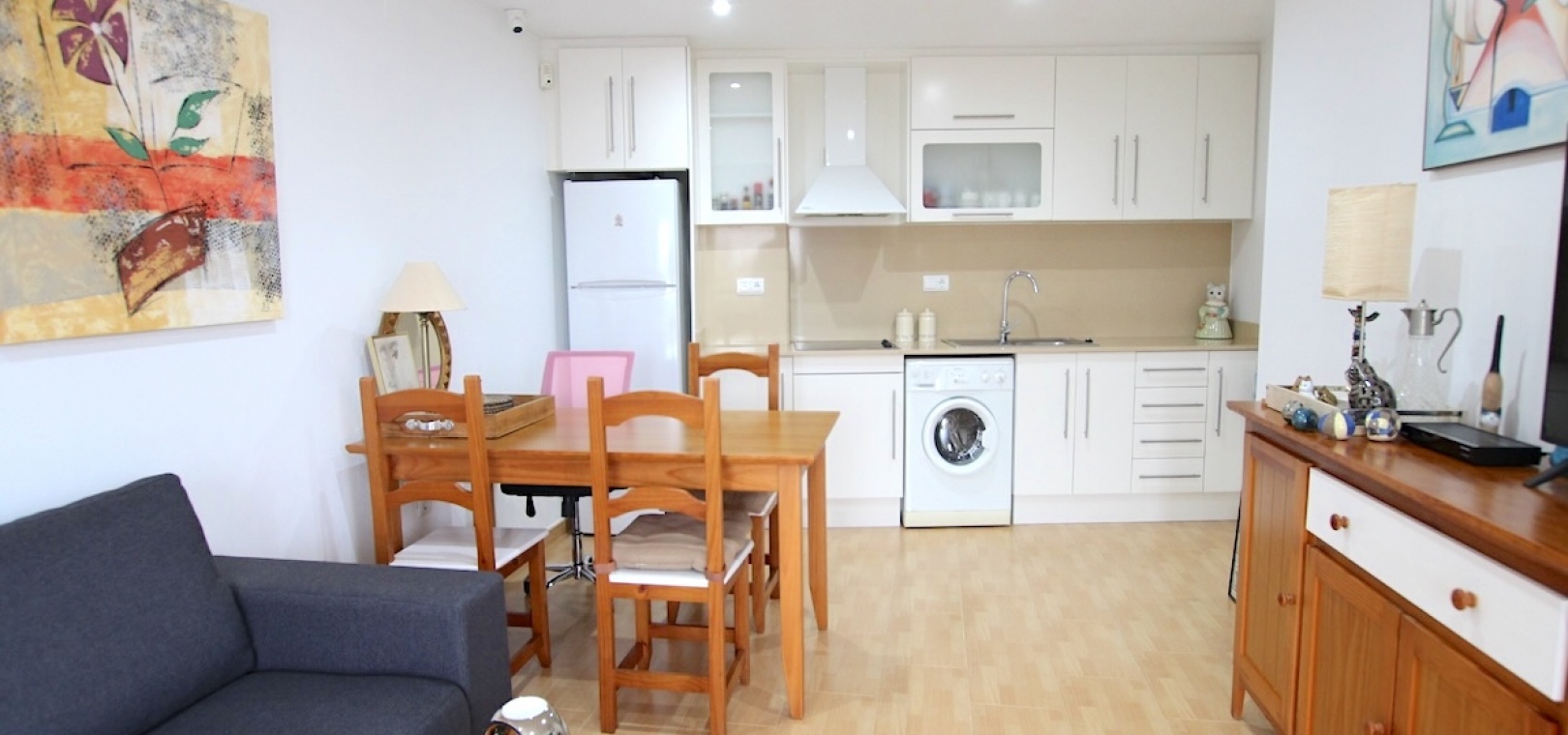 Upptäck en vackert presenterad lägenhet på bottenvåningen som erbjuder den perfekta blandningen av komfort, bekvämlighet och medelhavscharm.