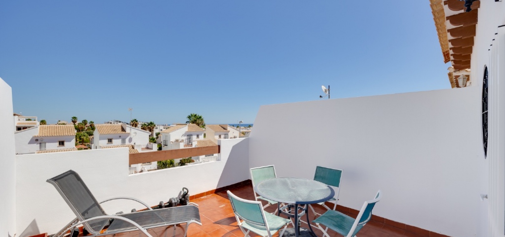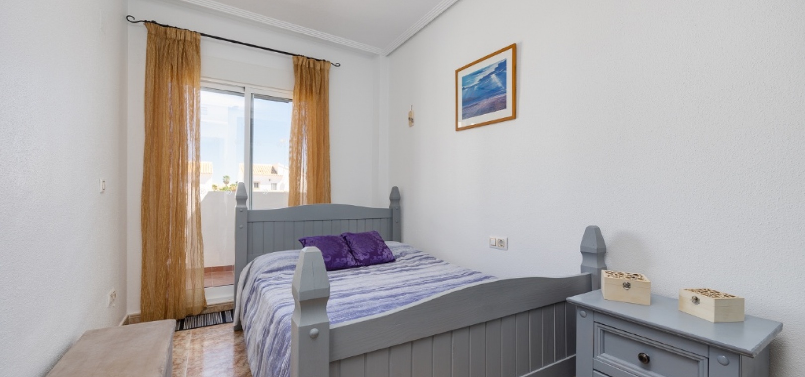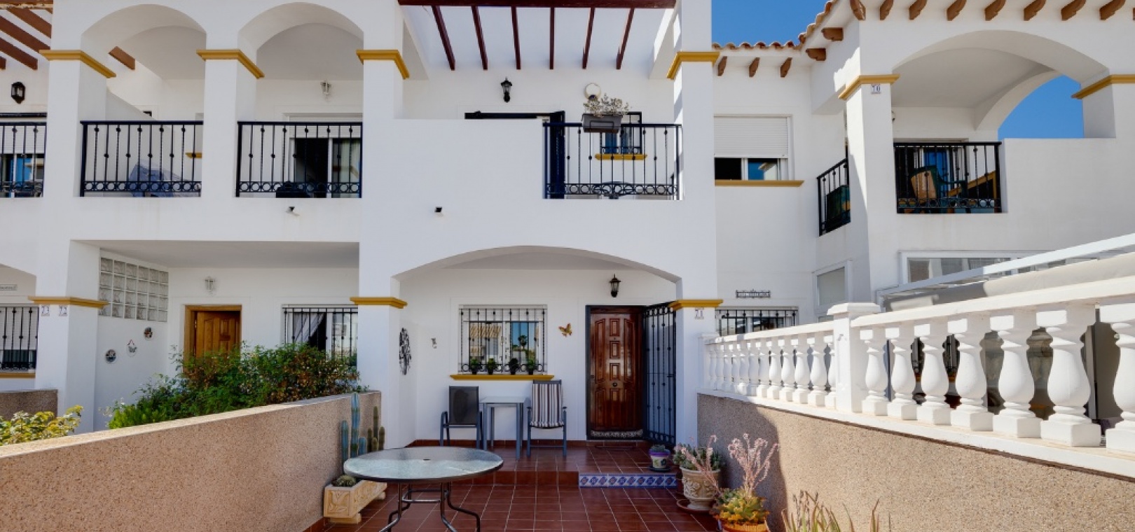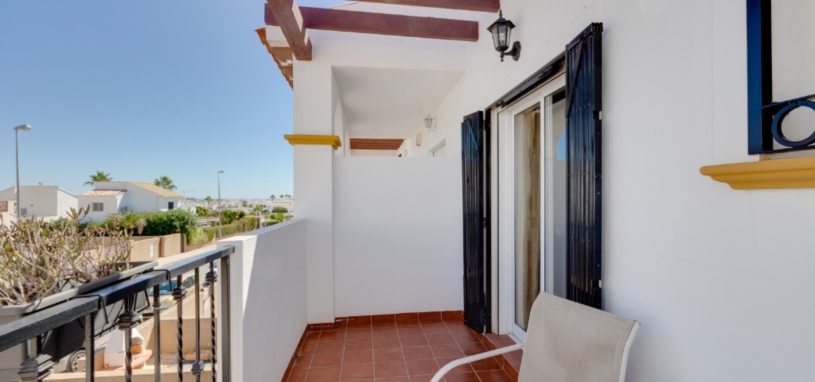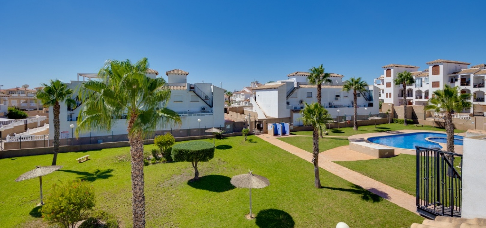 Fastighet till salu i det gated community Cinuelica R14 med uteplats, terrasser och solarium, med hisnande havsutsikt i Punta Prima inom gångavstånd till stranden och lokala bekvämligheter. Radhuset har 2 sovrum, ett badrum och en gästtoalett, separat kök med tvättstuga, vardagsrum med matplats, två terrasser och även privat takterrass. Det finns ett mycket trevligt gemensamt poolområde. Huset säljs delvis möblerat och med underjordisk parkering. Punta Prima är en typisk spansk turistort vid havet, belägen på södra Costa Blanca och mindre än 30 minuter från två internationella flygplatser i Murcias "Corvera" och Alicante. Stränderna, som är några av de renaste i området och har tilldelats Blå Flagg-status, kompletteras av ett underbart utbud av butiker, kaféer, stormarknader, barer och restauranger. Punta Prima har ett medelhavsklimat med 320 soldagar om året.