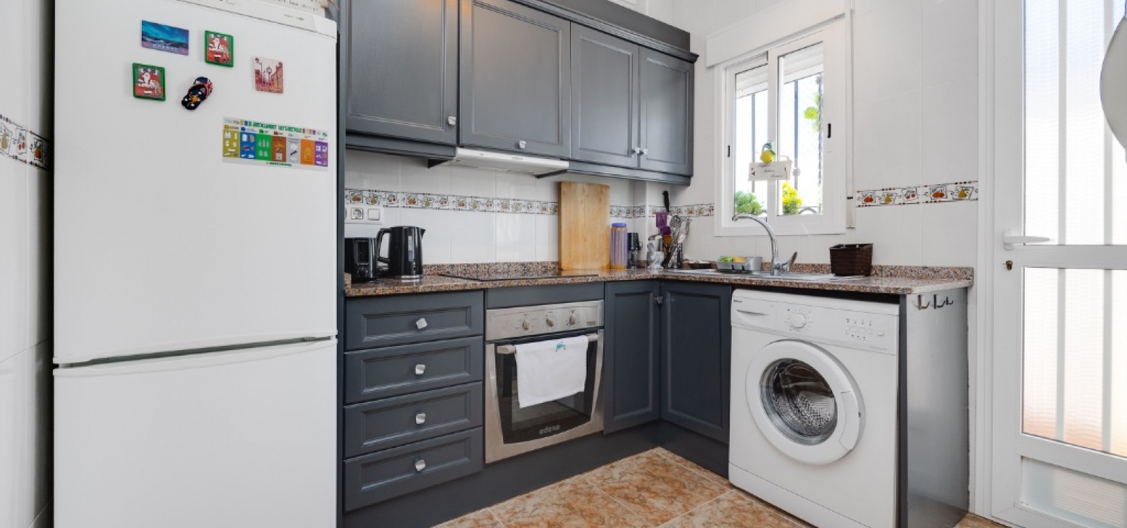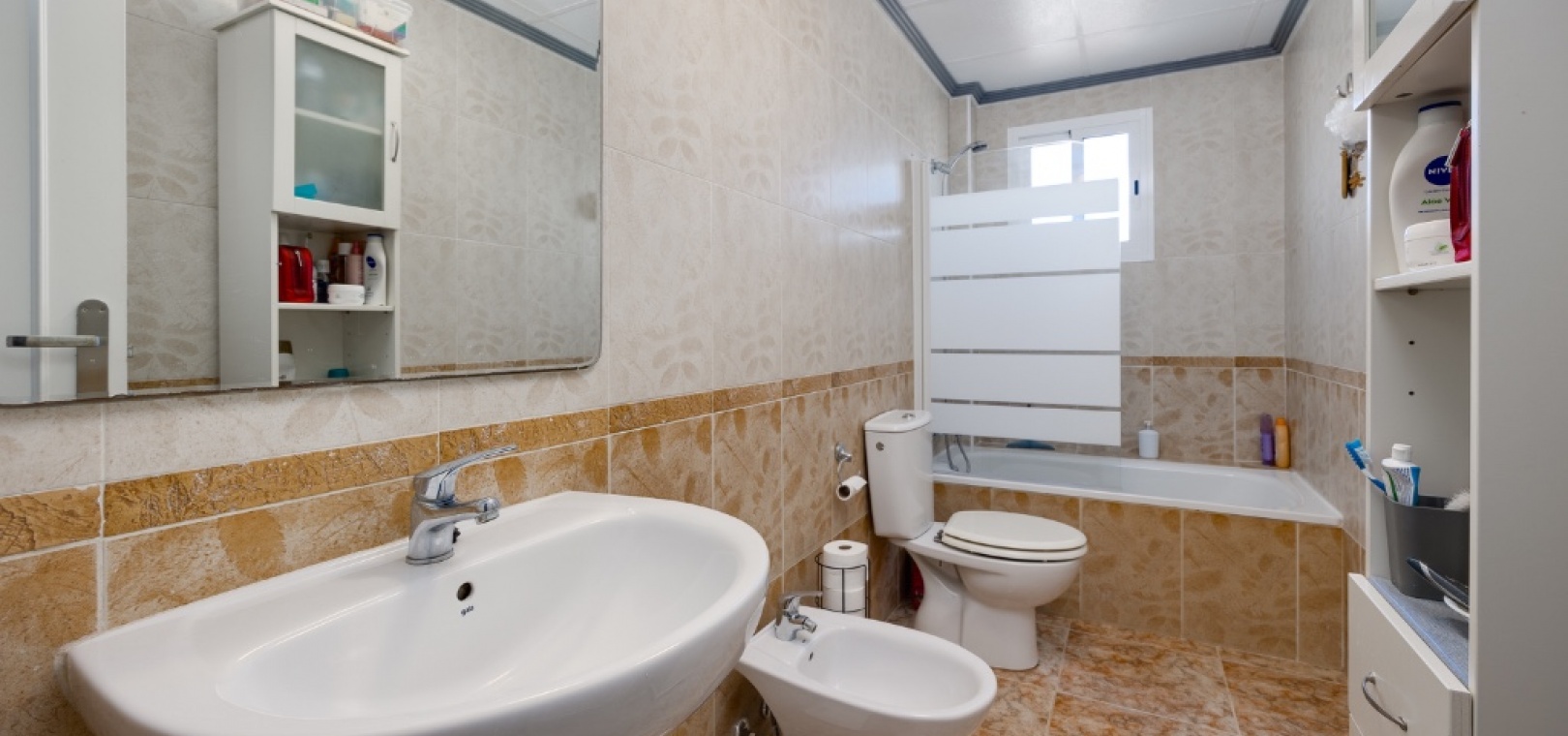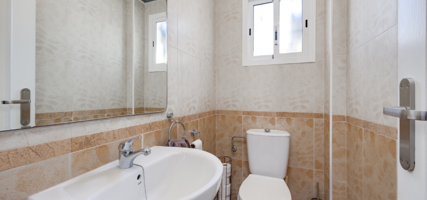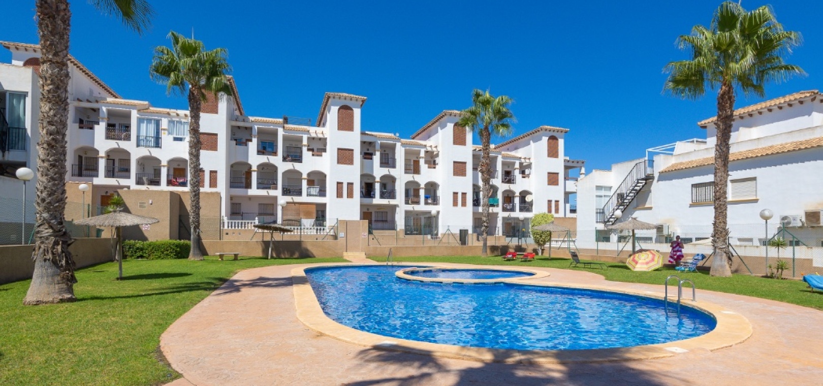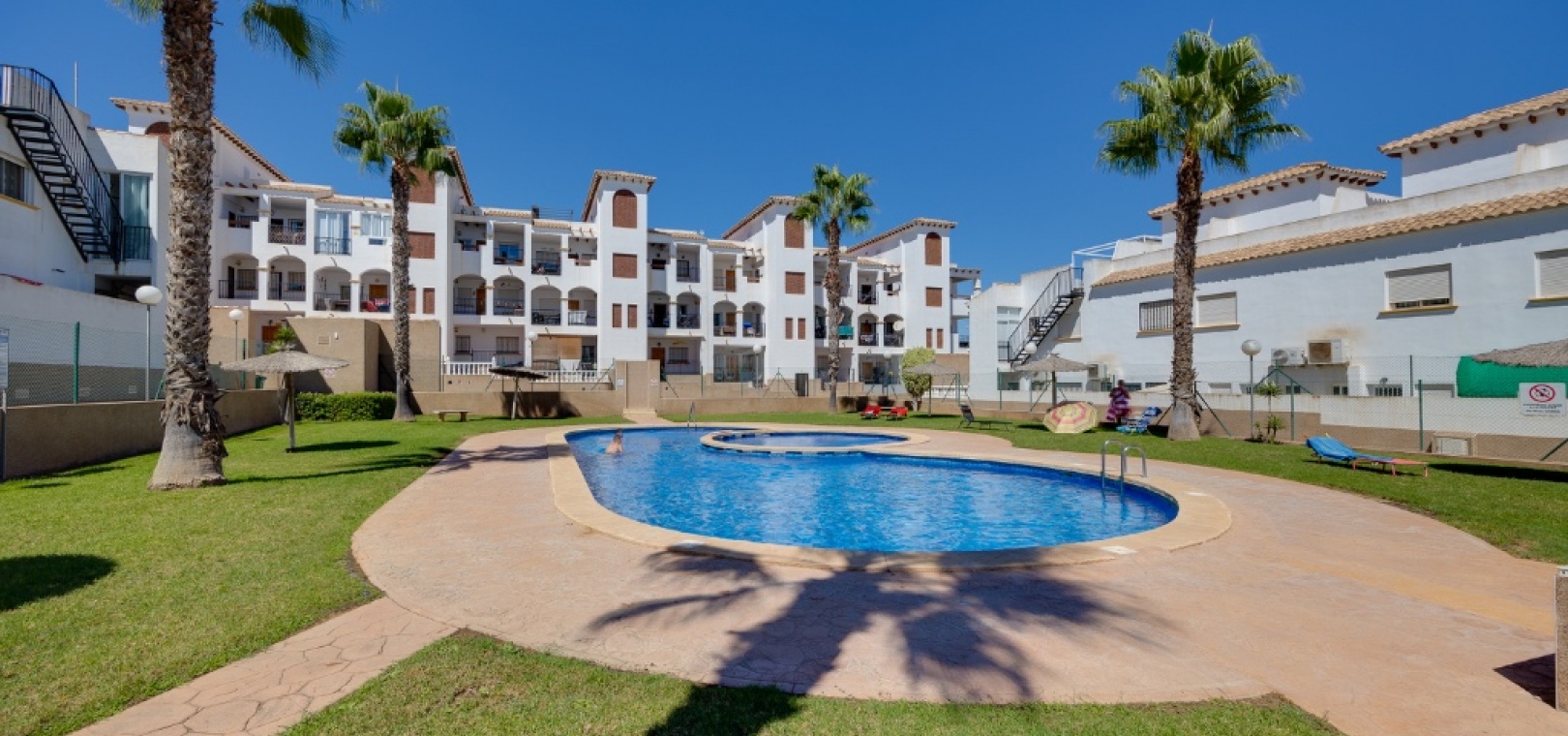 Fastighet till salu i det gated community Cinuelica R14 med uteplats, terrasser och solarium, med hisnande havsutsikt i Punta Prima inom gångavstånd till stranden och lokala bekvämligheter. Radhuset har 2 sovrum, ett badrum och en gästtoalett, separat kök med tvättstuga, vardagsrum med matplats, två terrasser och även privat takterrass. Det finns ett mycket trevligt gemensamt poolområde. Huset säljs delvis möblerat och med underjordisk parkering. Punta Prima är en typisk spansk turistort vid havet, belägen på södra Costa Blanca och mindre än 30 minuter från två internationella flygplatser i Murcias "Corvera" och Alicante. Stränderna, som är några av de renaste i området och har tilldelats Blå Flagg-status, kompletteras av ett underbart utbud av butiker, kaféer, stormarknader, barer och restauranger. Punta Prima har ett medelhavsklimat med 320 soldagar om året.