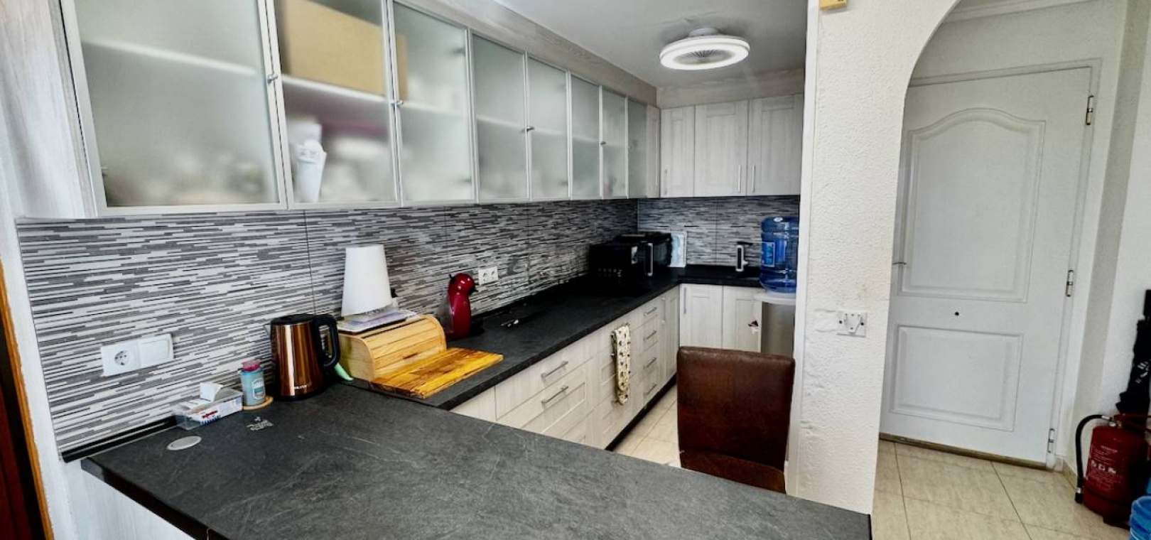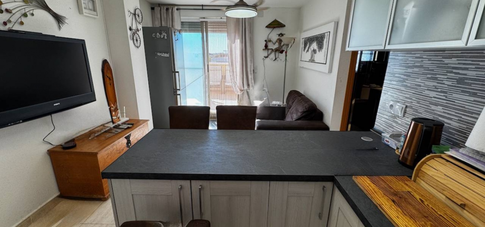 Ljus lägenhet på översta våningen i söderläge med panoramautsikt och privat terrass Denna vackert presenterade lägenhet med 2 sovrum och 1 badrum på översta våningen erbjuder den perfekta kombinationen av modern komfort, bekvämlighet och medelhavscharm. Belägen i ett säkert, gated komplex i en by, bara några steg från lokala bekvämligheter, 10 minuter från stranden och 30 minuter från flygplatsen – ett idealiskt hem eller semesterboende. Med 47 m² intern boyta och en generös privat terrass på 20 m², har denna lägenhet i söderläge rikligt med naturligt ljus och panoramautsikt över omgivningarna. Vardagsrummet och matsalen i öppen planlösning flyter sömlöst in i det fullt utrustade öppna köket, som inkluderar alla vitvaror och gott om förvaring. Båda sovrummen har inbyggda garderober och takfläktar, medan lägenheten också har en tvättstuga, hiss och gatuparkering. Fastigheten erbjuds i utmärkt skick och levereras möblerad (kan förhandlas) – Inflyttningsklar. Ytterligare funktioner ✅ Privat terrass i söderläge med panoramautsikt ✅ Ljust vardagsrum och matplats i öppen planlösning ✅ Fullt utrustat kök med vitvaror ✅ Två sovrum med inbyggda garderober ✅ Grindbevakat område med säker åtkomst ✅ Hiss ✅ Grovkök ✅ Gatuparkering ✅ Nära butiker, skolor och bekvämligheter ✅ Utmärkt skick i alla utrymmen Perfekt beläget inom gångavstånd till alla bekvämligheter och en kort bilresa till stranden och golfbanor, erbjuder denna lägenhet exceptionellt värde som semesterbostad, uthyrningsinvestering eller permanent bostad under Medelhavssolen.
