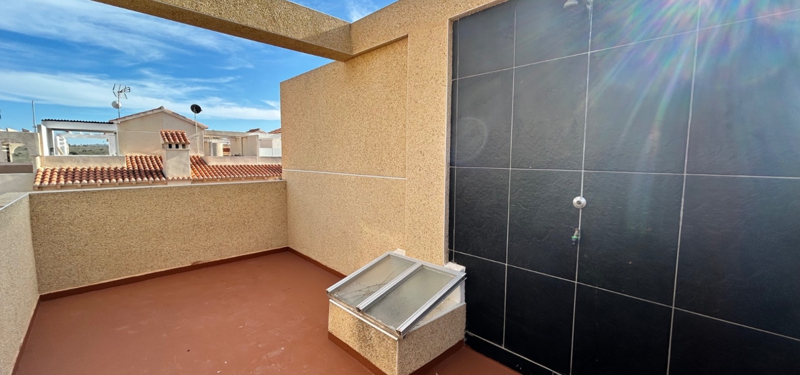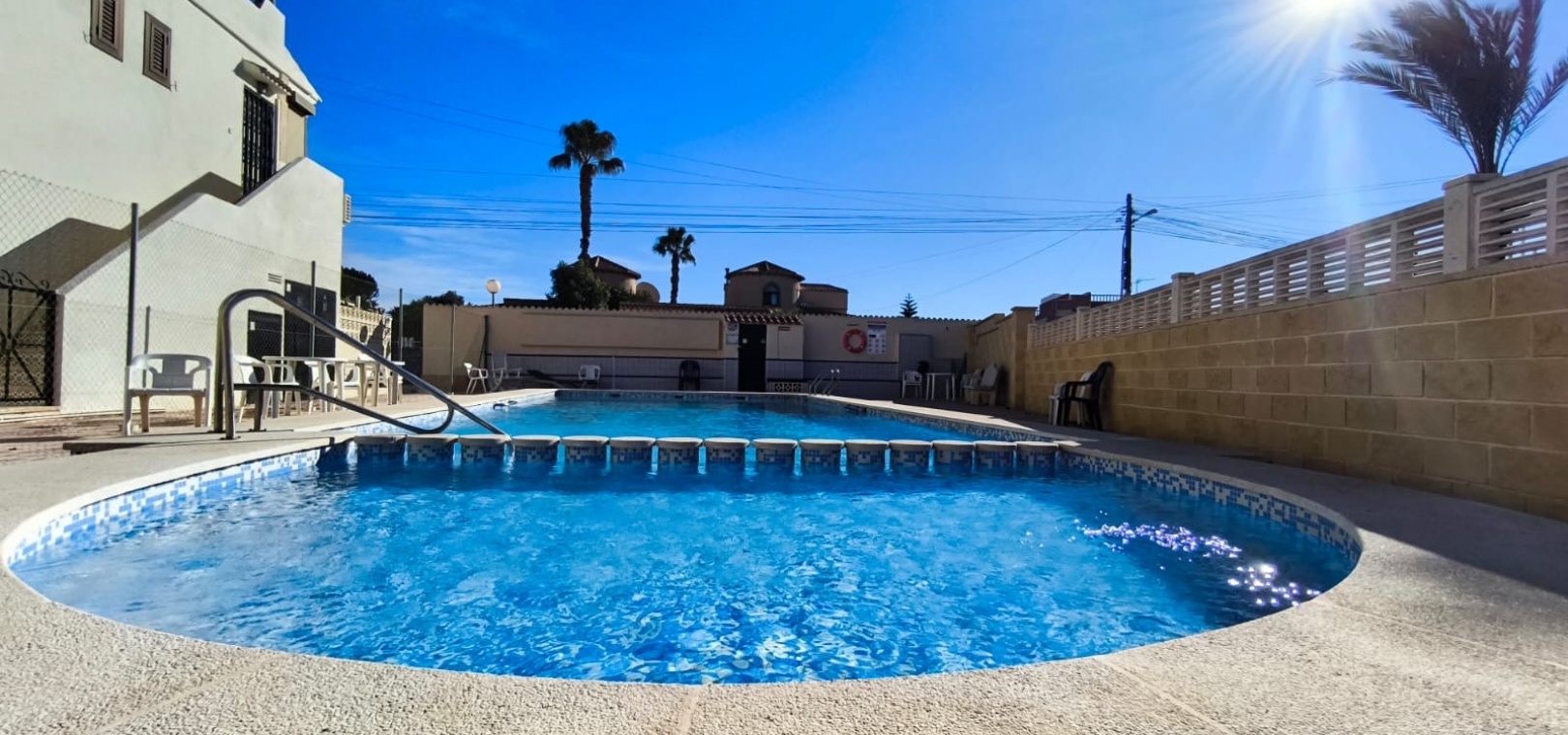 Kliv in i detta charmiga radhus med 2 sovrum och 1 badrum i det etablerade och välkomnande området El Chaparral, bara en kort bilresa från Torreviejas vackra stränder och alla nödvändiga bekvämligheter. Detta hem erbjuder 90 m² ljus boyta med en funktionell planlösning – perfekt för familjer som söker komfort och vardaglig bekvämlighet, eller investerare som söker en stark hyresefterfrågan i ett varmt semestermål året runt. Hjärtat i fastigheten är dess välkomnande vardagsrum och separata kök, perfekt lämpat för ett avslappnat familjeliv. Gå ut till den soliga balkongen på 10 m², där du kan njuta av ditt morgonkaffe eller kvällsmåltider under den spanska himlen. De boende drar också nytta av tillgång till en gemensam pool, vilket skapar en genuin medelhavsatmosfär och ett fantastiskt socialt utrymme för både barn och vuxna. Lägets höjdpunkter:???? Bara 3 km från kusten och gyllene sandstränder – perfekt för dagar vid havet. ????️ Bara 1 km från butiker, kaféer och lokala tjänster – perfekt för vardagsliv med familjen. ✈️ Cirka 50 km från flygplatsen, med goda vägförbindelser för regionala resor. Varför köpare älskar El Chaparral:✔ Ett lugnt, etablerat område med en vänlig internationell gemenskap – perfekt för både familjer och utlandsboende.✔ Nära naturparker, cykelvägar, lokala restauranger och barer – klassiskt Costa Blanca-liv med en avslappnad takt.✔ Stark semesterbostadsattraktion tack vare solsken, stränder och bekvämligheter inom räckhåll. Oavsett om du föreställer dig ditt nästa familjehem vid Medelhavet eller en elegant fastighet att lägga till i din portfölj, uppfyller detta radhus alla krav.
