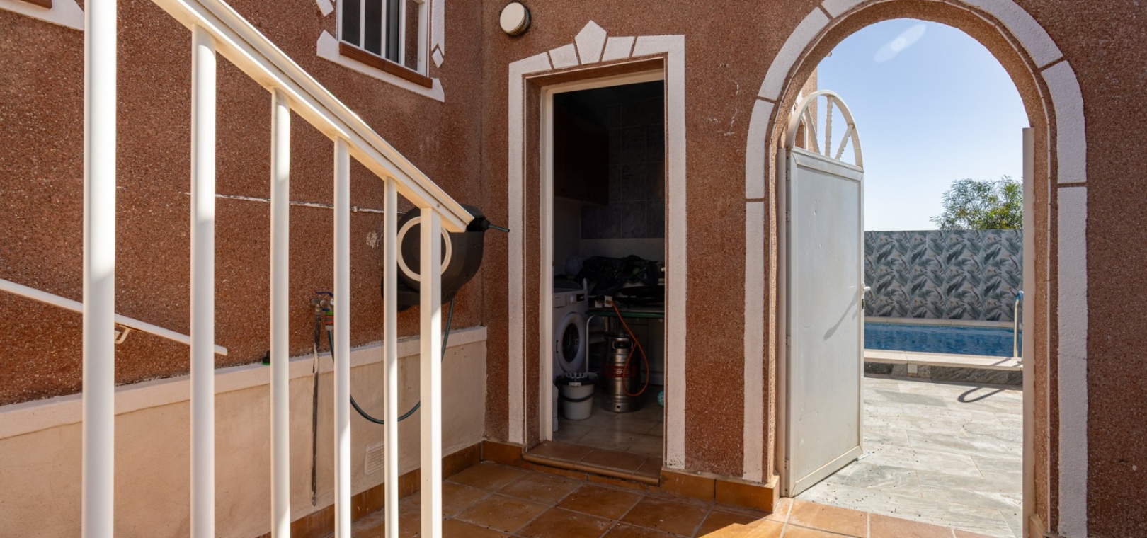 Upptäck denna charmiga fristående villa, belägen i ett lugnt och trevligt bostadsområde i Torrevieja, perfekt för dig som söker avskildhet, komfort och hög livskvalitet nära havet. Fastigheten ligger på en rymlig tomt på 300 m² och erbjuder gott om utomhusutrymme för att njuta av medelhavsklimatet året runt. Fastigheten omfattar 60 m² boyta, praktiskt och funktionellt planerad. Inuti hittar du tre ljusa sovrum, två med inbyggda garderober, och två kompletta badrum, perfekt för en familj eller för att underhålla gäster. Det separata köket är fullt utrustat med vitvaror och har ett grovkök i direkt anslutning till köket för extra bekvämlighet och förvaring. Villan är i gott skick och säljs möblerad, redo att inflyttas. Vardagsrummet är utrustat med luftkonditionering, vilket garanterar komfort under alla årstider. Utomhus har fastigheten ett vackert och praktiskt rekreationsområde med en privat pool, perfekt för avkoppling och att njuta av tiden med familj och vänner. Det inkluderar också en helkaklad terrass, perfekt för måltider utomhus, ett förråd/tvättstuga och en privat parkeringsplats. Det västerläge läget garanterar vackra solnedgångar och rikligt naturligt ljus på eftermiddagen. Läge och avstånd: Strand: 15 minuter Fritidsområden, restauranger och butiker: 5 minuter Golfbana: 10 minuter Flygplats: 40 minuter En idealisk fastighet som permanent bostad, semesterbostad eller investering, som kombinerar avskildhet, utomhusutrymme och ett utmärkt läge på Costa Blanca.