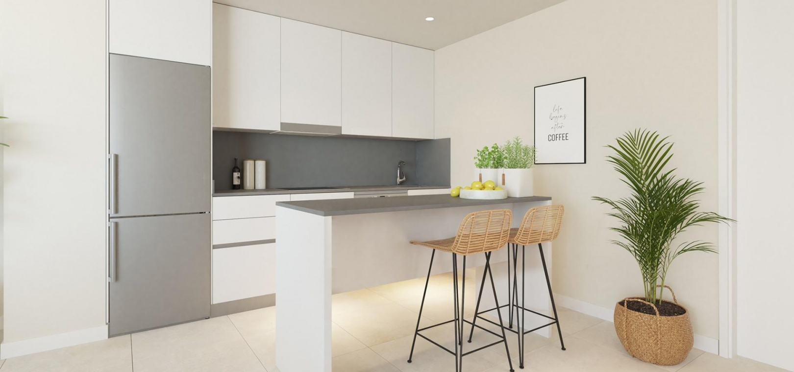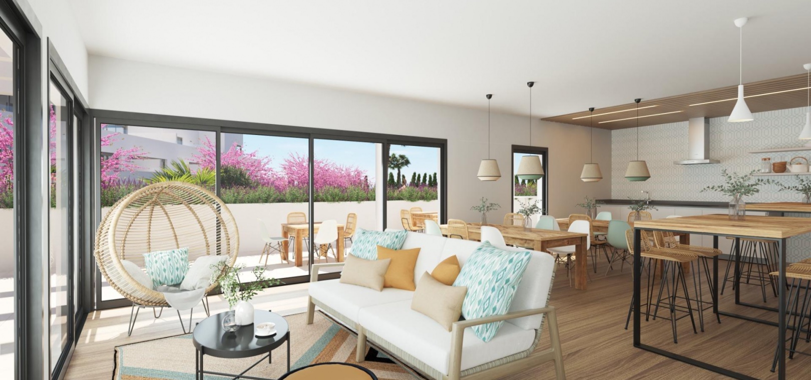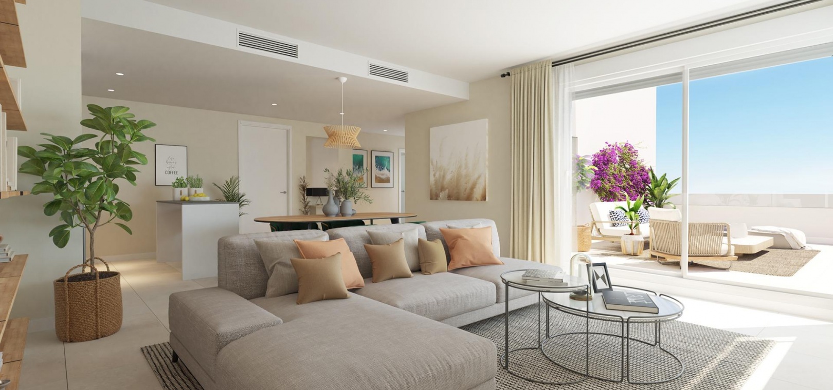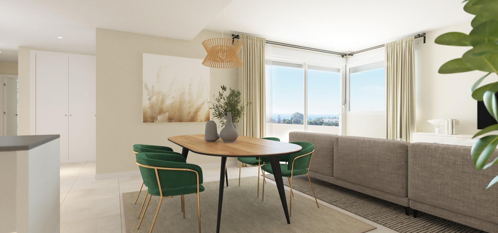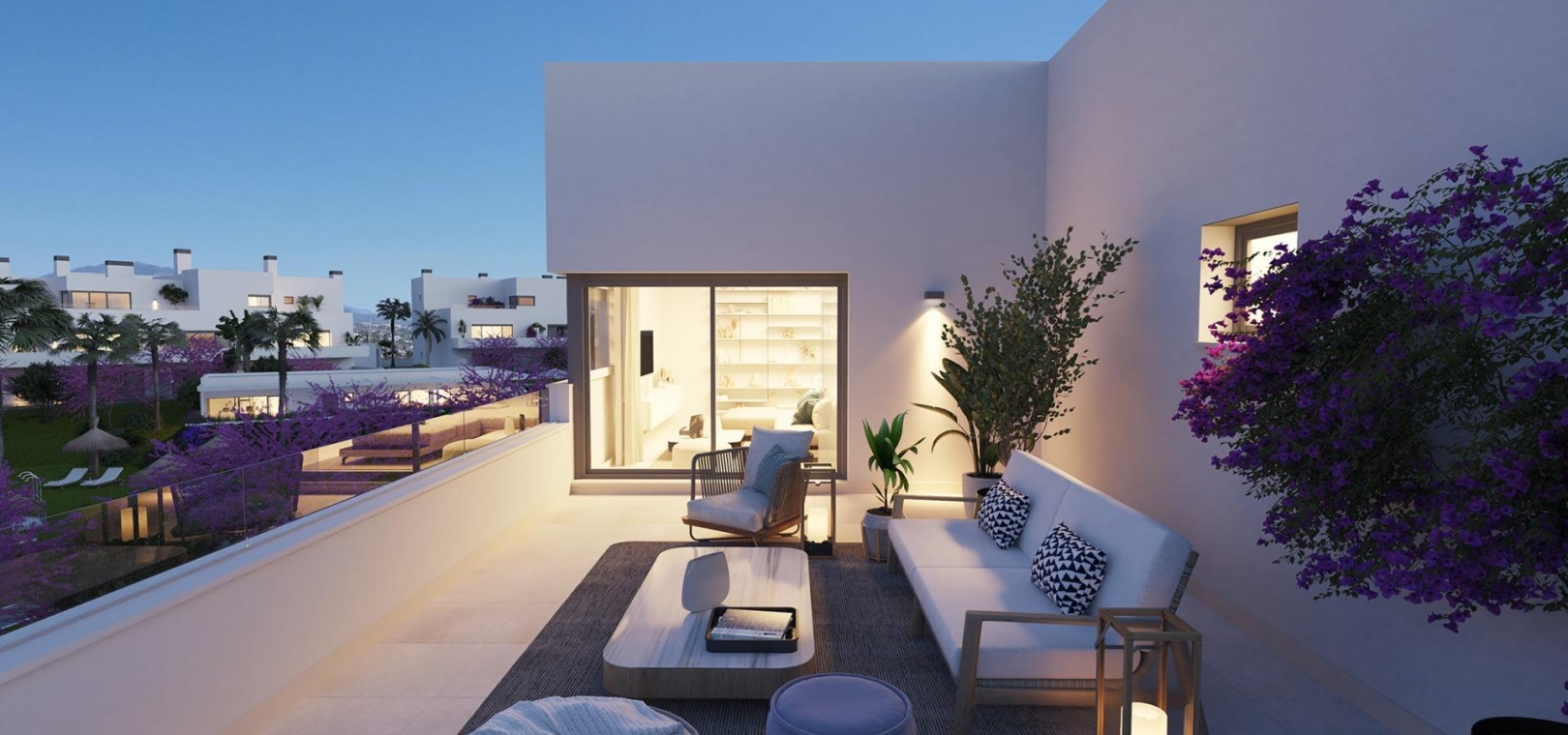 En elegant arkitektonisk design i kombination med öppna planlösningar och moderna bekvämligheter skapar ett av de mest attraktiva nybyggnadserbjudandena på marknaden idag, ingen sten har lämnats orörd i utformningen av detta bostadsområde för att skapa den perfekta oasen för det moderna livet. Några av de detaljer som man har tänkt på är ytbehandlingar av högsta kvalitet, rymliga interiörer och terrasser med utsikt över havet och bergen.