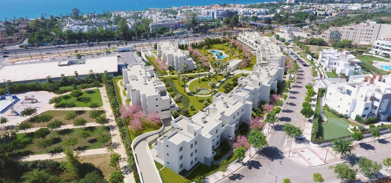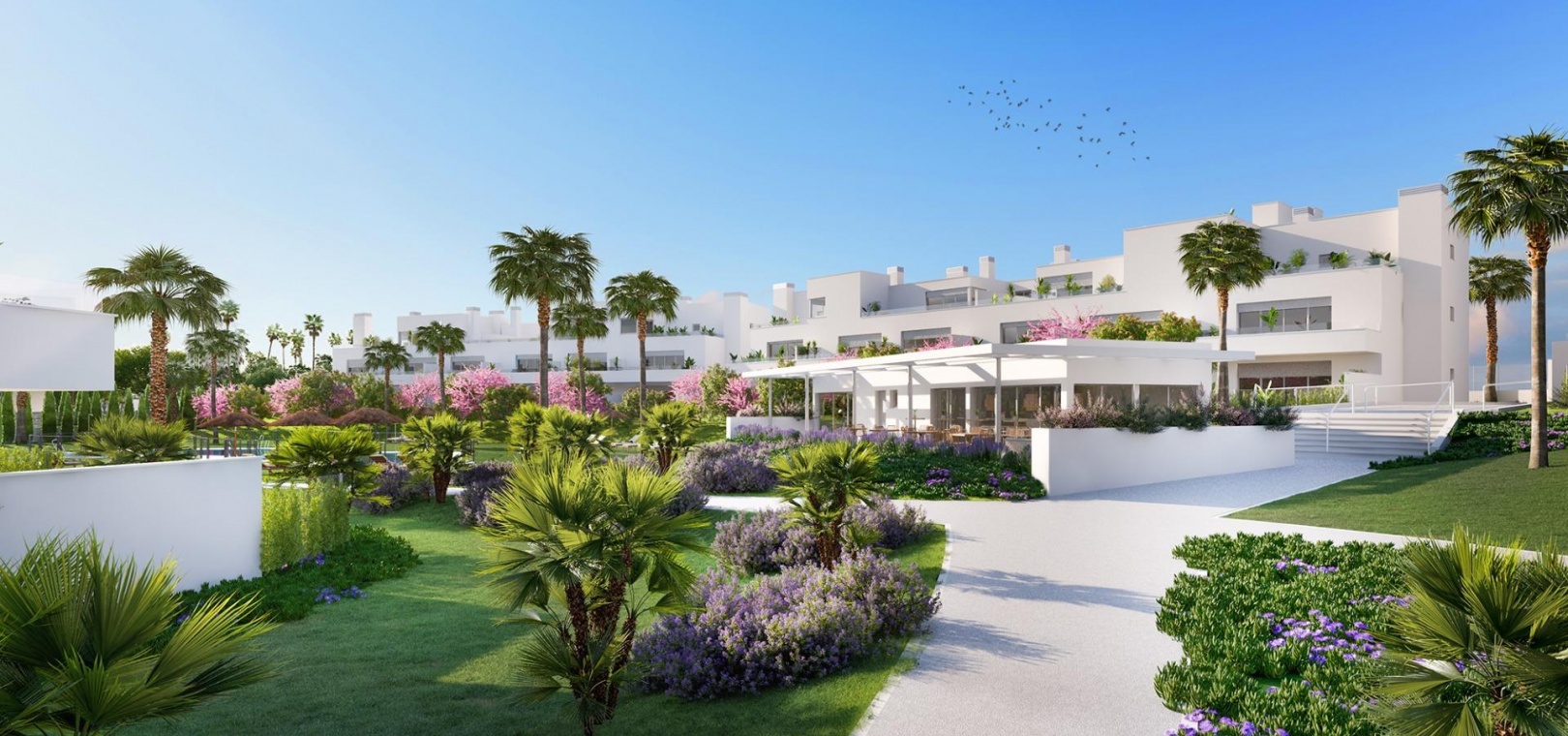 Nybyggt, elegant och modernt bostadsområde med 95 lägenheter och takvåningar, beläget i ett bekvämt och centralt läge på New Golden Mile. Oavsett om du letar efter det perfekta semesterhemmet eller kanske en ny permanent bostad kommer du att bli bortskämd med det stora utbudet av bekvämligheter precis utanför dörren. New Golden Mile erbjuder allt från golfbanor och stränder till skolor, underhållning, shopping och restauranger.