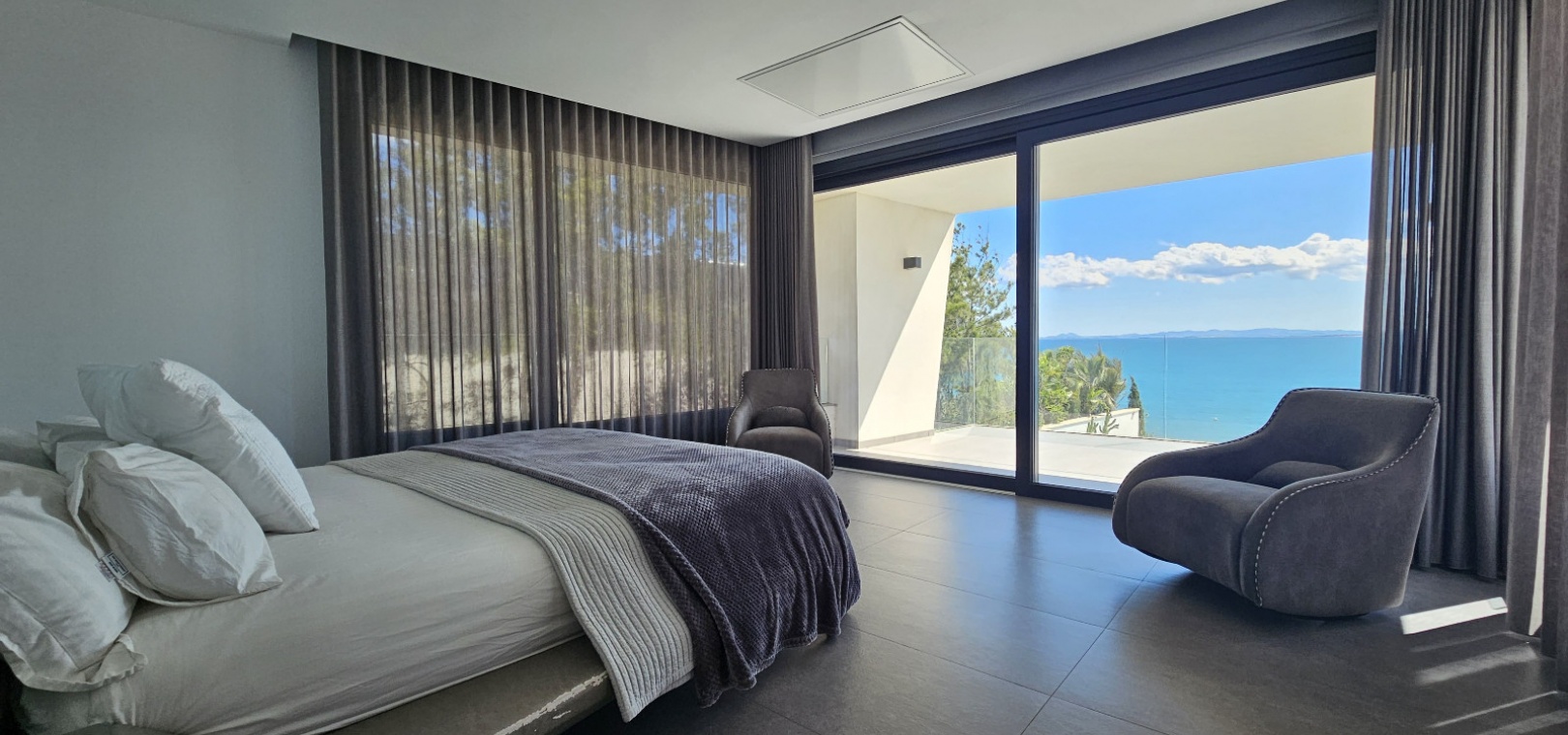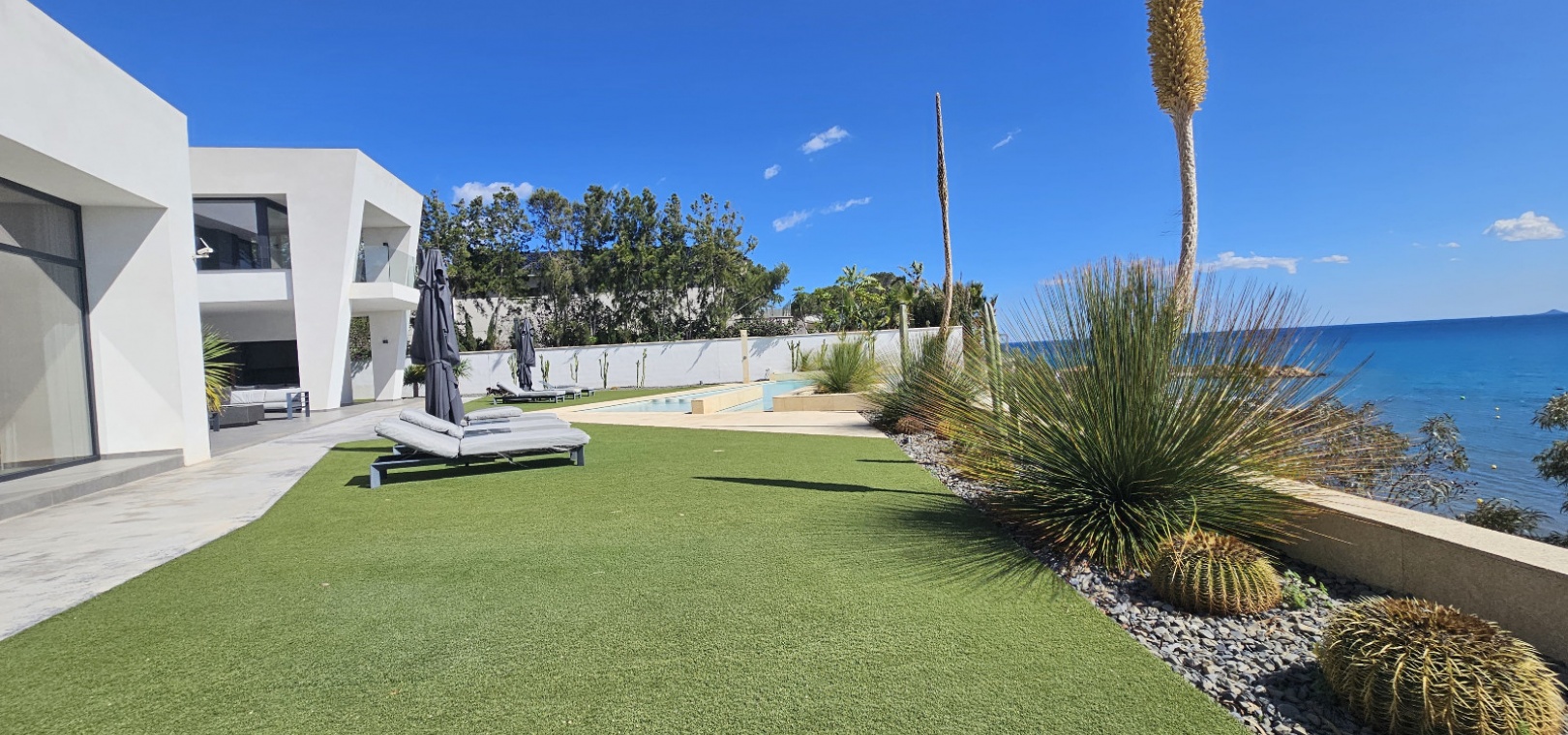 Villan har rymliga sällskapsutrymmen, toppmoderna bekvämligheter och lyxiga ytbehandlingar. Glasfönster från golv till tak släpper in naturligt ljus och öppnar upp för ostörd havsutsikt, medan utomhusutrymmena – inklusive en infinitypool, anlagda trädgårdar och flera terrasser – är utformade för både avkoppling och sofistikerad underhållning.