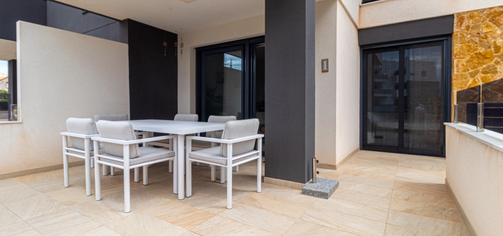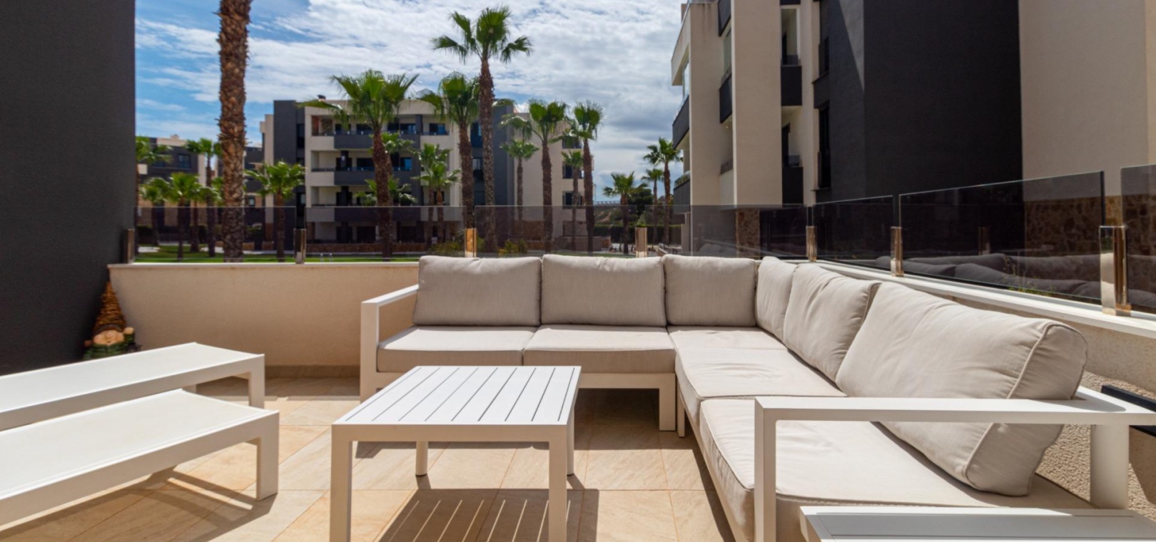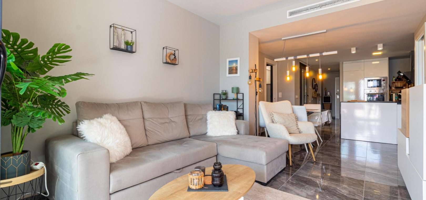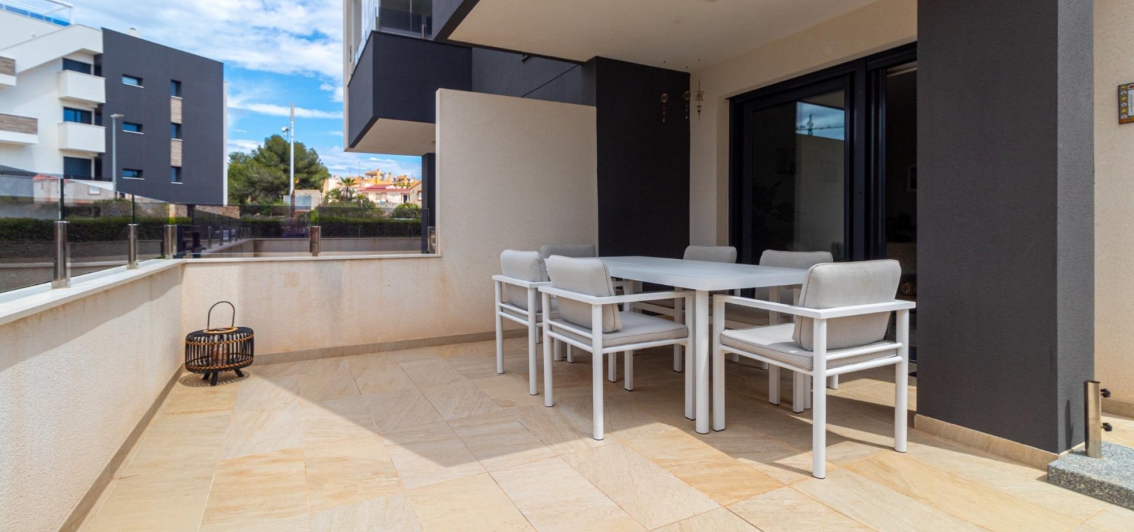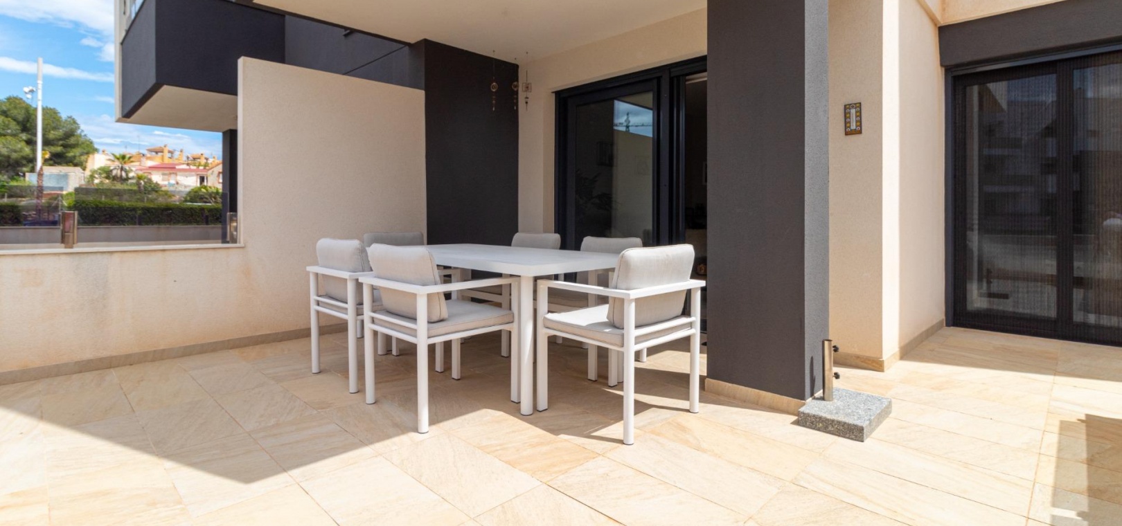 Välkommen till ditt nya hem på Residencial Amanecer VI! Denna charmiga lägenhet på bottenvåningen, belägen i det prestigefyllda Los Almendros-området, erbjuder ett bekvämt och avkopplande boende. Njut av en rymlig terrass med fantastisk utsikt över de grönskande gemensamma trädgårdarna, den perfekta platsen att koppla av eller njuta av måltider utomhus. Med två sovrum och två badrum (ett ensuite) är denna lägenhet rymlig och funktionell. Det fullt utrustade öppna köket smälter sömlöst in i vardagsrummet och skapar en öppen och ljus atmosfär. En praktisk innergård ger ännu mer naturligt ljus och en extra touch av avskildhet. Inbyggda garderober erbjuder gott om förvaringsutrymme, och bekvämligheten med kanaliserad luftkonditionering (varm/kall) säkerställer din komfort året runt. Lägenheten säljs fullt möblerad, redo att inflyttas. Den inkluderar också en underjordisk parkeringsplats och ett förråd, vilket ger praktiska lösningar för förvaring och parkering. Residencial Amanecer VI är känt för sin lugn och familjevänliga atmosfär. De välskötta gemensamma trädgårdarna och gemensamma utrymmena erbjuder en idealisk miljö för att njuta av din fritid. Dess utmärkta läge i Los Almendros ger dig nära alla nödvändiga bekvämligheter, såsom stormarknader, restauranger och köpcentra. Och bäst av allt: områdets drömstränder ligger bara en kort bilresa bort! Tänk dig att njuta av solen och havet på några minuter. Missa inte möjligheten att bo i detta paradis. Kontakta oss idag för att boka en visning.