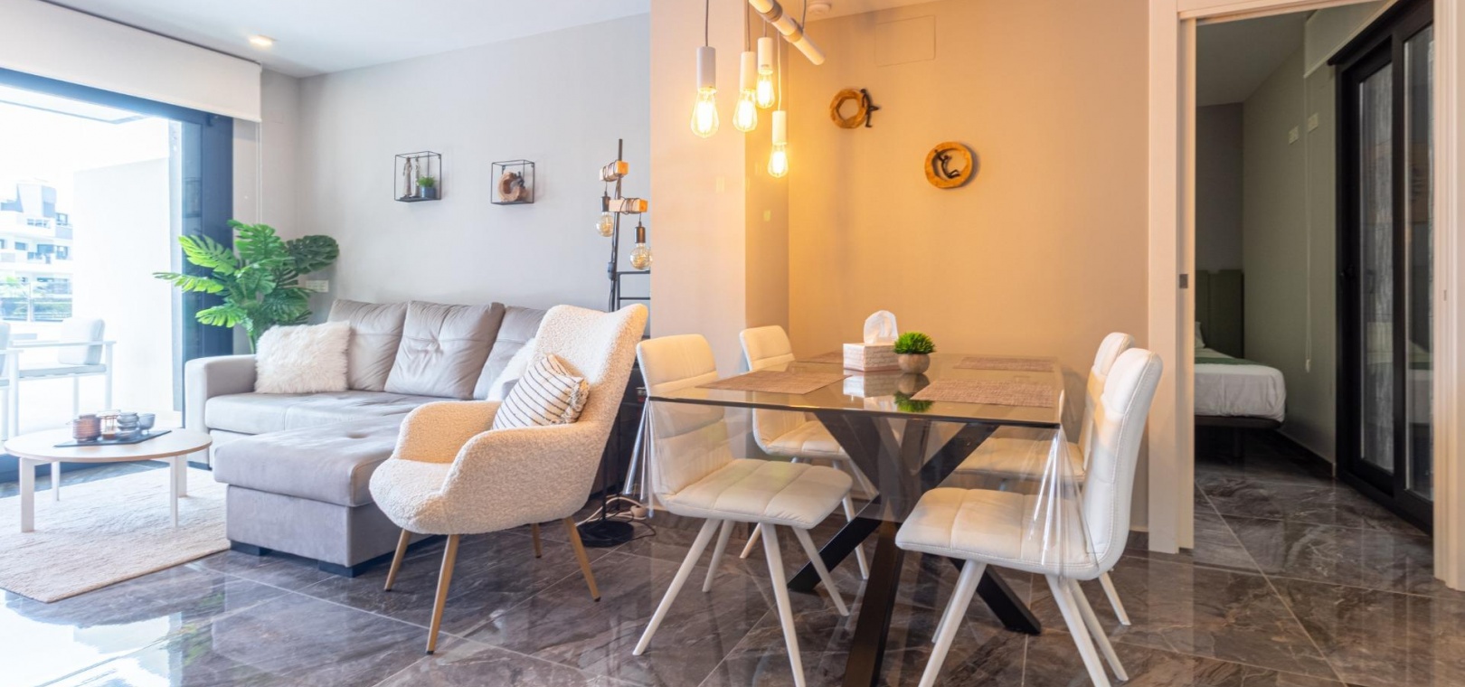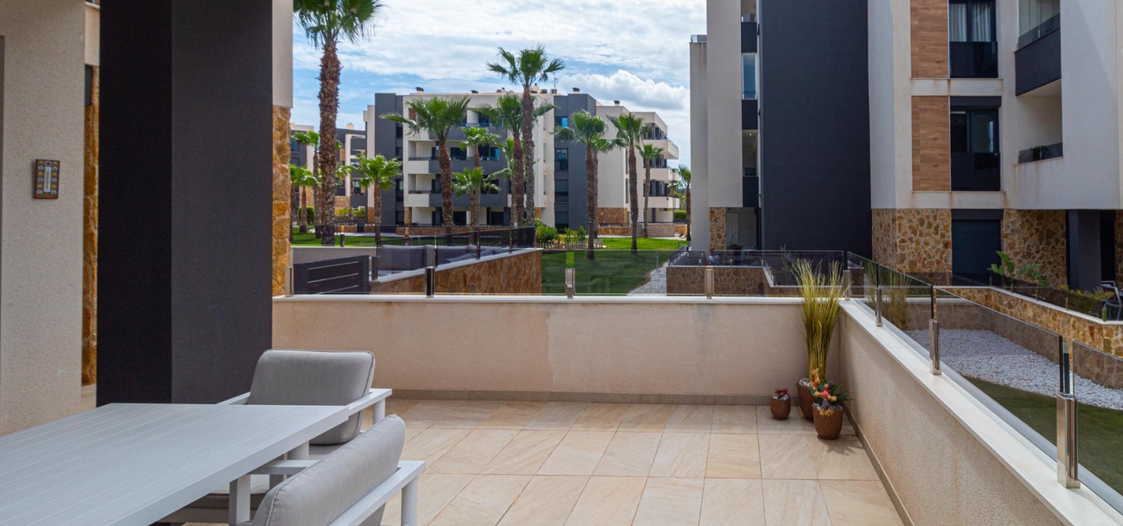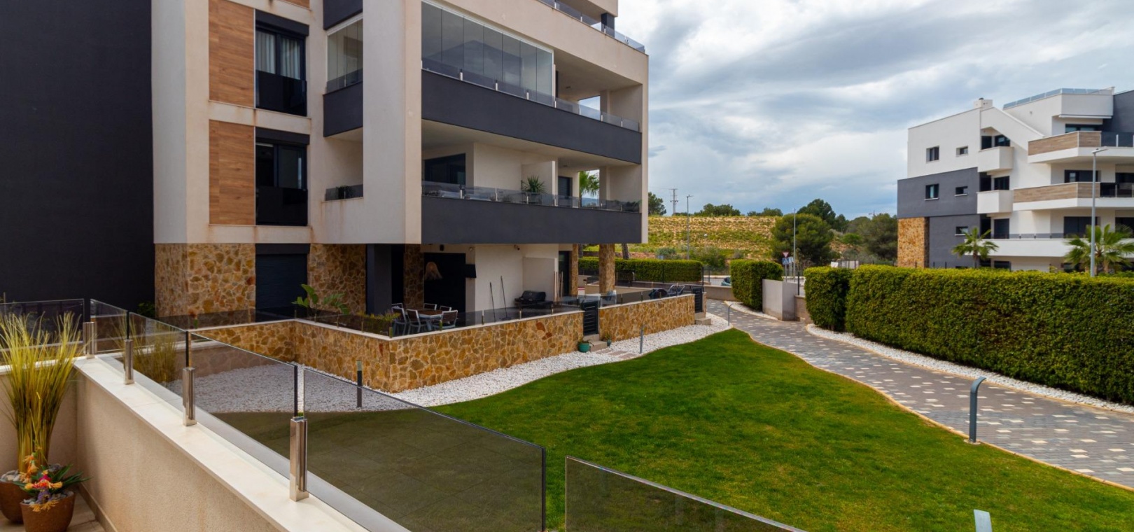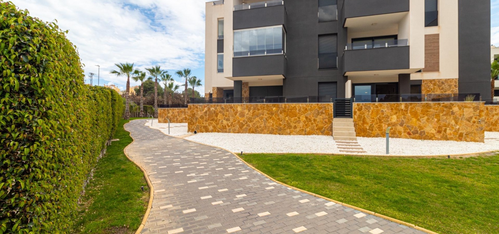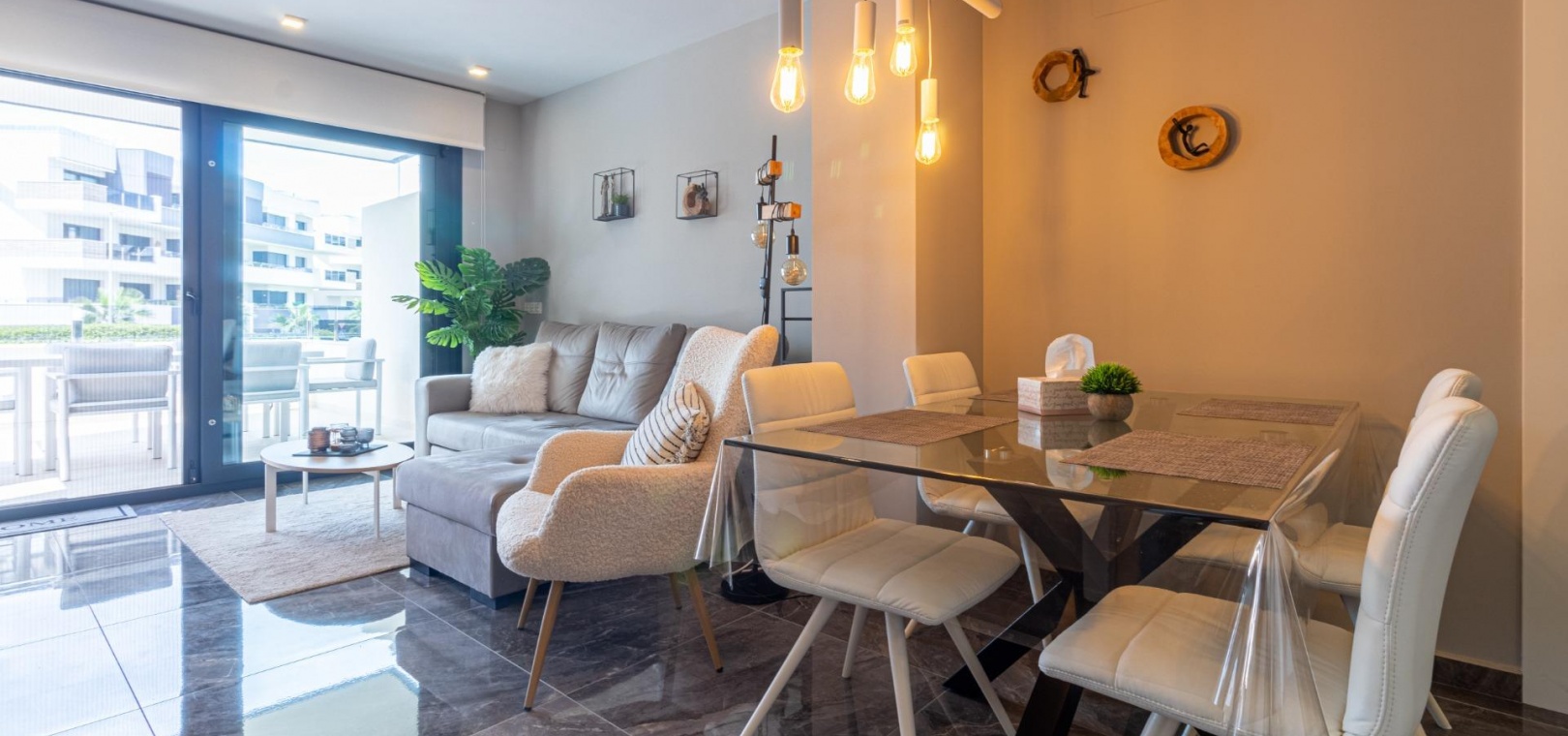 Välkommen till ditt nya hem på Residencial Amanecer VI! Denna charmiga lägenhet på bottenvåningen, belägen i det prestigefyllda Los Almendros-området, erbjuder ett bekvämt och avkopplande boende. Njut av en rymlig terrass med fantastisk utsikt över de grönskande gemensamma trädgårdarna, den perfekta platsen att koppla av eller njuta av måltider utomhus. Med två sovrum och två badrum (ett ensuite) är denna lägenhet rymlig och funktionell. Det fullt utrustade öppna köket smälter sömlöst in i vardagsrummet och skapar en öppen och ljus atmosfär. En praktisk innergård ger ännu mer naturligt ljus och en extra touch av avskildhet. Inbyggda garderober erbjuder gott om förvaringsutrymme, och bekvämligheten med kanaliserad luftkonditionering (varm/kall) säkerställer din komfort året runt. Lägenheten säljs fullt möblerad, redo att inflyttas. Den inkluderar också en underjordisk parkeringsplats och ett förråd, vilket ger praktiska lösningar för förvaring och parkering. Residencial Amanecer VI är känt för sin lugn och familjevänliga atmosfär. De välskötta gemensamma trädgårdarna och gemensamma utrymmena erbjuder en idealisk miljö för att njuta av din fritid. Dess utmärkta läge i Los Almendros ger dig nära alla nödvändiga bekvämligheter, såsom stormarknader, restauranger och köpcentra. Och bäst av allt: områdets drömstränder ligger bara en kort bilresa bort! Tänk dig att njuta av solen och havet på några minuter. Missa inte möjligheten att bo i detta paradis. Kontakta oss idag för att boka en visning.