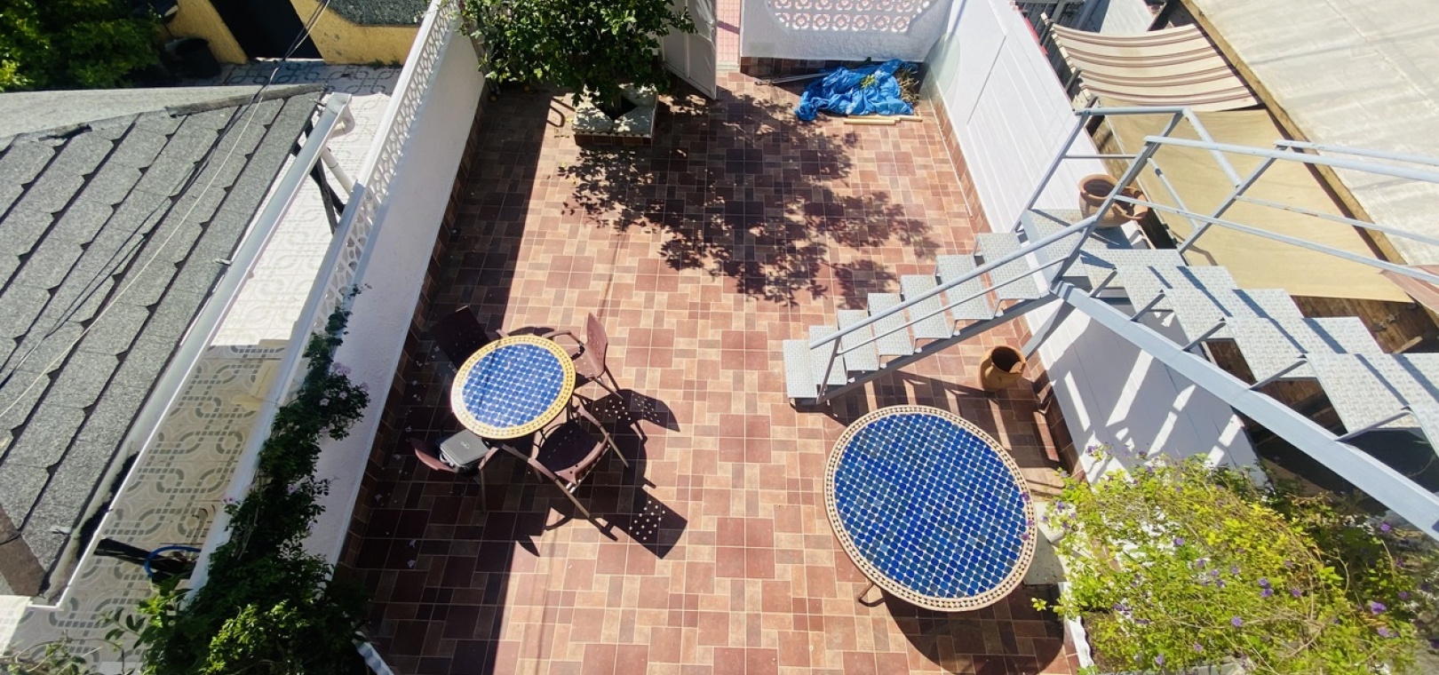 Rymlig uteplats med gott om plats för att installera en privat pool