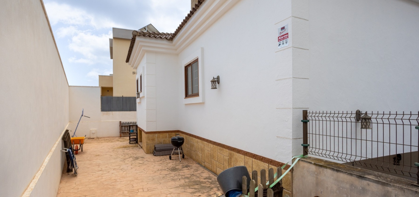 Vi är stolta över att presentera denna fantastiska fristående villa belägen i ett lugnt bostadsområde i Los Montesinos. Fastigheten erbjuder både avskildhet och bekvämlighet och ligger nära alla viktiga bekvämligheter samtidigt som den erbjuder en rymlig och bekväm hemmiljö.