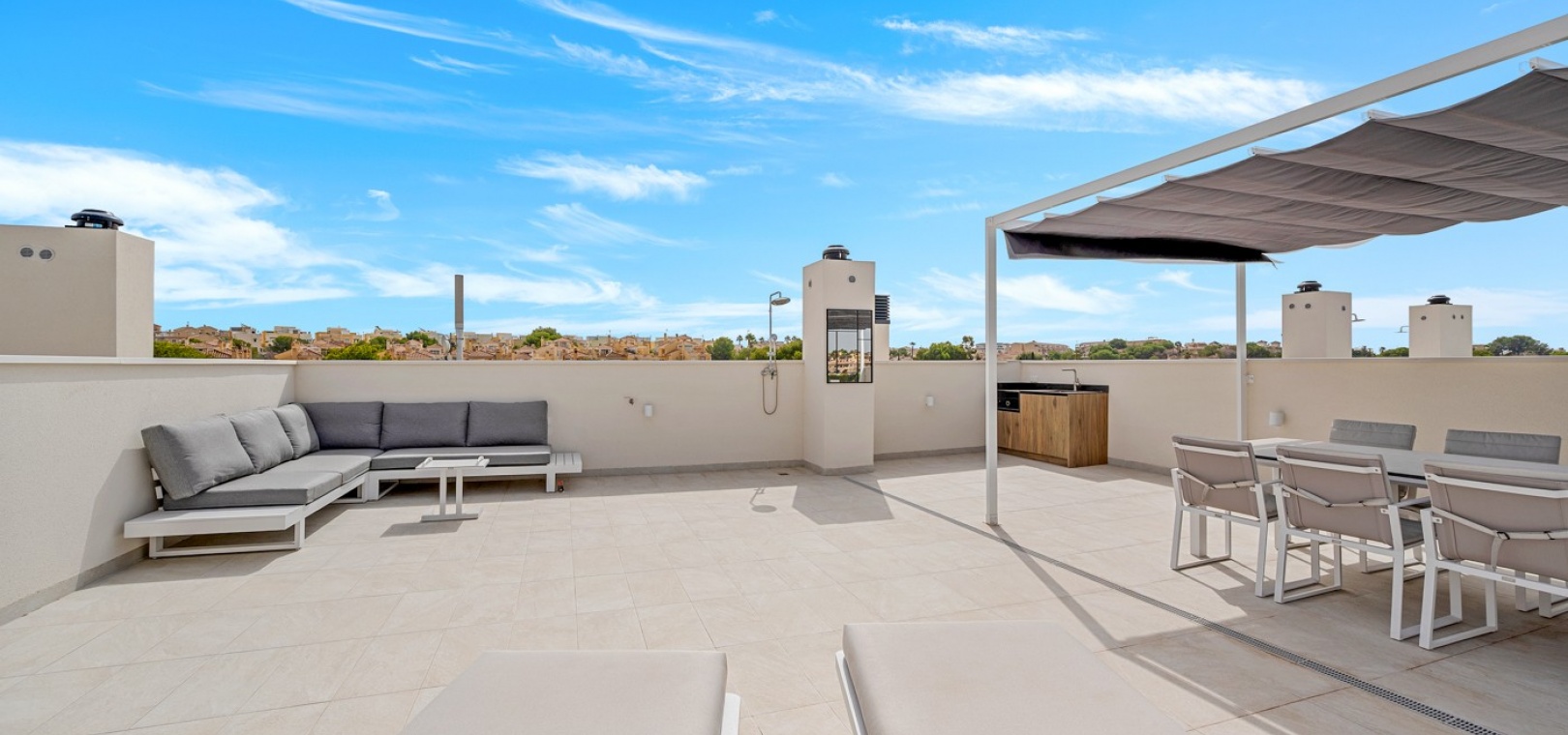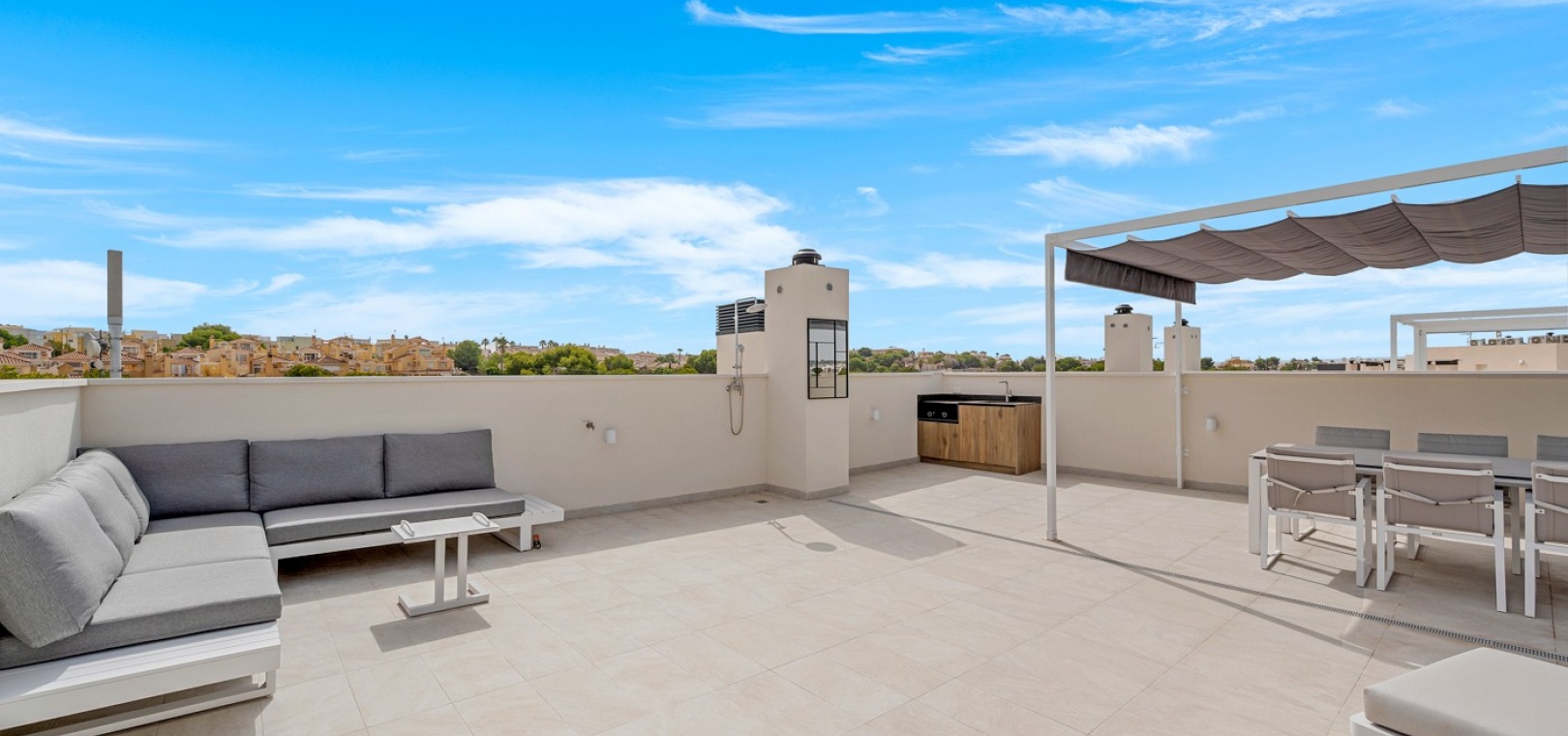 I det mycket eftertraktade området Los Altos ligger denna eleganta och fullt möblerade takvåning med 2 sovrum och 2 badrum i den helt nya residensen Amanecer X. Med en privat takterrass och solig balkong är det den perfekta platsen att njuta av medelhavslivsstilen.