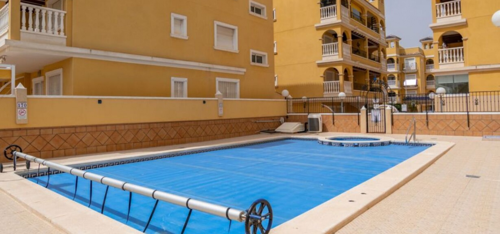 Beläget i ett säkert, välskött gated community, har de boende tillgång till en uppvärmd gemensam pool , perfekt för användning året runt.